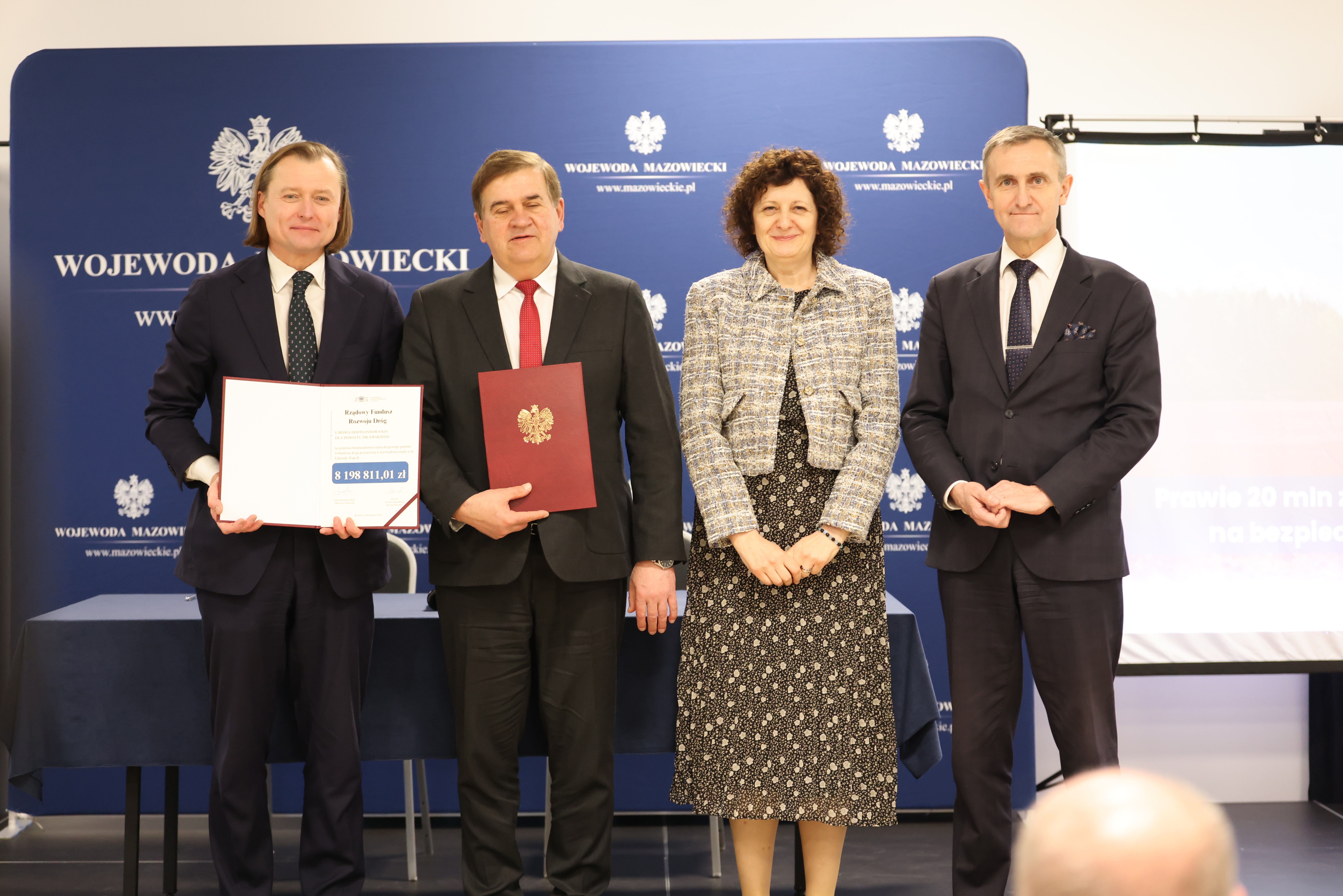- Powiat Mławski – 8 198 811,01 zł na poprawę bezpieczeństwa ruchu drogowego poprzez rozbudowę drogi powiatowej w tym budowę ronda w m. Liberadz. Etap II