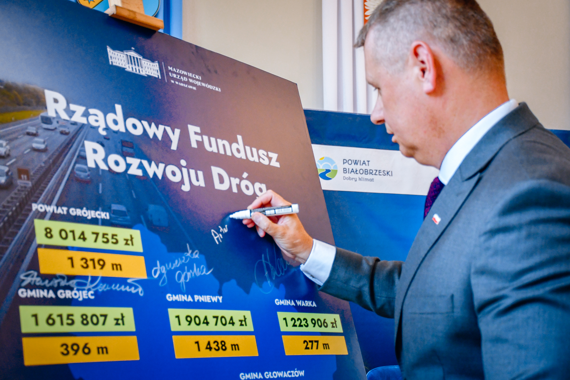 Prawie 25 mln zł otrzymają samorządy z województwa mazowieckiego, z regionu radomskiego, w ramach Rządowego Funduszu Rozwoju Dróg. Łączna długość dróg realizowanych w ramach podpisanych umów to ponad 11,6 km. Uroczystość podpisania umów z udziałem Wicewojewody Mazowieckiego Artura Standowicza odbyła się 14 lipca br. w Starostwie Powiatowym w Białobrzegach. W wydarzeniu udział wzięli również: Senator RP Stanisław Karczewski oraz Posłowie na Sejm RP: Marek Suski, Dariusz Bąk, Anna Kwiecień i Agnieszka Górska.