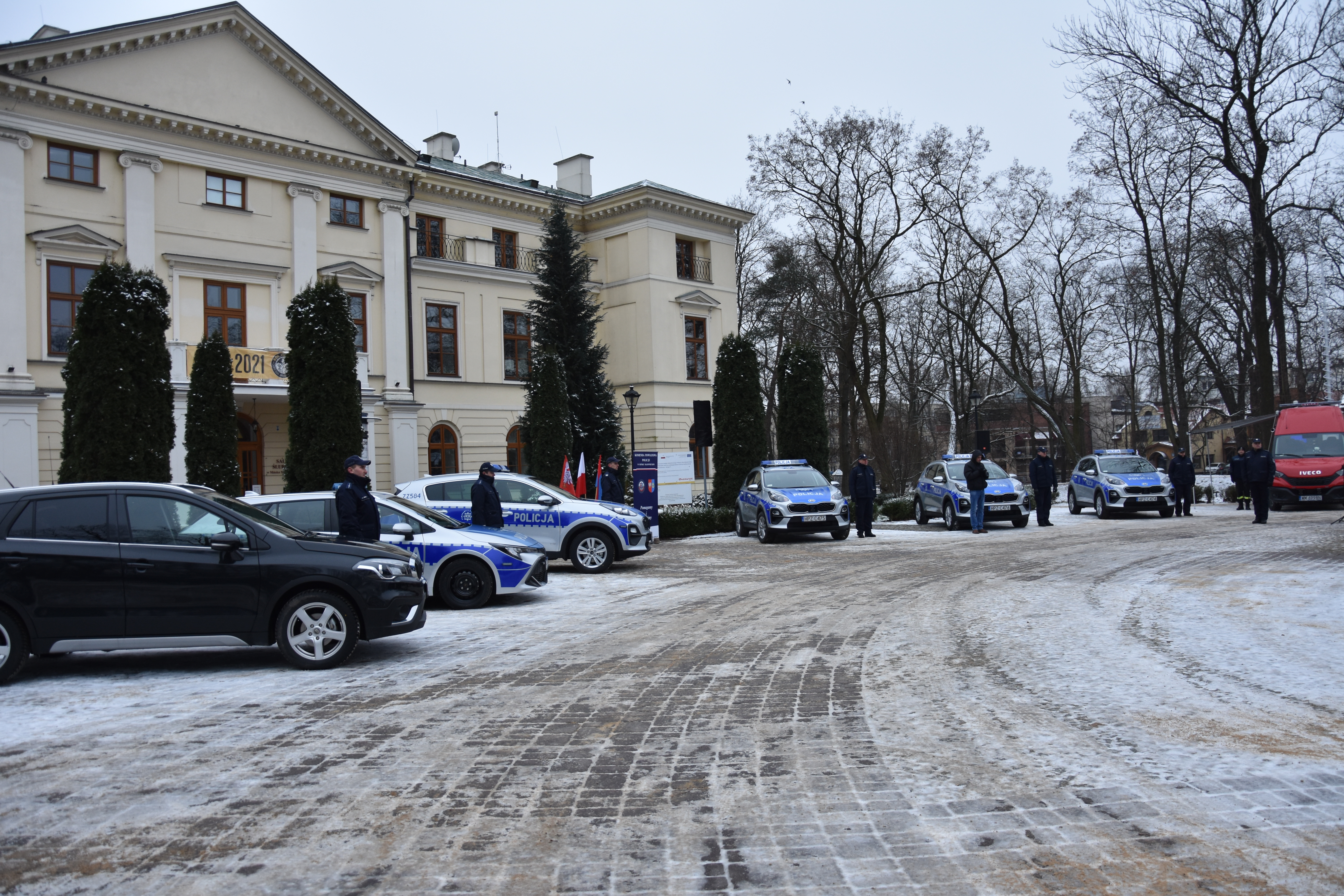 Przed Pałacem Dernałowiczów odbyła się uroczystość przekazania kluczyków do nowych radiowozów Policji. Po złożeniu meldunku Komendantowi Stołecznemu Policji Nadinspektorowi Pawłowi Dzierżakowi o rozpoczęciu uroczystości, głos zabrał Komendant Powiatowy Policji w Mińsku Mazowieckim Inspektor Sławomir Rogowski. W swoim przemówieniu, Inspektor podziękował za wsparcie finansowe na zakup nowoczesnych radiowozów, które będą służyły mieszkańcom powiatu mińskiego. Wskazał, że nowe pojazdy są bardzo istotnym narzędziem w rękach policjantów, ponieważ przyczynią się do podniesienia poziomu bezpieczeństwa.