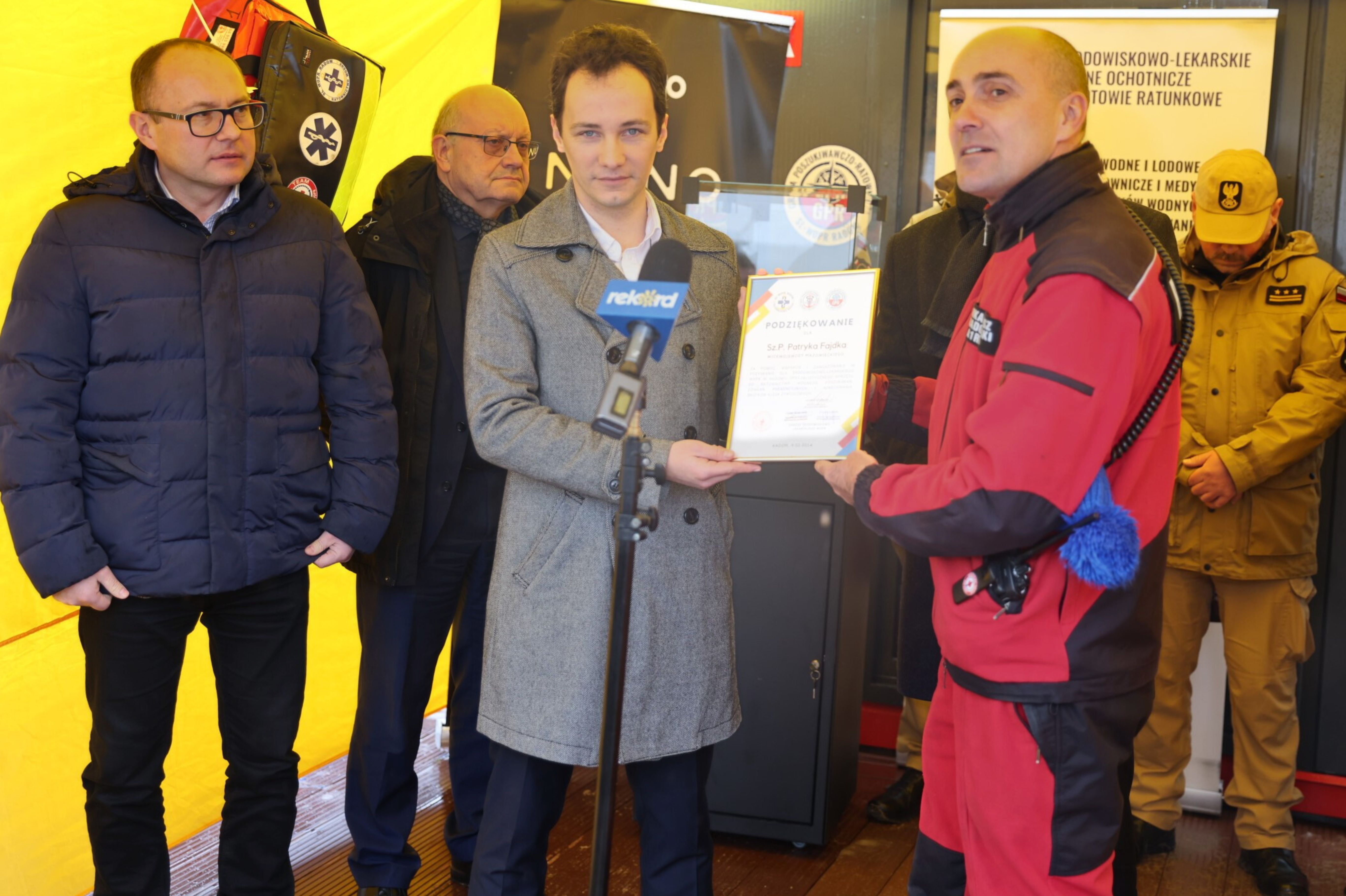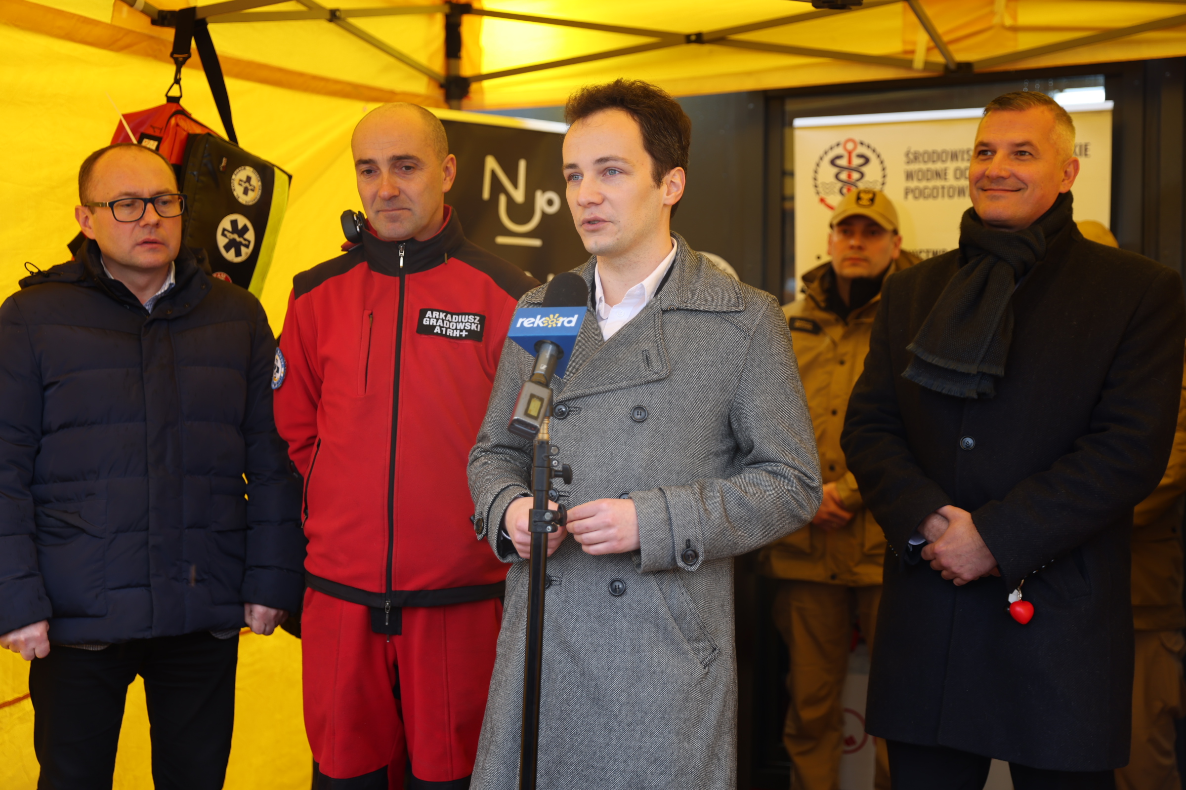 W piątek, 9 lutego br. Wicewojewoda Mazowiecki Patryk Fajdek wziął udział w przekazaniu sprzętu ratowniczego dla Środowiskowo - Lekarskiego Wodnego Ochotniczego Pogotowia Ratunkowego w Radomiu. Udział w wydarzeniu wziął również m. in. Wicemarszałek Województwa Mazowieckiego Rafał Rajkowski, Burmistrz Miasta i Gminy Przytyk Dariusz Wołczyński, przedstawiciele Regionalnego Zarządu Gospodarki Wodnej z Radomia, Państwowego Gospodarstwa Wodnego Wody Polskie i Środowiskowo-Lekarskiego Wodnego Ochotniczego Pogotowia Ratunkowego. Wydarzenie odbyło się na terenie zbiornika retencyjnego Domaniów.
