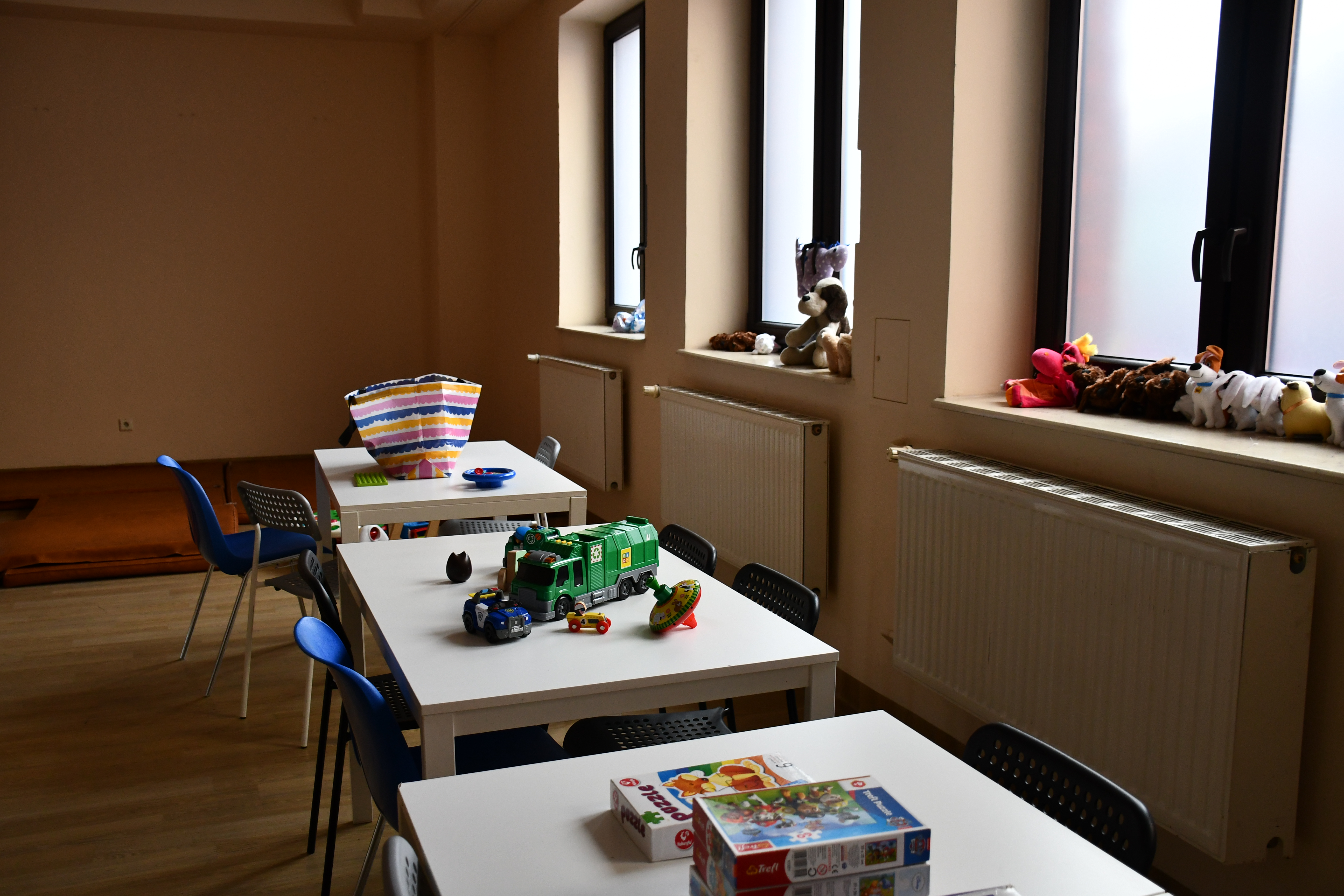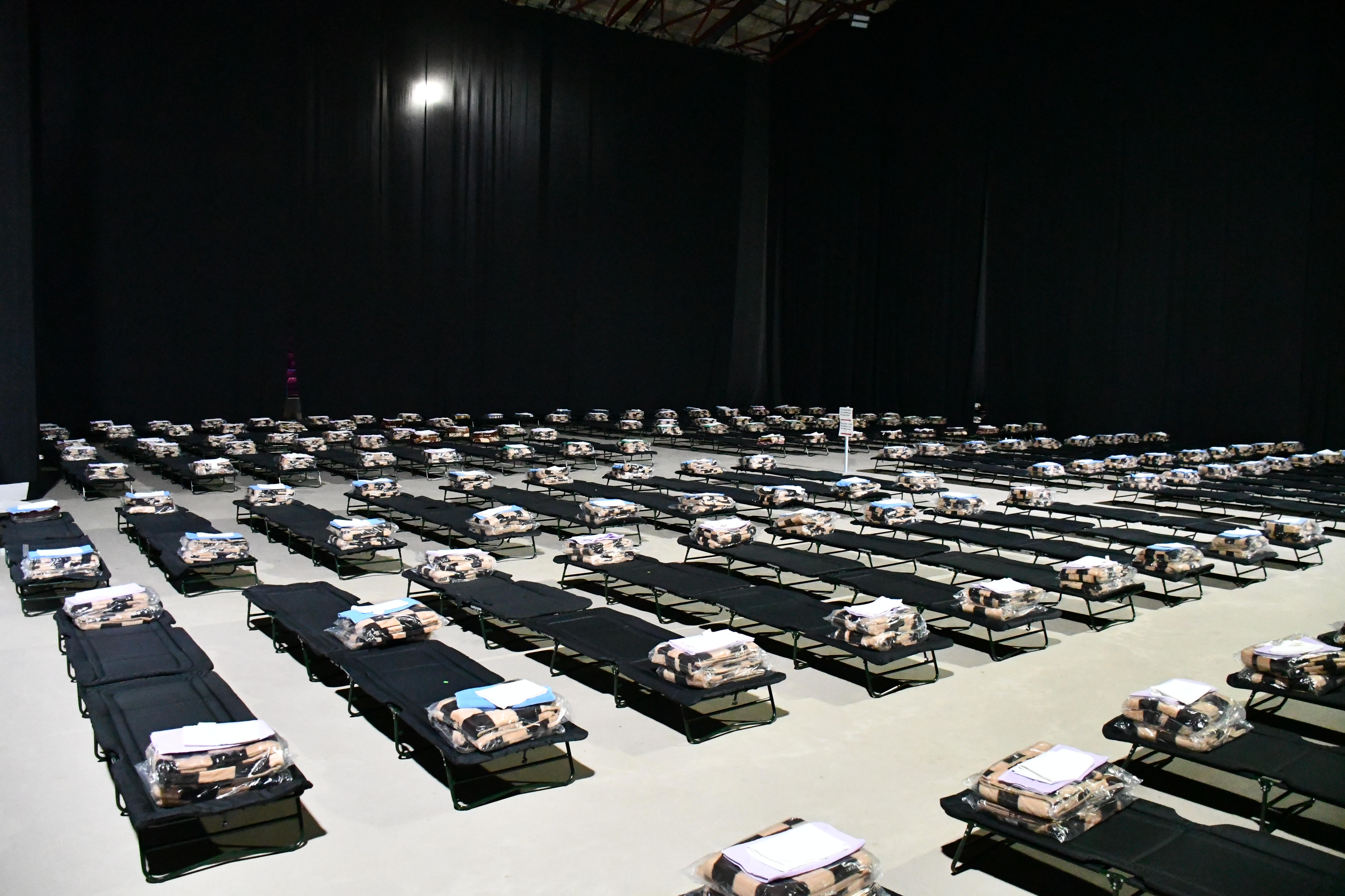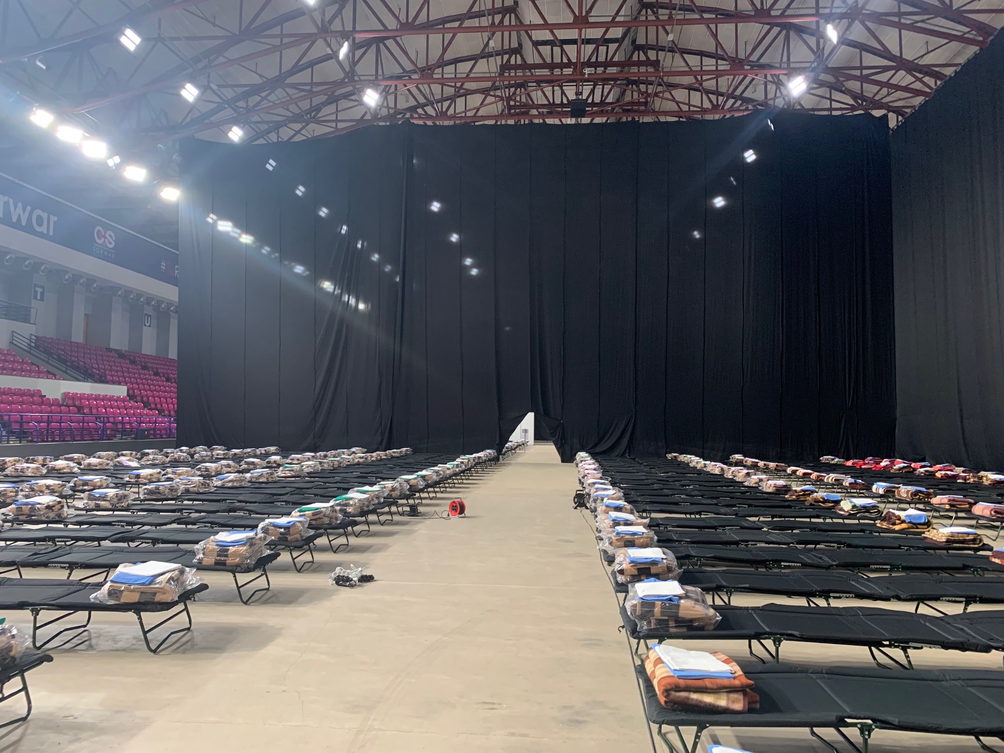 Punkt recepcyjny dla uchodźców z Ukrainy w hali COS Torwar