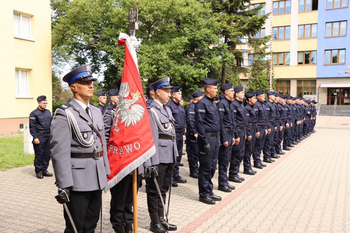 Nowi policjanci wypowiedzieli słowa, które stanowią bardzo ważne zobowiązanie: "Ja, obywatel Rzeczypospolitej Polskiej, świadom podejmowanych obowiązków policjanta, ślubuję: służyć wiernie Narodowi, chronić ustanowiony Konstytucją Rzeczypospolitej Polskiej porządek prawny, strzec bezpieczeństwa Państwa i jego obywateli, nawet z narażeniem życia. Wykonując powierzone mi zadania, ślubuję pilnie przestrzegać prawa, dochować wierności konstytucyjnym organom Rzeczypospolitej Polskiej, przestrzegać dyscypliny służbowej oraz wykonywać rozkazy i polecenia przełożonych. Ślubuję strzec tajemnic związanych ze służbą, honoru, godności i dobrego imienia służby oraz przestrzegać zasad etyki zawodowej."