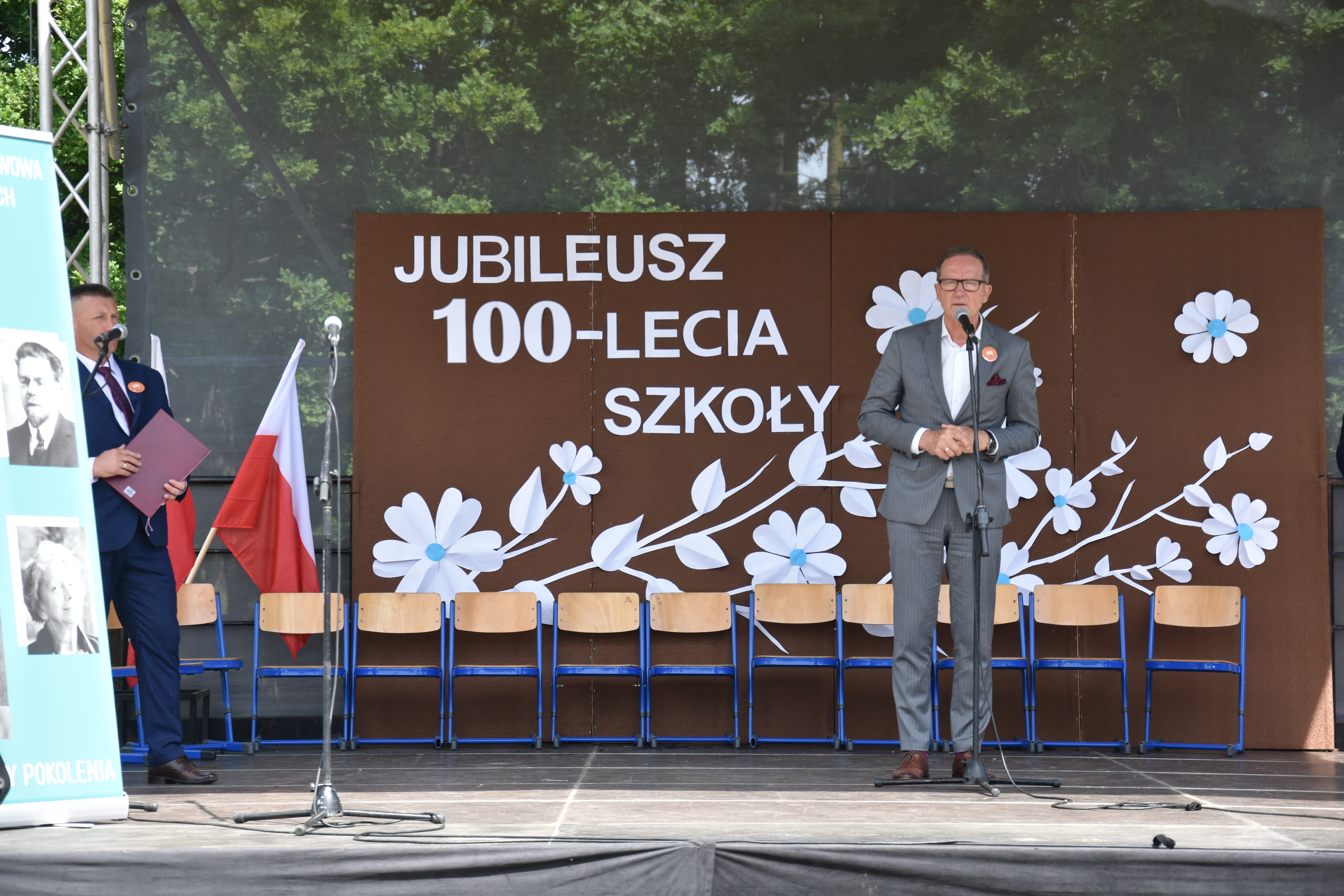 - Z okazji tak doniosłego jubileuszu, 100-lecia istnienia tutejszej placówki szkolnej, pragnę złożyć na ręce Pana Dyrektora najlepsze życzenia i gratulacje. Dziękuję obecnym i byłym nauczycielom oraz pracownikom szkoły, za wysiłek edukacyjny i wkład w kształtowanie kolejnych pokoleń uczniów. Natomiast obecnym tu uczniom życzę, aby zdobywając wiedzę i umiejętności, nie zapomnieli w późniejszym, dorosłym życiu, gdzie się wychowali i wykształcili.