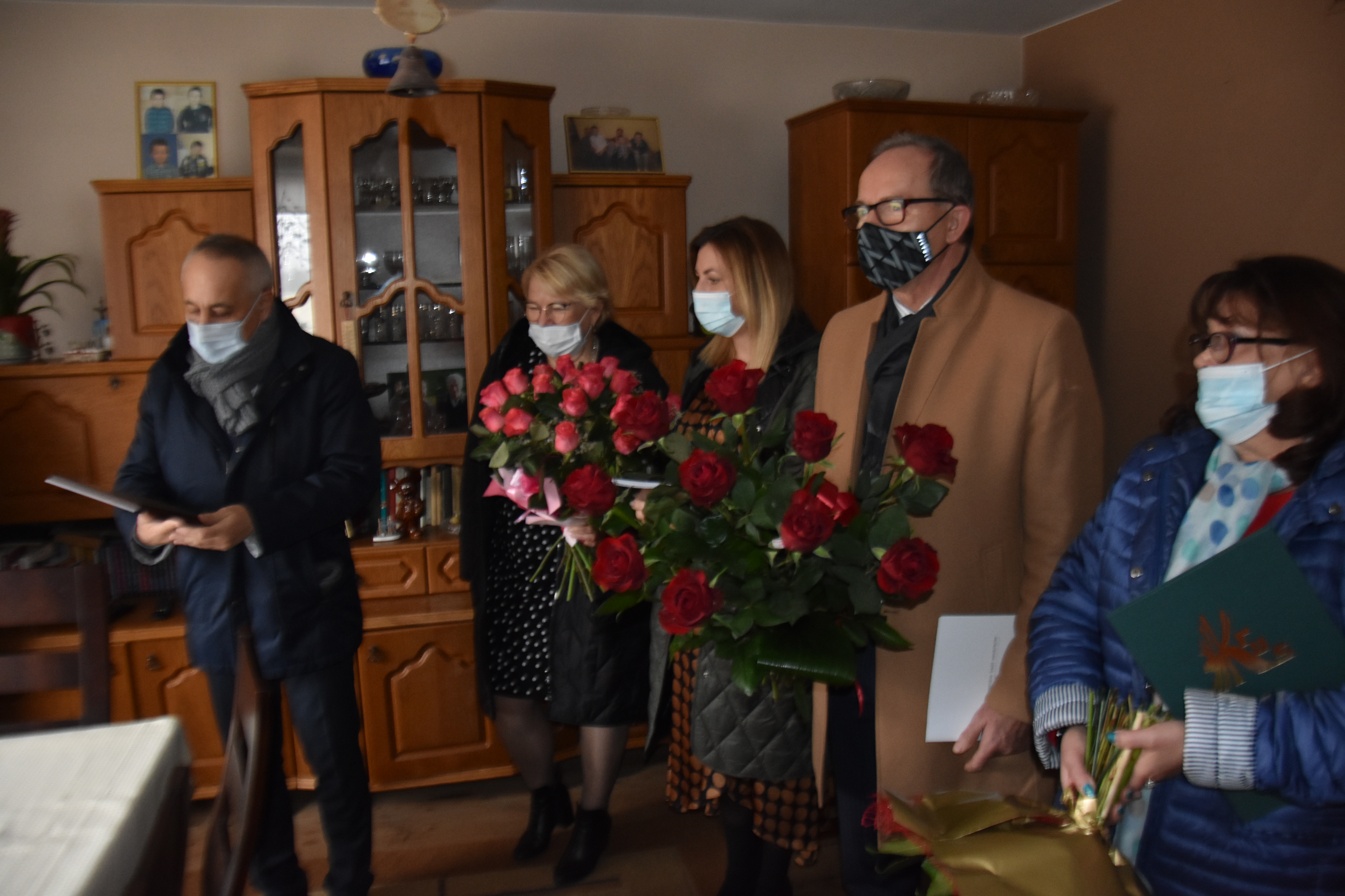 W dniu urodzin życzenia i gratulacje Pani Janinie, oprócz najbliższej rodziny, złożyli: Burmistrz Miasta i Gminy Nowe Miasto nad Pilicą Mariusz Dziuba, Kierownik Urzędu Stanu Cywilnego Grażyna Fiks, Dyrektor Miejsko-Gminnego Ośrodka Pomocy Społecznej Lucyna Senator oraz Kierownik PT KRUS w Grójcu Małgorzata Szymańczak.
