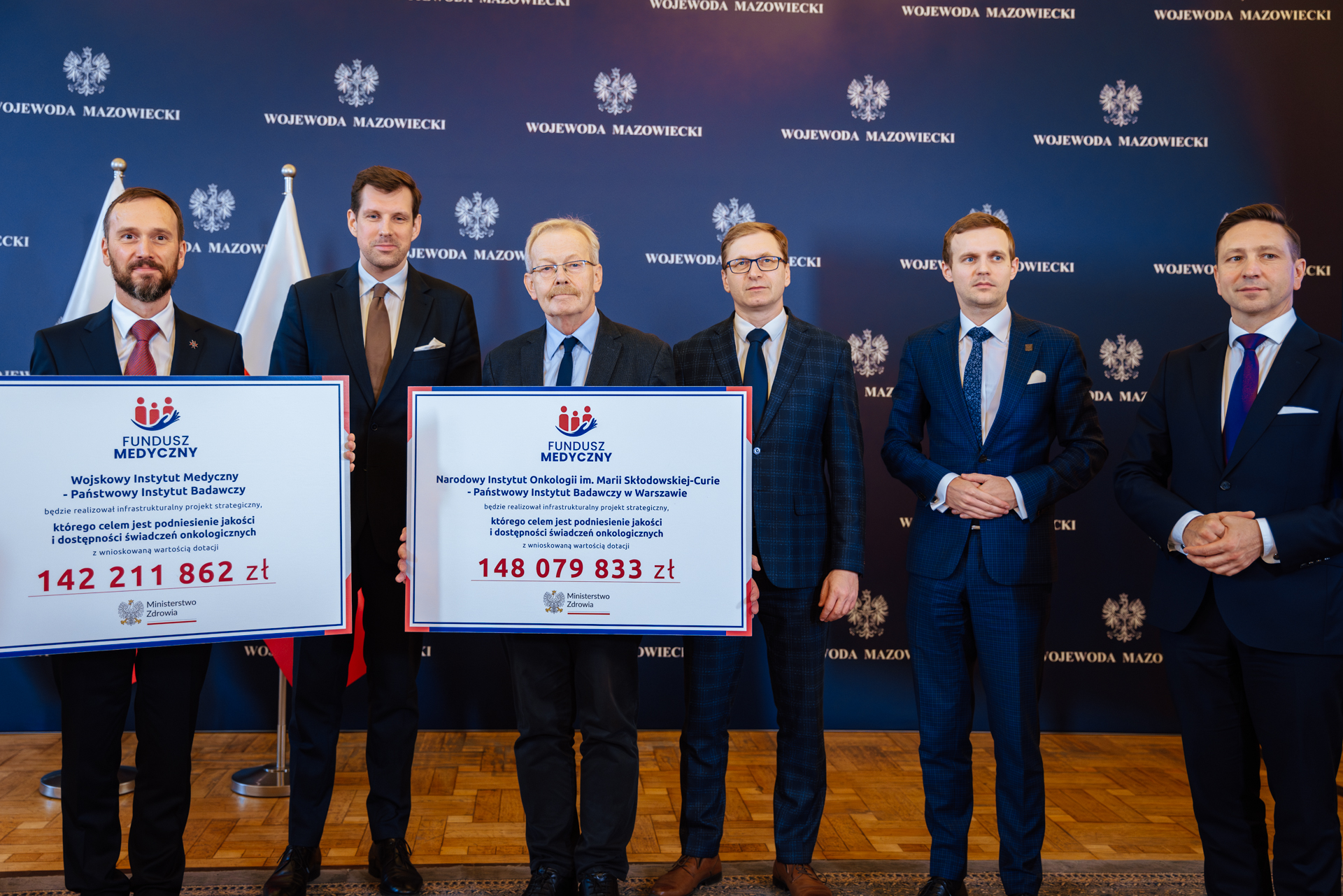 Ministerstwo Zdrowia ogłosiło wyniki konkursu z Funduszu Medycznego dla podmiotów leczniczych w zakresie onkologii. W województwie mazowieckim wsparcie otrzymają Państwowe Instytuty Badawcze: Wojskowy Instytut Medyczny oraz Narodowy Instytut Onkologiczny im. Marii Skłodowskiej-Curie. Łączna kwota dofinansowania wyniesie ponad 290 mln zł. Wojewoda Mazowiecki Tobiasz Bocheński, podczas konferencji prasowej, przekazał symboliczne czeki podmiotom leczniczym, które otrzymają środki z Funduszu Medycznego. W wydarzeniu udział wzięli również m.in. Poseł na Sejm RP Paweł Lisiecki, Podsekretarz Stanu w Ministerstwie Zdrowia Marcin Martyniak, Dyrektor Mazowieckiego Oddziału Wojewódzkiego NFZ Zbigniew Terek, Dyrektor Narodowego Instytutu Onkologii im. Marii Skłodowskiej-Curie prof. dr hab. n. med. Jan Walewski oraz Zastępca Dyrektora Wojskowego Instytutu Medycznego, Komendant Centralnego Szpitala Klinicznego MON płk. dr n. med. Artur Bachta.