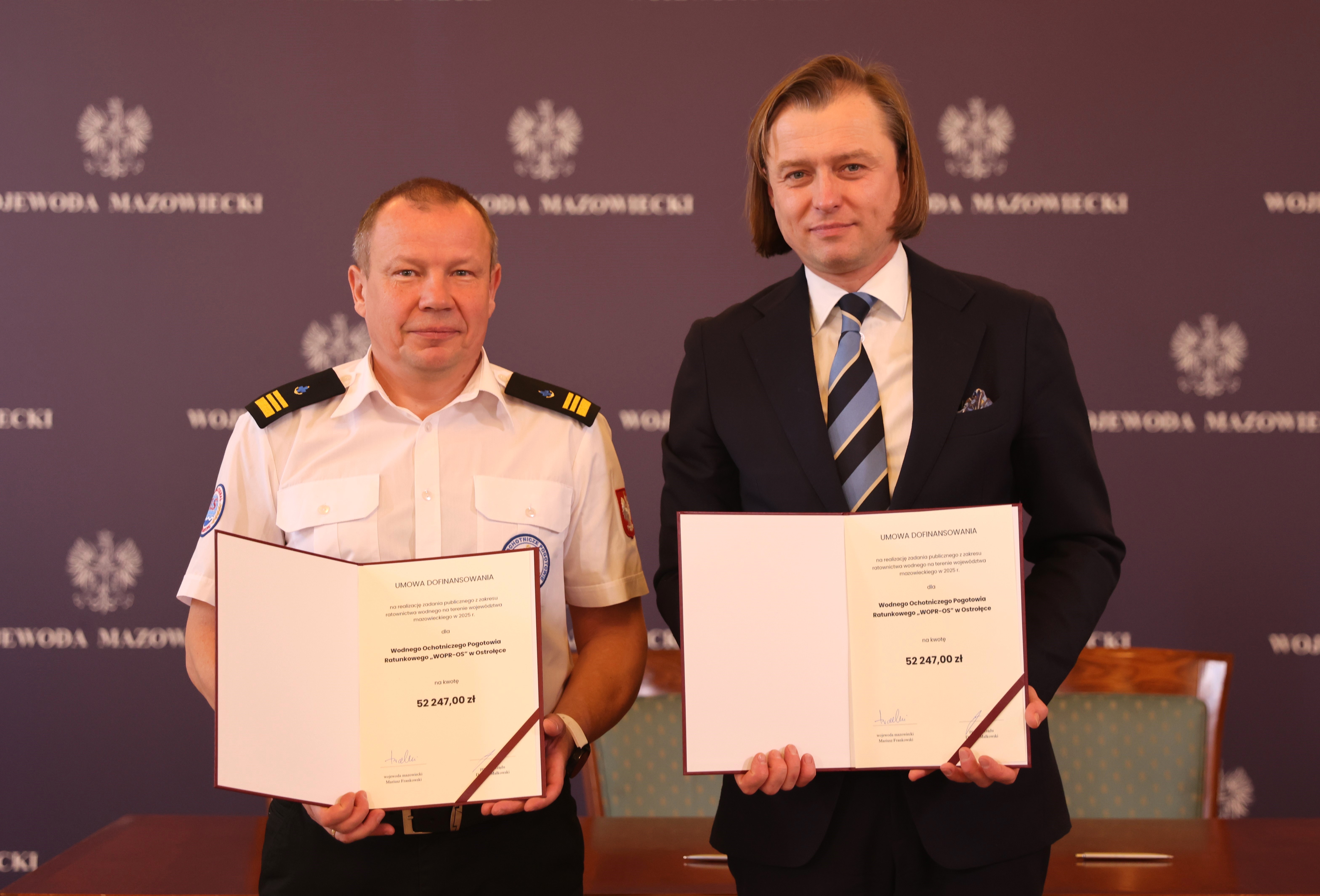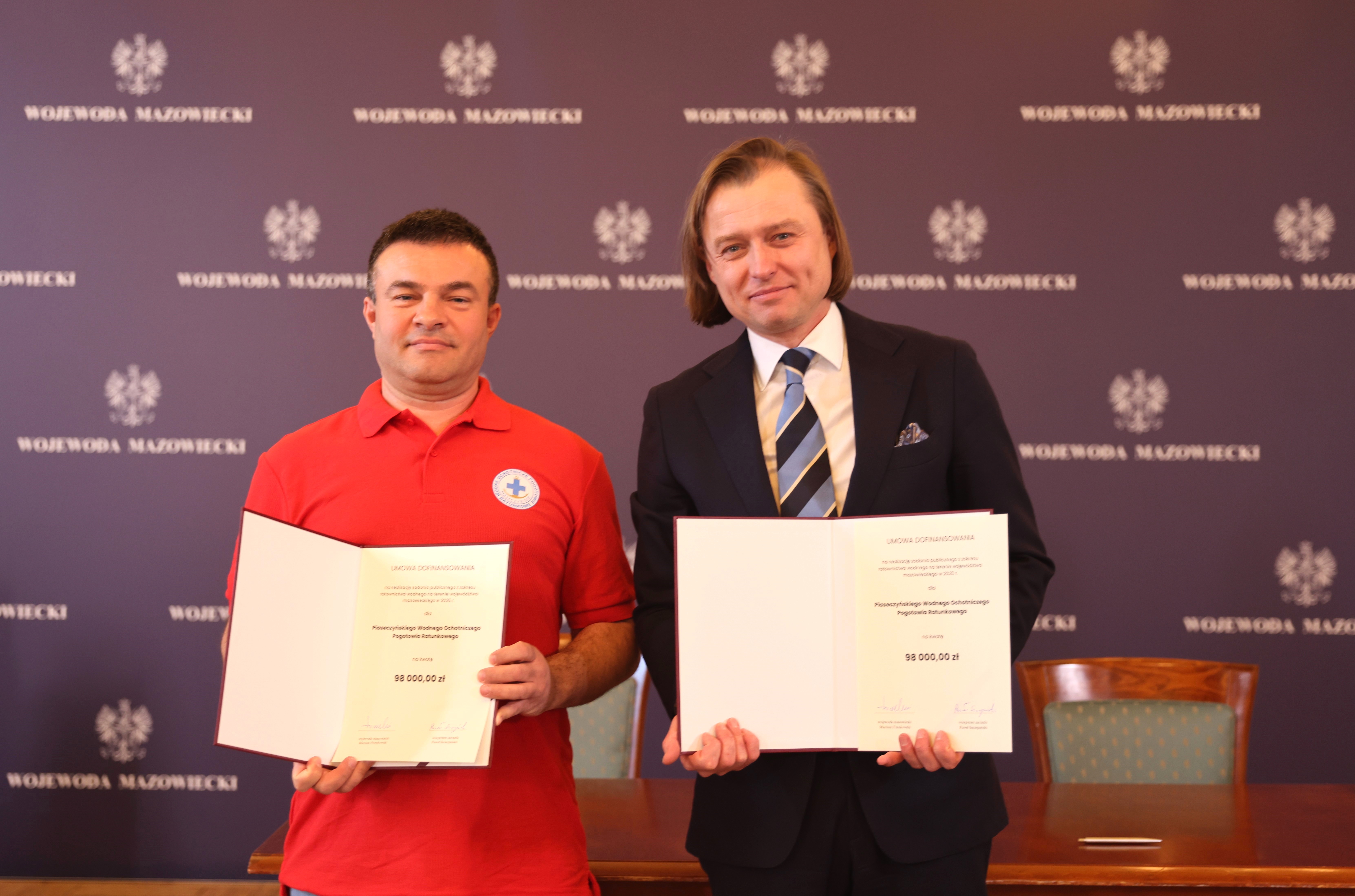 808 tys. zł – tyle łącznie wyniosły umowy, które podpisali przedstawiciele 14 podmiotów Wodnego Ochotniczego Pogotowia Ratunkowego z wojewodą mazowieckim Mariuszem Frankowskim. To wzrost dofinansowania o 100 procent i pierwszy od lat. Dzięki temu zwiększy się bezpieczeństwo na mazowieckich wodach.