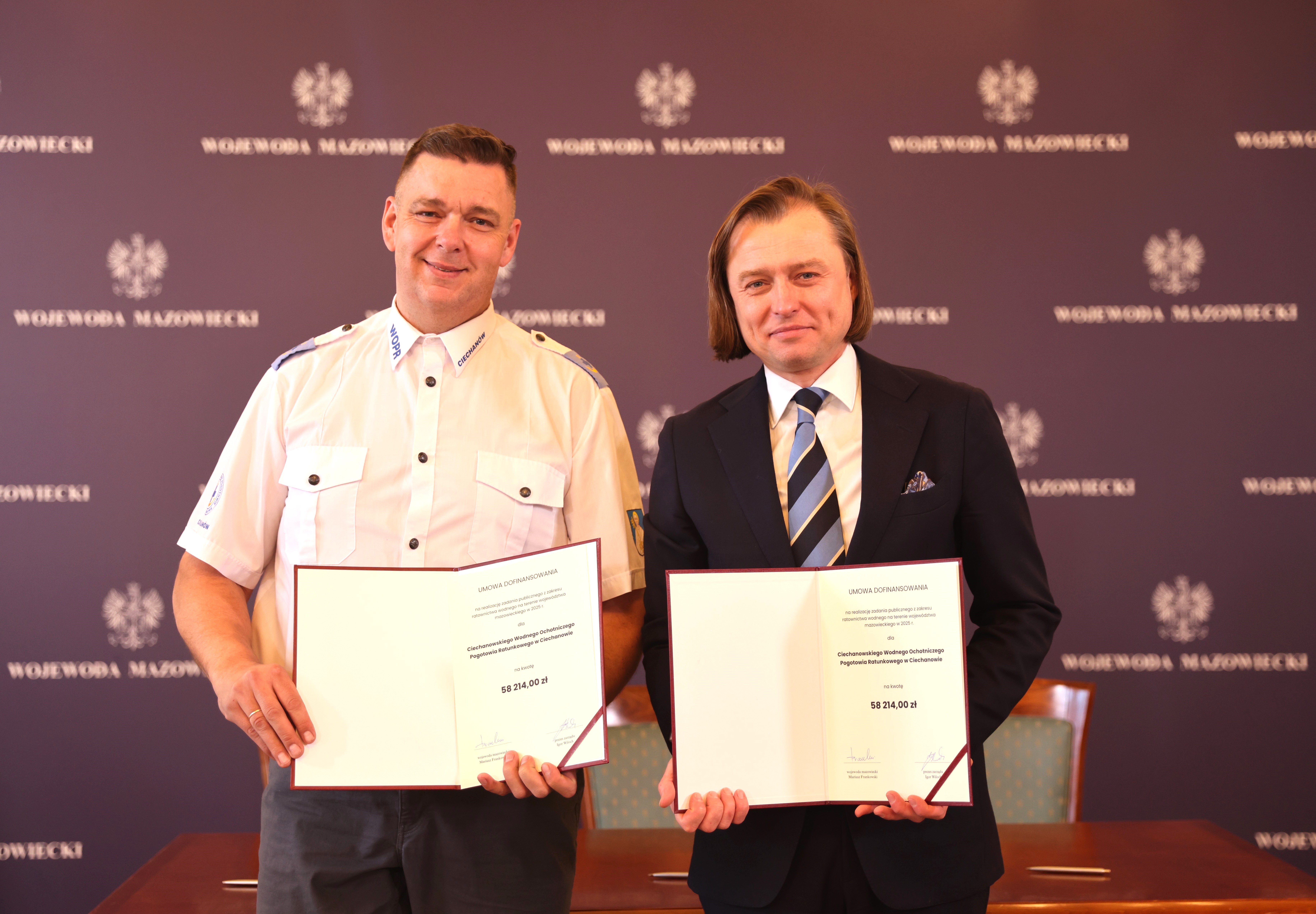 - Ciechanowskie Wodne Ochotnicze Pogotowie Ratunkowe w Ciechanowie na kwotę 58 214,00 zł