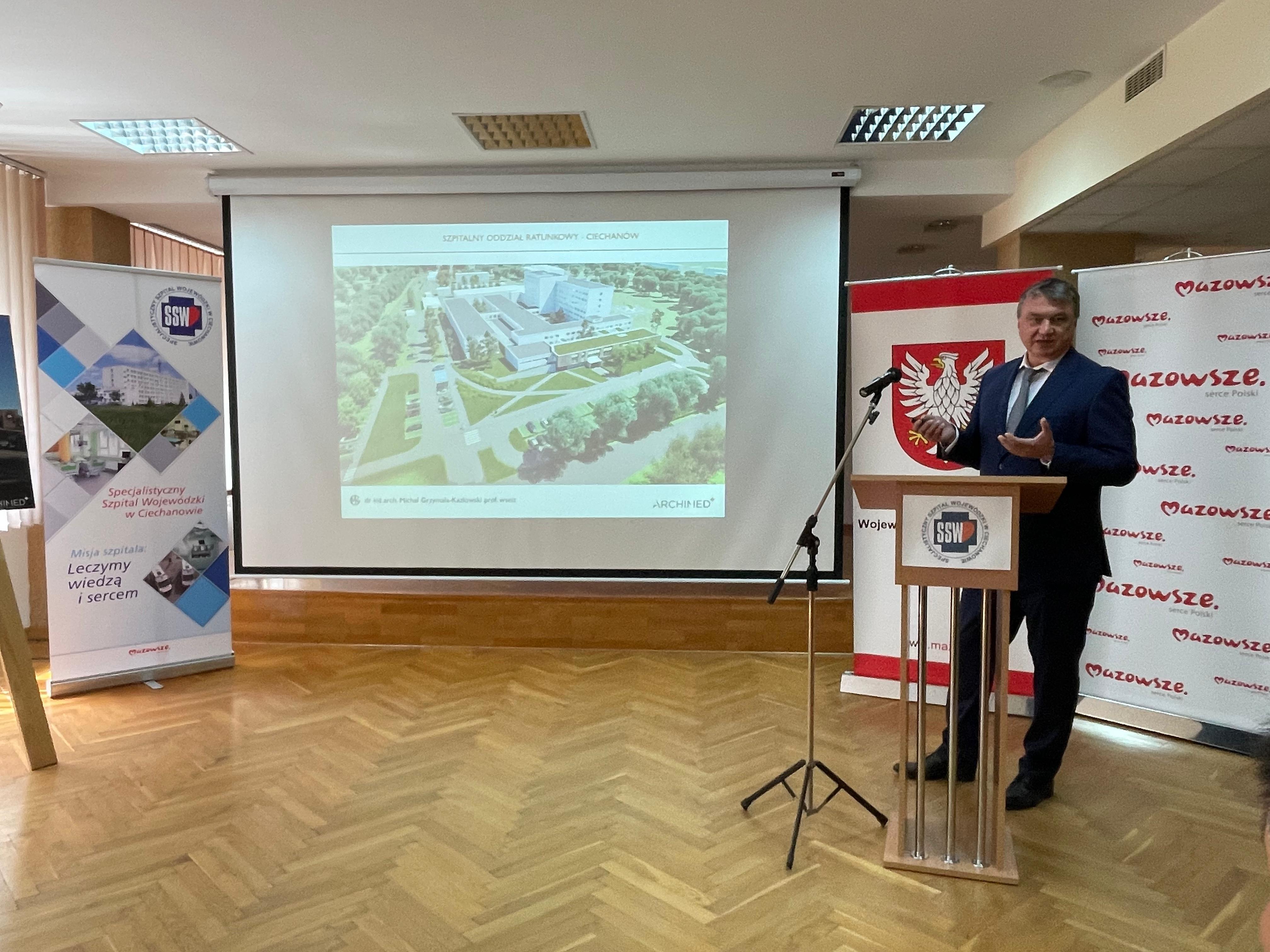 Podczas konferencji prasowej została zaprezentowana koncepcja modernizacji i rozbudowy Szpitalnego Oddziału Ratunkowego w Specjalistycznym Szpitalu Wojewódzkim w Ciechanowie. Podczas wydarzenia, które odbyło się 10 lipca br. Wojewodę Mazowieckiego reprezentował Kierownik Delegatury Mazowieckiego Urzędu Wojewódzkiego w Ciechanowie Janusz Szymańczyk.