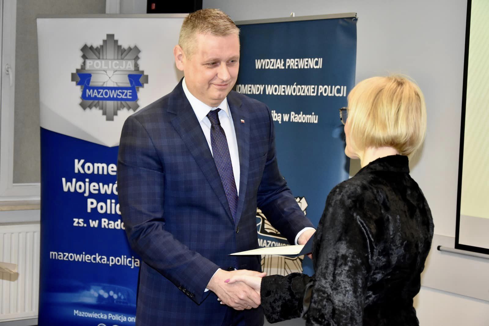 Wicewojewoda Mazowiecki Artur Standowicz w piątek, 4 listopada br. wziął udział w uroczystym wręczeniu nagrody Wojewody Mazowieckiego. Zwycięski projekt otrzymał najwyższą punktację w konkursie na najciekawszą inicjatywę profilaktyczno-edukacyjną związaną z bezpieczeństwem dzieci i młodzieży. Konkurs odbył się pod patronatem Wojewody Mazowieckiego, Komendy Wojewódzkiej i Stołecznej Policji oraz Mazowieckiego Kuratora Oświaty. W uroczystości wzięli udział m.in. Mazowiecki Kurator Oświaty Aurelia Michałowska, Komendant Wojewódzki Policji z siedzibą w Radomiu nadinsp. Waldemar Wołowiec oraz Komendant Stołeczny Policji nadinsp. Paweł Dzierżak. Wydarzenie odbyło się w Komendzie Wojewódzkiej Policji z siedzibą w Radomiu.