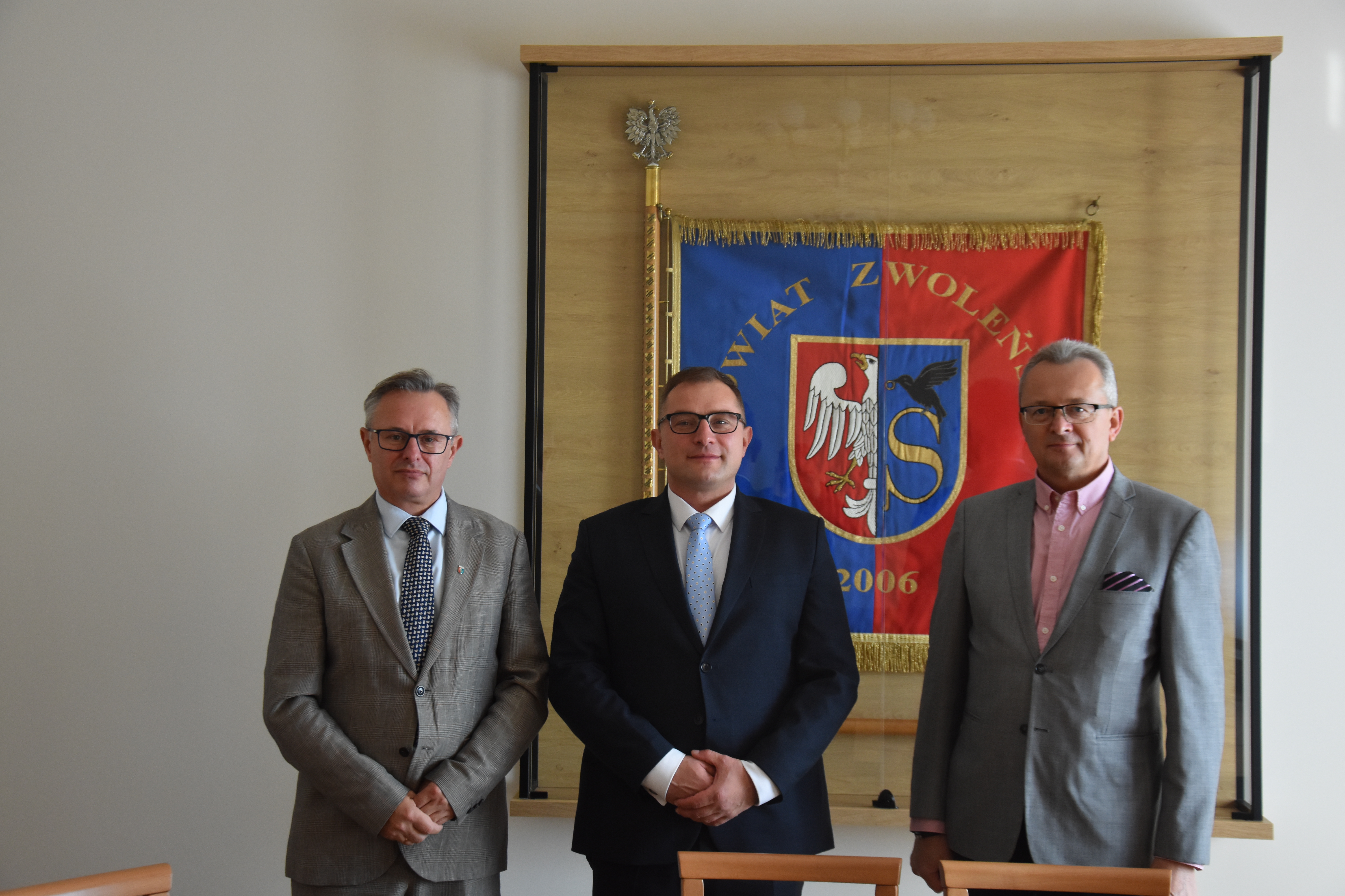 Rewitalizacja i rozbudowa siedziby władz powiatu zwoleńskiego oraz terenów rekreacyjnych w Zwoleniu była głównym tematem spotkania, w którym uczestniczył Kierownik Delegatury Mazowieckiego Urzędu Wojewódzkiego w Radomiu Rafał Molga oraz Starosta Powiatu Zwoleńskiego Andrzej Skorek i Burmistrz Zwolenia Arkadiusz Sulima. Przedstawiciele administracji samorządowej i państwowej spotkali się we wtorek, 8 października br. w starostwie powiatowym w Zwoleniu.