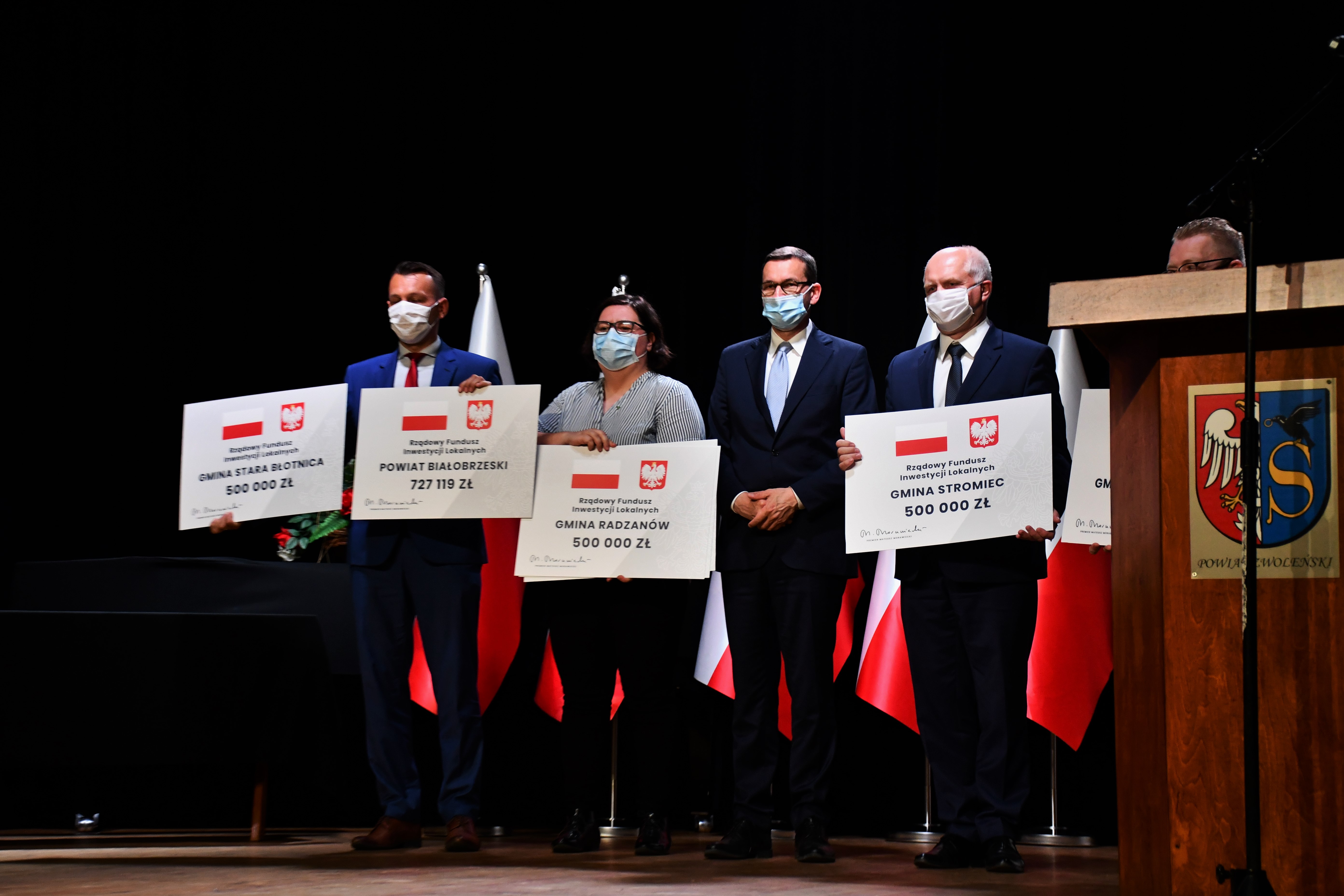 Premier Mateusz Morawiecki w środę, 8 lipca br. odwiedził samorządy regionu radomskiego przekazując symboliczne czeki przedstawicielom władz powiatowych i gminnych na łączną kwotę prawie 83 mln zł. W uroczystościach udział wziął m.in. Wicewojewoda Artur Standowicz.