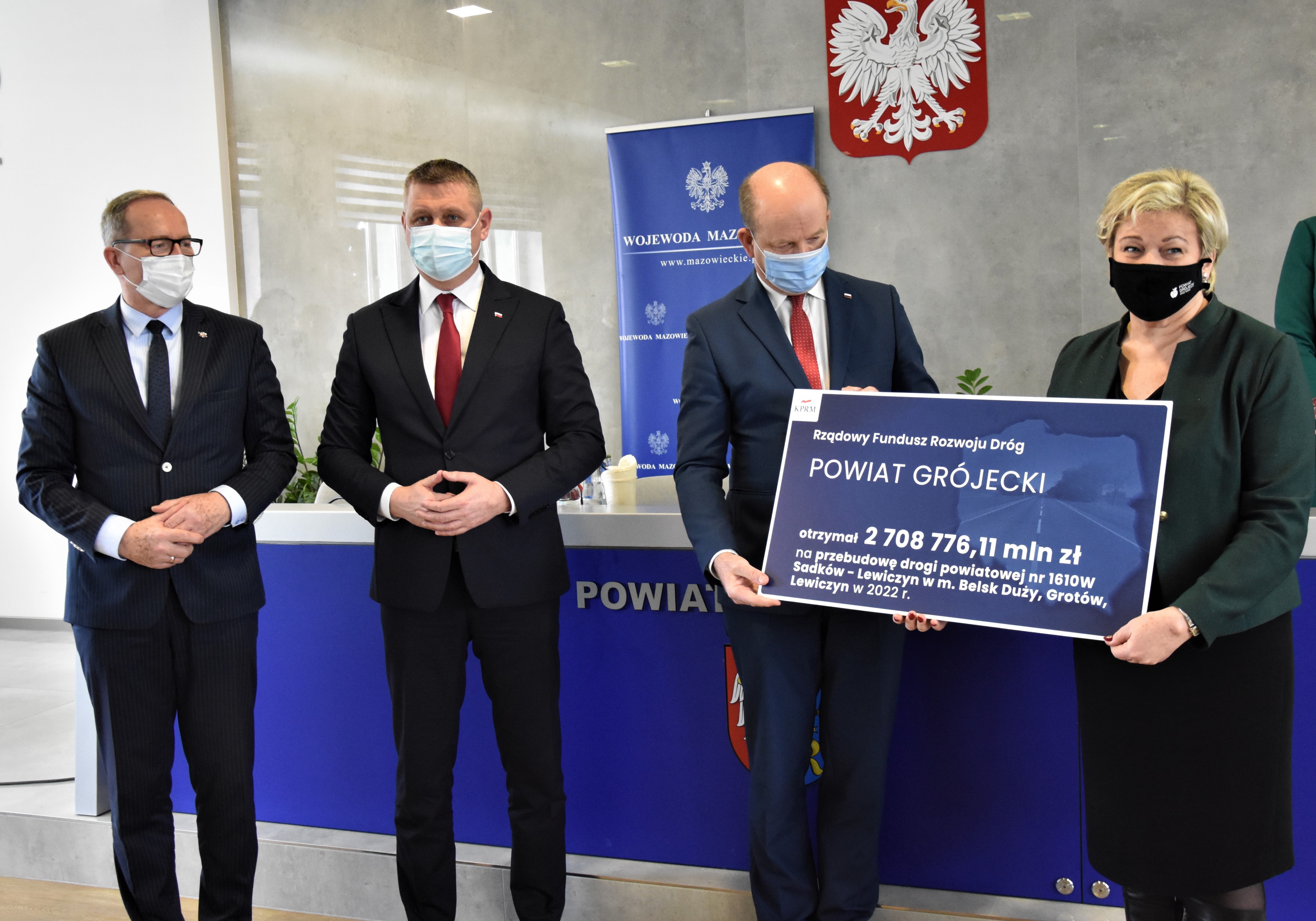 - Powiatu Grójeckiego – promesa na dofinansowanie w wysokości 2 708 776,11 zł na przebudowę drogi powiatowej nr 1610W Sadków - Lewiczyn na odcinku w miejscowościach Belsk Duży, Grotów, Lewiczyn;
