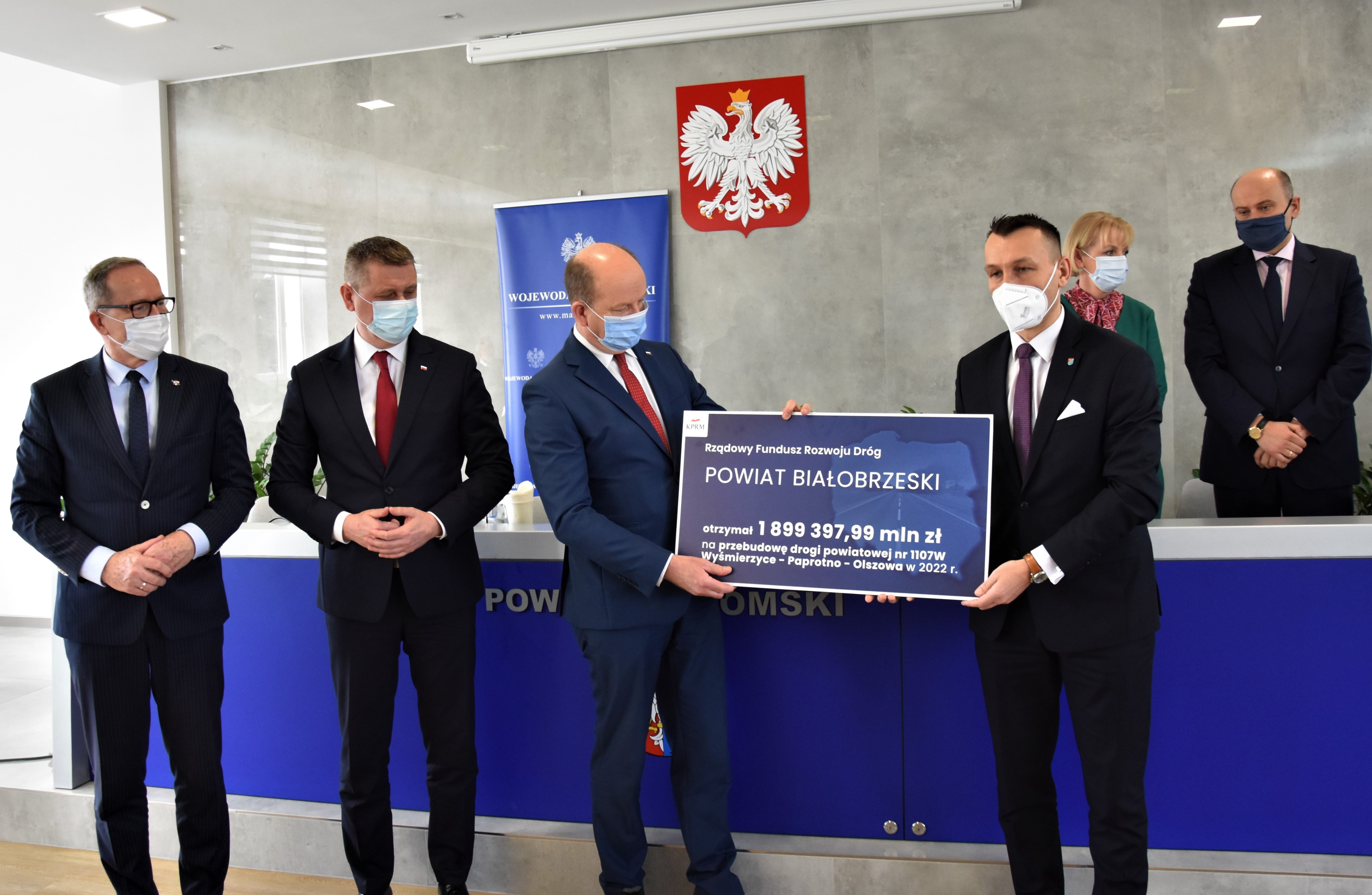 - Powiatu Białobrzeskiego – promesa na dofinansowanie w wysokości 1 899 397,99 zł na przebudowę drogi powiatowej nr 1107W Wyśmierzyce - Paprotno – Olszowa;