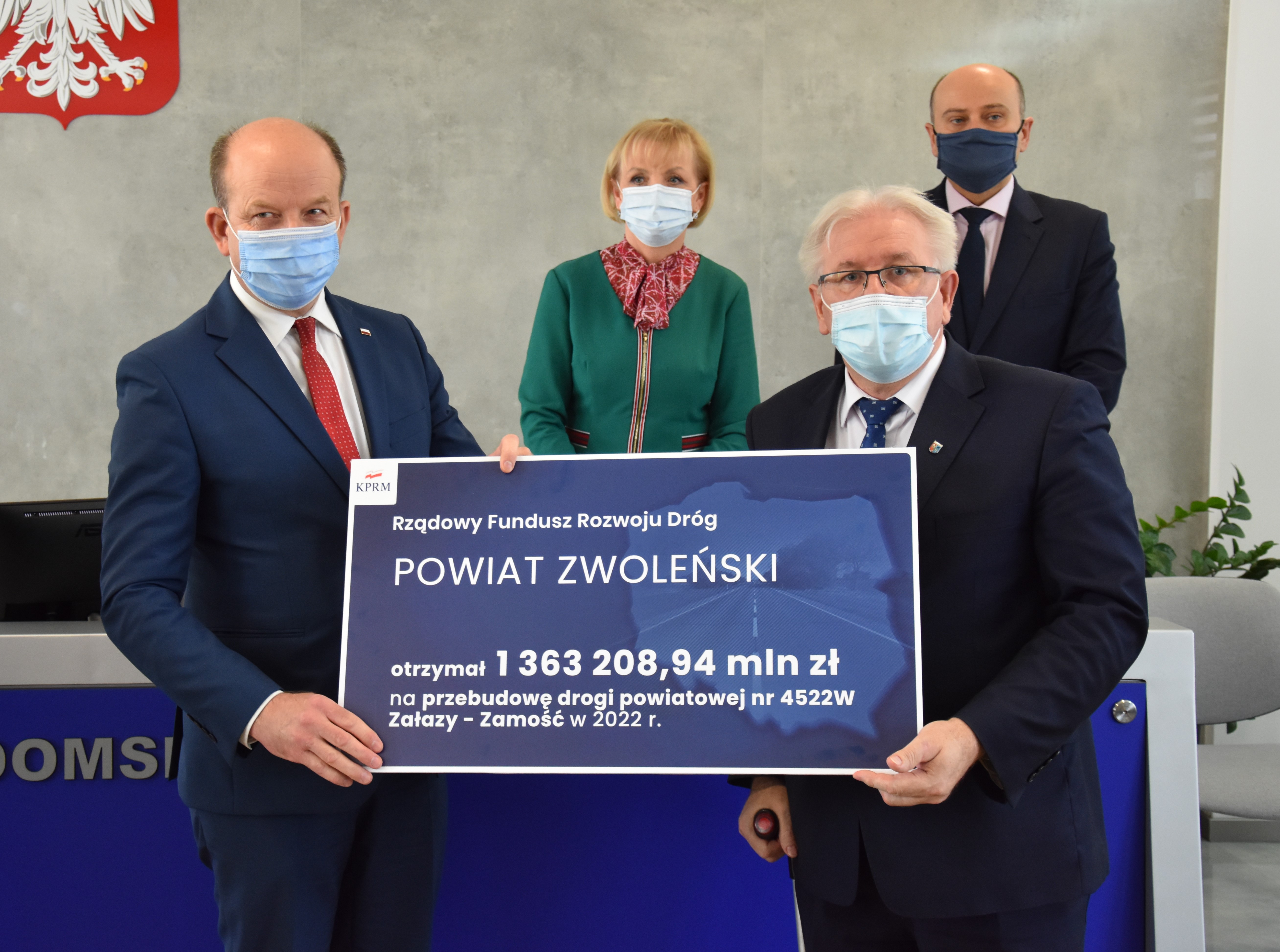 - Powiatu Zwoleńskiego – promesa na dofinansowanie w wysokości 1 363 208,94 zł na przebudowę drogi powiatowej nr 4522W Załazy – Zamość;