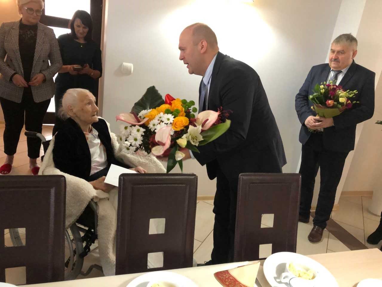 Kierownik Delegatury MUW w Ciechanowie odczytał list gratulacyjny Premiera RP Mateusza Morawieckiego oraz w imieniu Wojewody Mazowieckiego złożył dostojnej jubilatce życzenia i przekazał kwiaty.