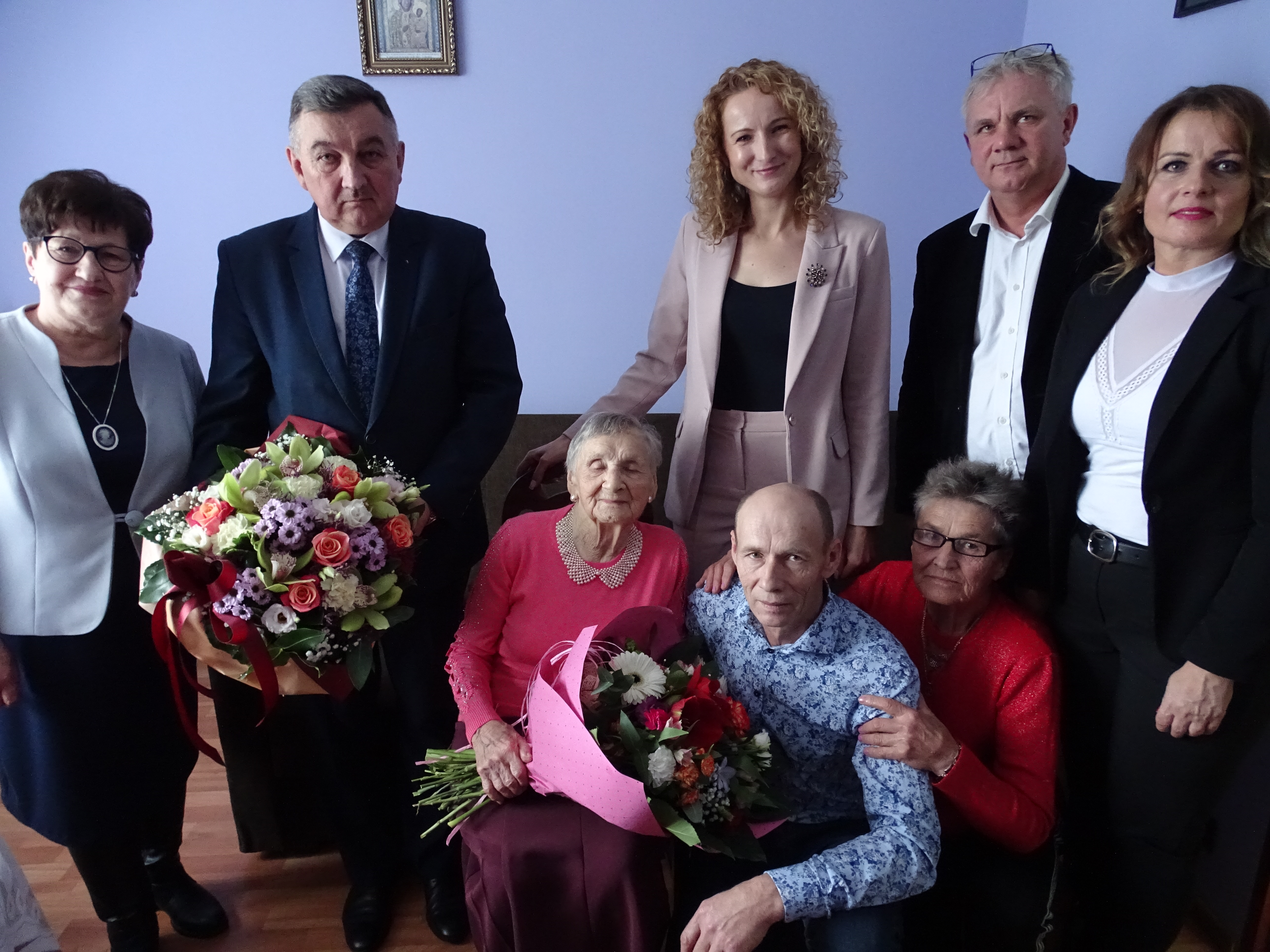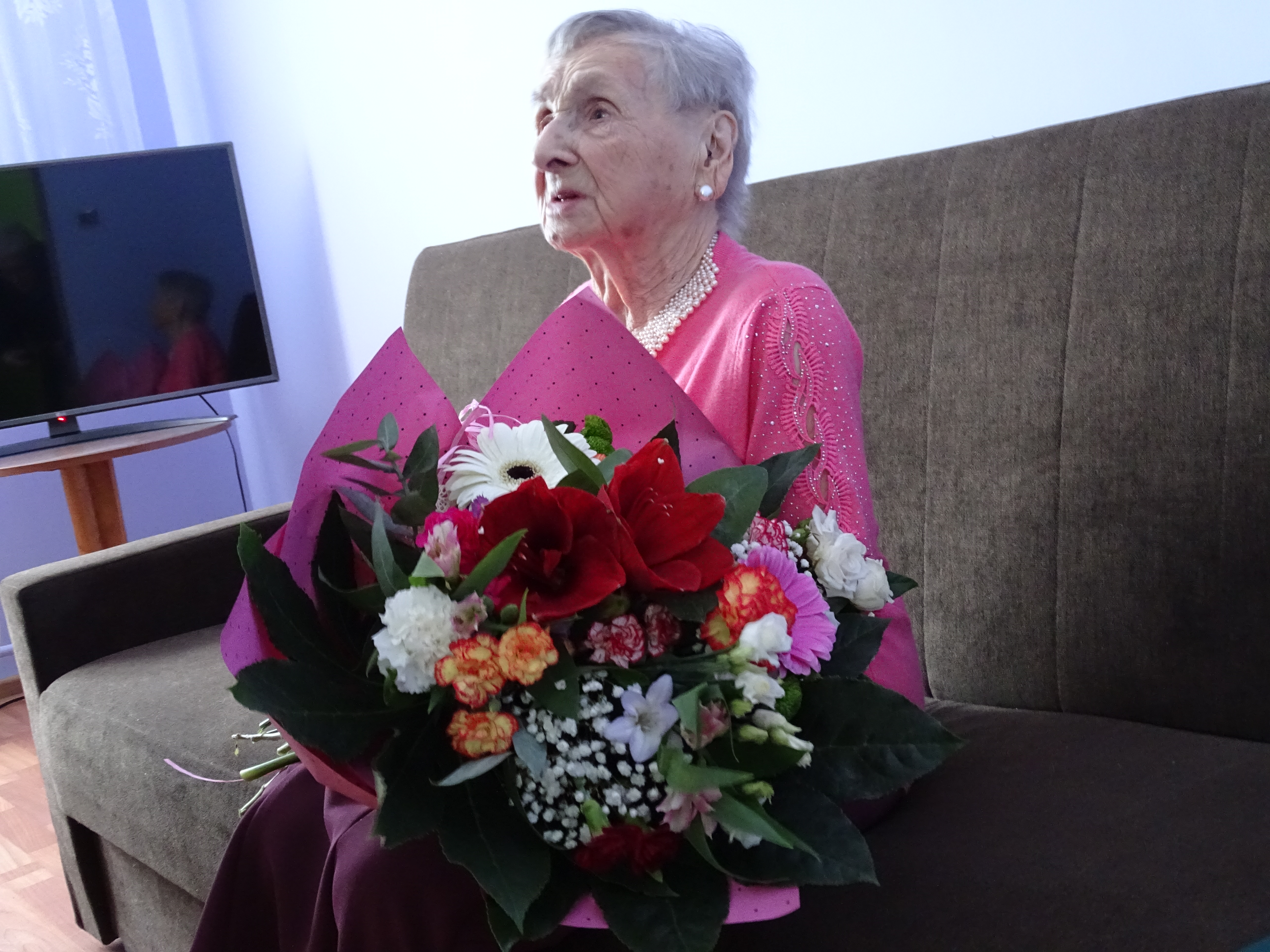 Jubilatkę odwiedził również Wójt Gminy Pacyna Krzysztof Woźniak, Maria Obidowska, Przewodnicząca Rady Gminy Pacyna, Agnieszka Józwiak, Kierownik Urzędu Stanu Cywilnego oraz Romuald Sarzała, Kierownik PT KRUS w Gostyninie. W tym szczególnym dniu nie zabrakło także życzeń. List gratulacyjny od Prezesa Rady Ministrów oraz kwiaty od Tobiasza Bocheńskiego, Wojewody Mazowieckiego przekazała Marlena Mazurska, Kierownik Delegatury Mazowieckiego Urzędu Wojewódzkiego w Płocku.