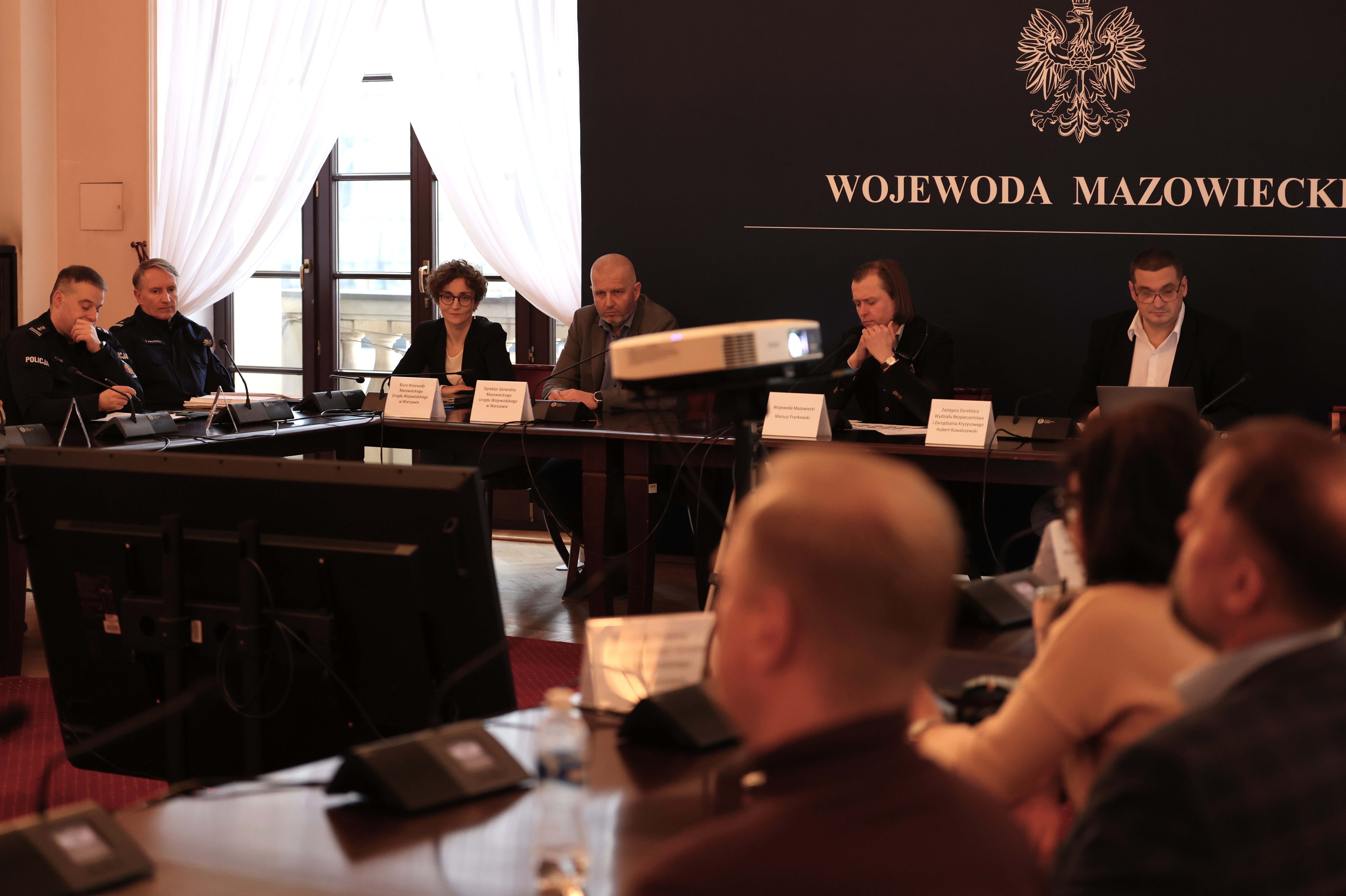 Na posiedzeniu obecni byli dyrektorzy wydziałów Mazowieckiego Urzędu Wojewódzkiego w Warszawie, przedstawiciele służb mundurowych, kolei państwowych, kuratorium oświaty, inspekcji oraz przedstawiciele związani z infrastrukturą drogową.