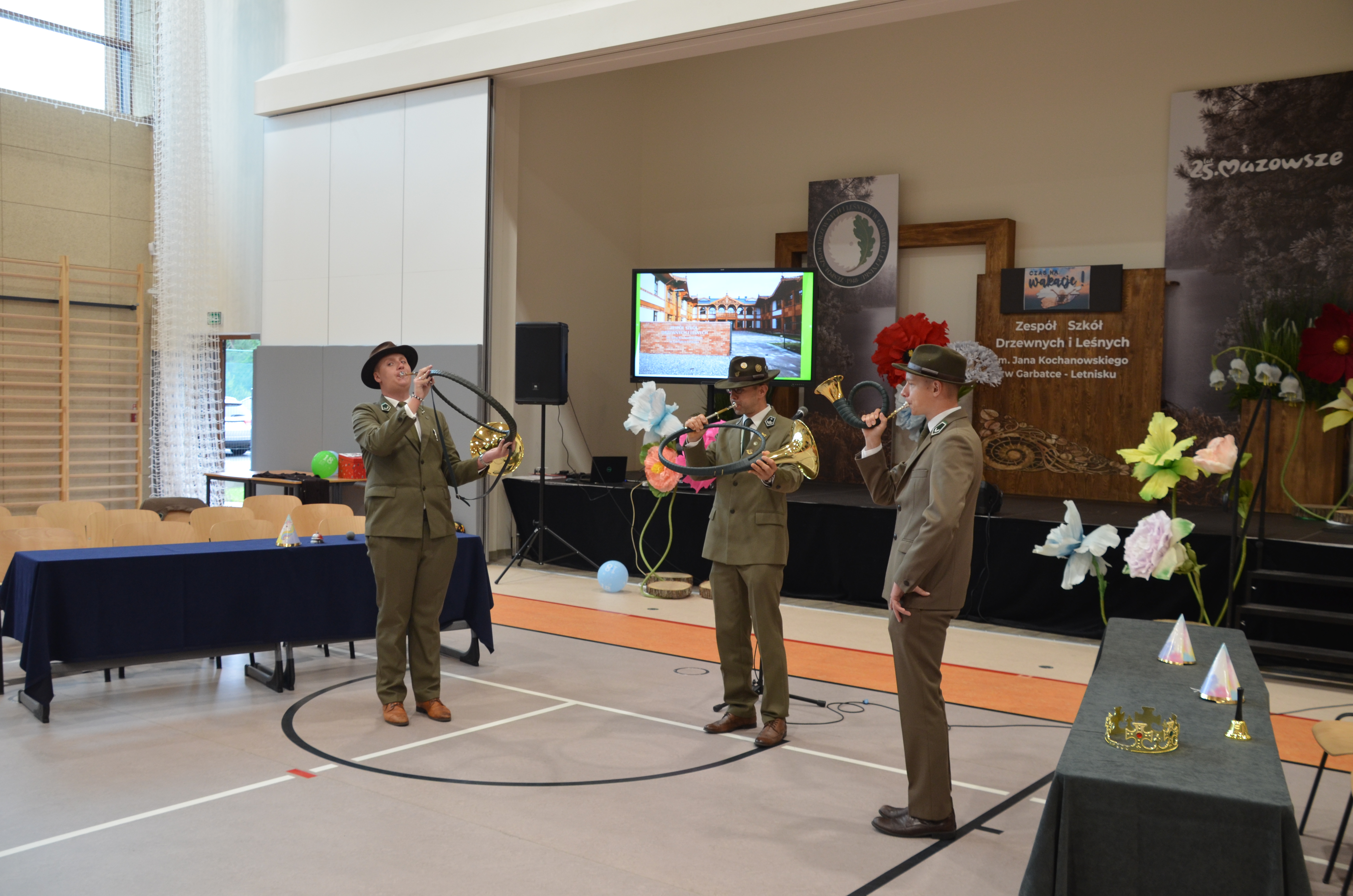 Uroczystości rozpoczęły się od wniesienia sztandaru szkoły i odśpiewania hymnu państwowego. Zgodnie z wieloletnią tradycją uczniowie klas leśnych odegrali na instrumentach dętych hymn szkoły.