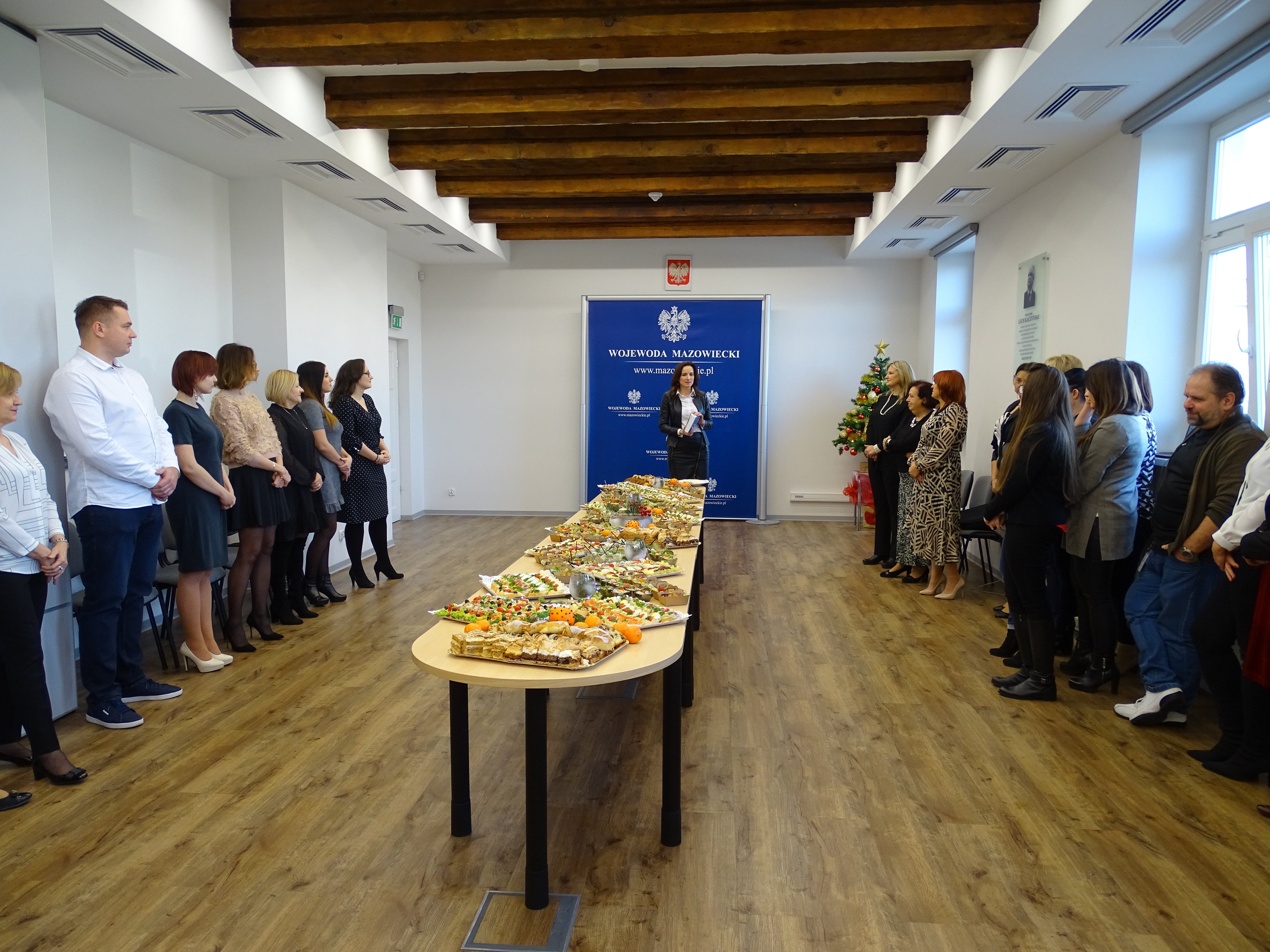 Spotkanie opłatkowe pracowników Delegatury w Płocku odbyło się 14 grudnia. Marlena Mazurska, Kierownik Delegatury w Płocku przekazała pracownikom życzenia od Wojewody Mazowieckiego i podziękowała wszystkim za kolejny rok współpracy. Pracownicy podzielili się opłatkiem i wspólnie wysłuchali kolęd.
