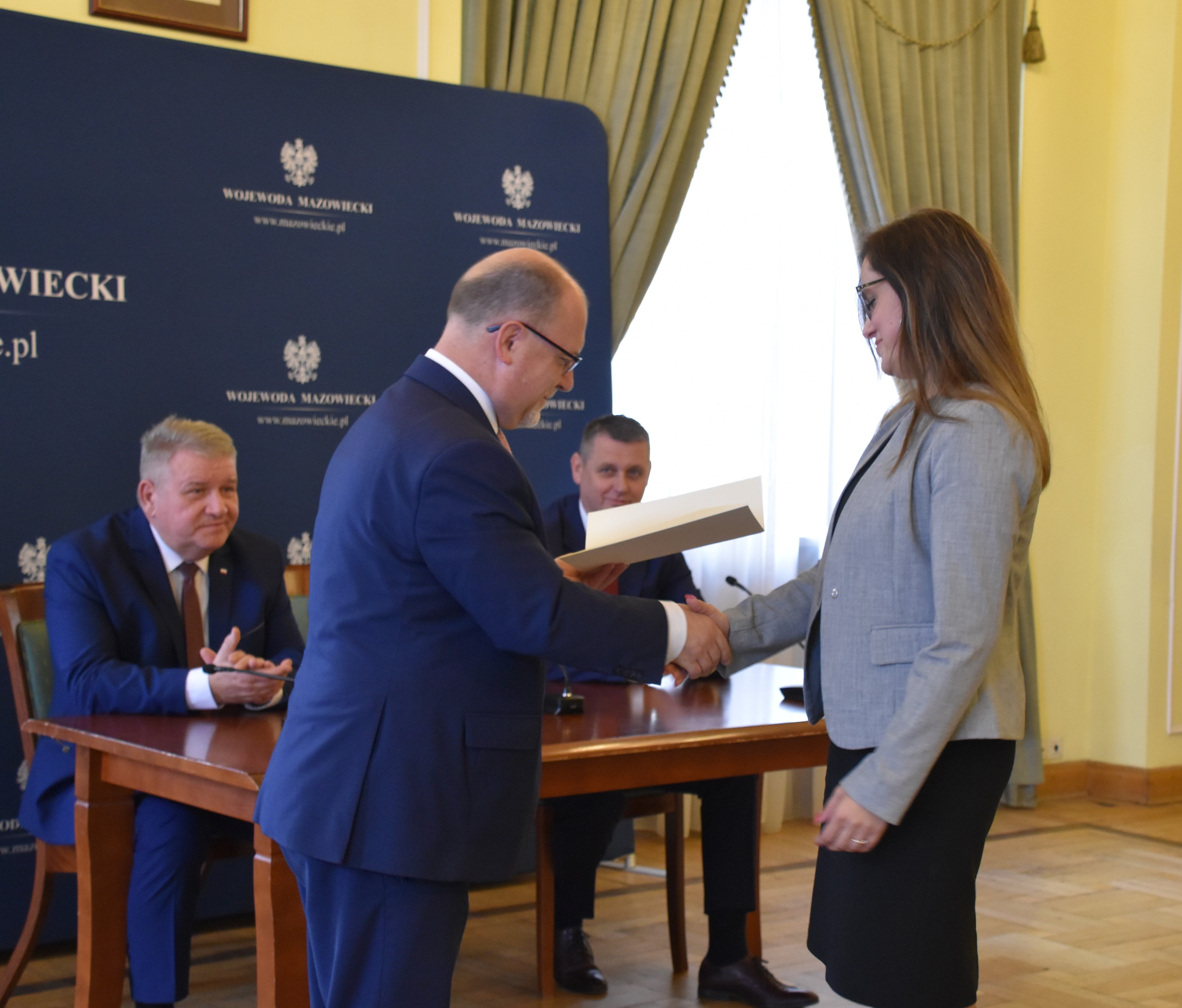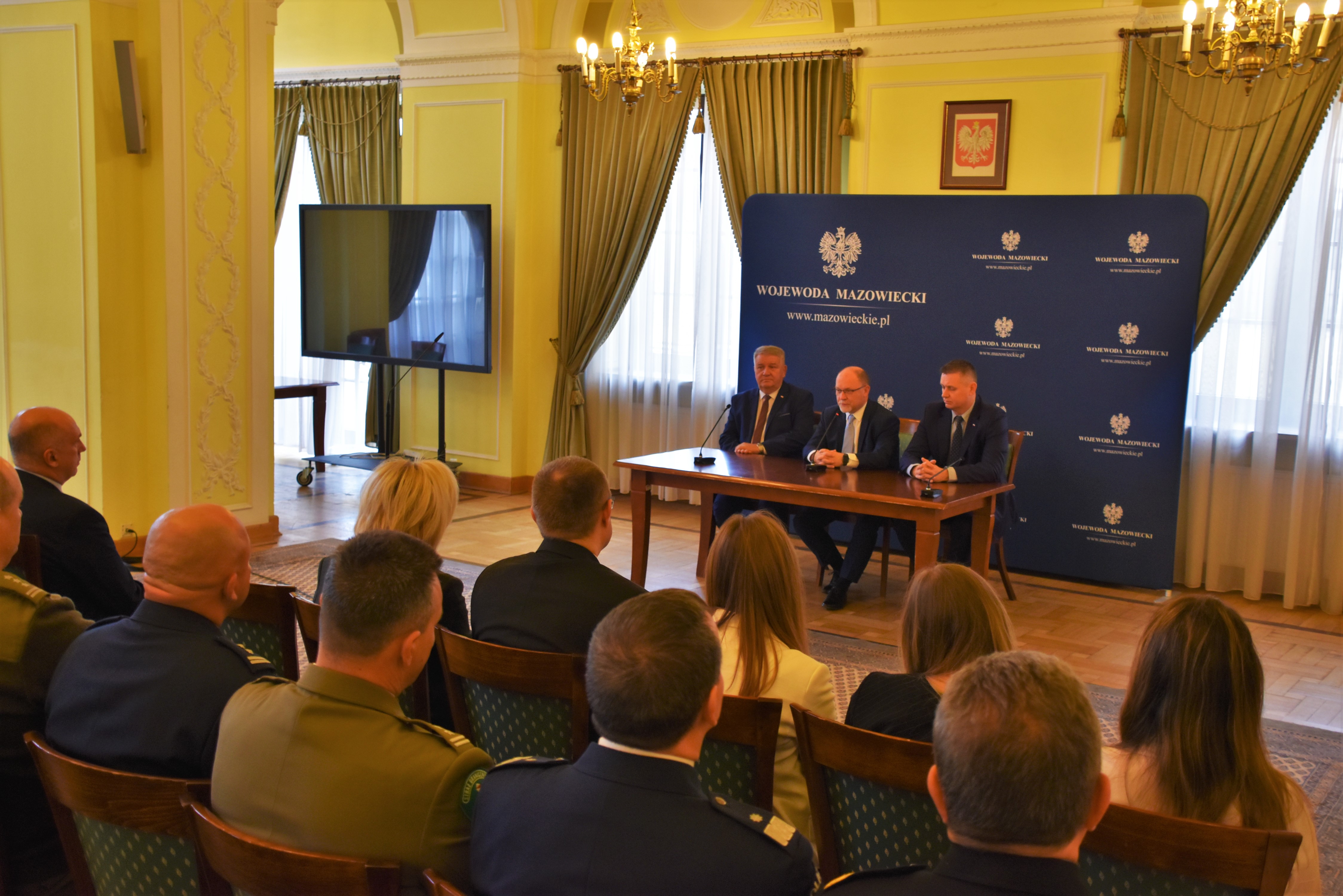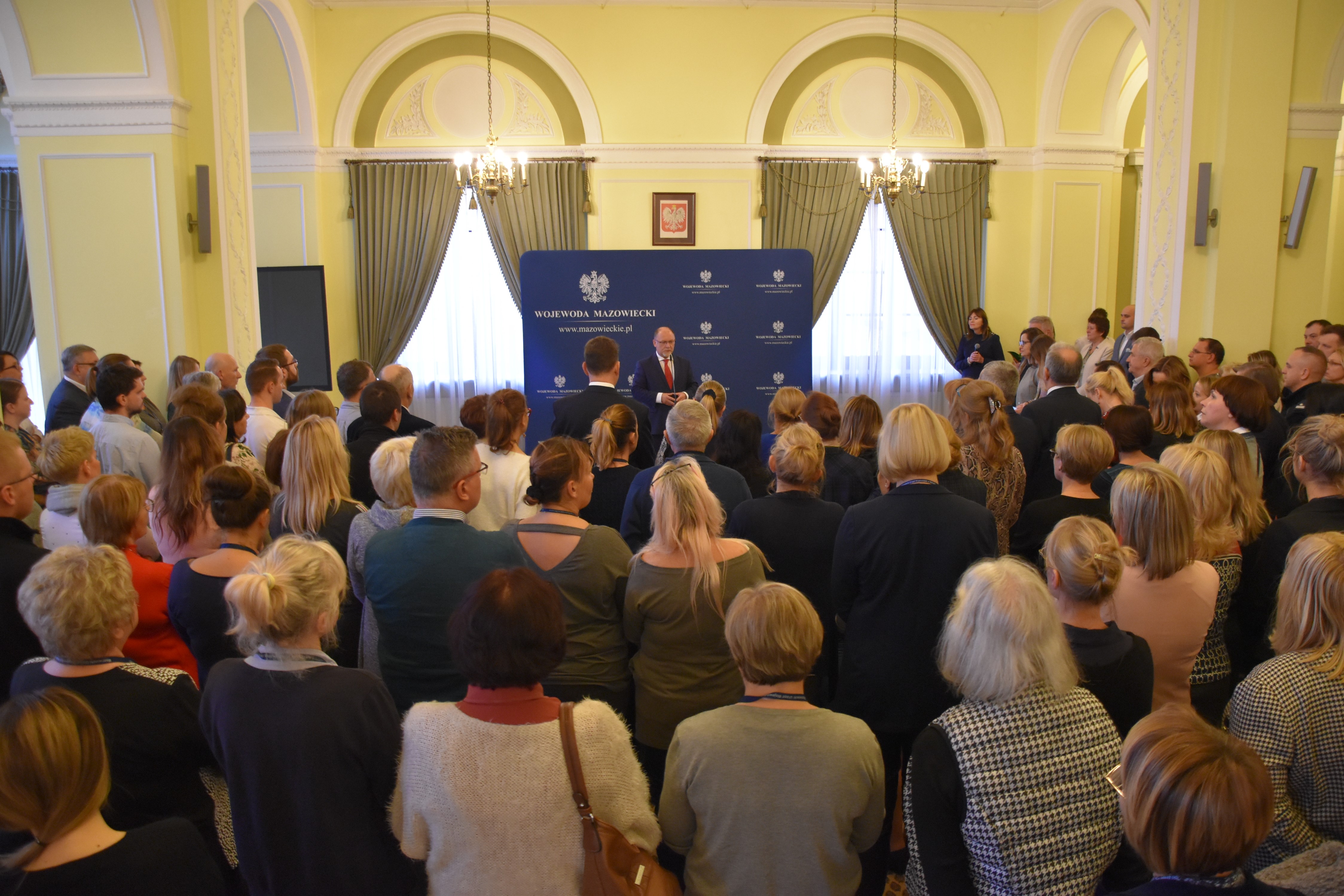 Wojewoda Zdzisław Sipiera i Wicewojewodowie: Sylwester Dąbrowski i Artur Standowicz podsumowują pracę na rzecz mieszkańców Mazowsza. Podziękowania za cztery lata współpracy przekazali na ręce przedstawicieli służb i inspekcji, dyrektorów i pracowników Mazowieckiego Urzędu Wojewódzkiego
