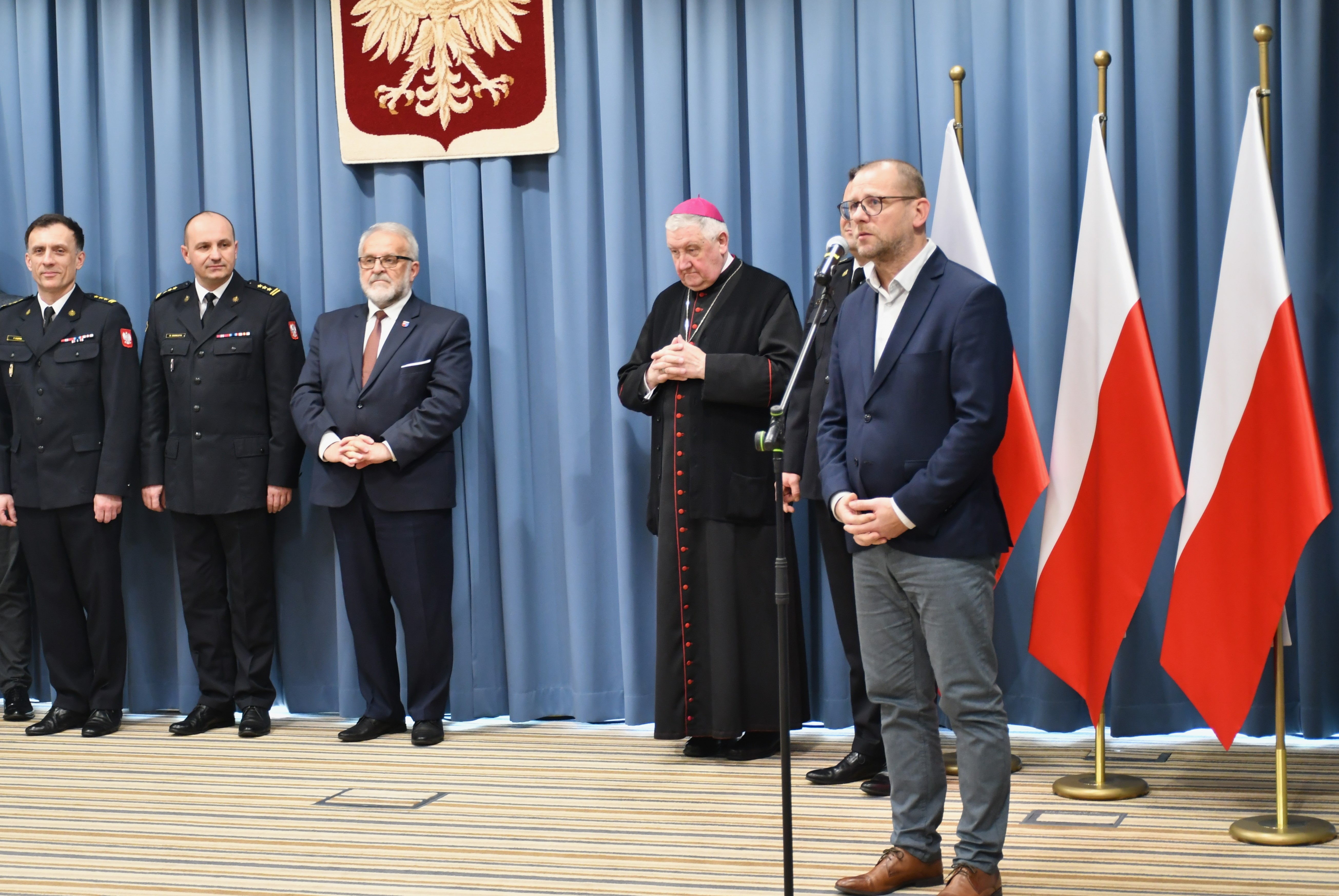 Zgromadzonych gości powitał Mazowiecki Komendant Wojewódzki PSP st. bryg. Artur Gonera. Następnie ordynariusz Diecezji Warszawsko-Praskiej Jego Ekscelencja Ks. Bp Romuald Kamiński w asyście ks. bryg. Jerzego Sieńkowskiego – kapelana mazowieckich strażaków, wygłosił refleksje na temat zbliżającego się Dnia Zmartwychwstania Pańskiego oraz poświęcił przygotowane pokarmy.