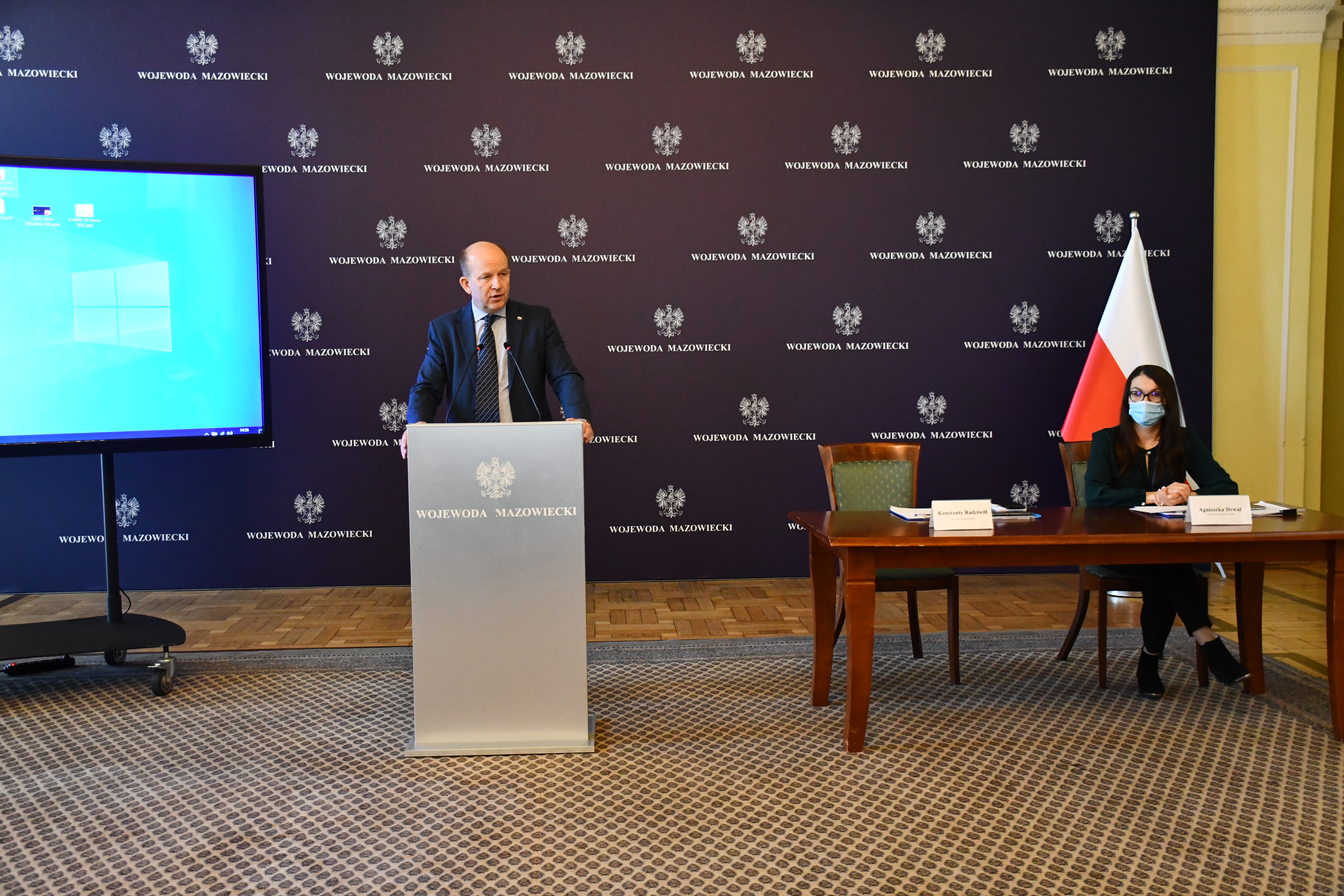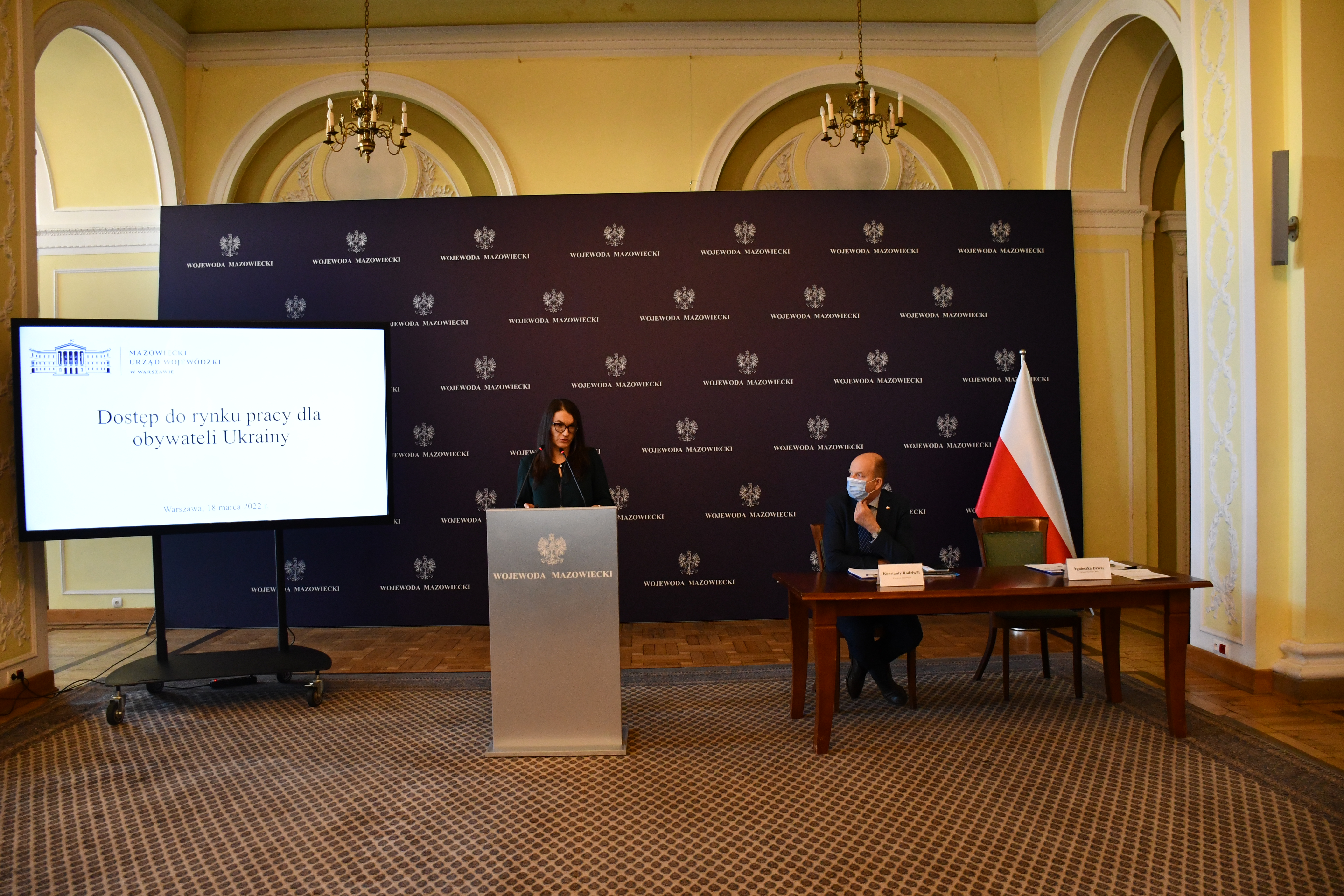 Wojewoda Mazowiecki Konstanty Radziwiłł w piątek, 18 marca br. w Mazowieckim Urzędzie Wojewódzkim spotkał się z ekspertami ds. aktywizacji zawodowej oraz podmiotami zajmującymi się pośrednictwem pracy. Wydarzenie miało charakter roboczy i dotyczyło m.in.: włączania w polski rynek pracy potencjału zawodowego, który pojawia się wraz z uchodźcami z Ukrainy, wymianę doświadczeń, omówienia problemów i wspólne poszukiwanie rozwiązań. Wśród zaproszonych gości byli m.in.: Olga Kordys Kozierowska i Olga Legosz z Fundacji Sukcesu Pisanego Szminką, Igor Isajew z Vipol Group, Taras Voloshin z Gremi Personal, Grzegorz Gospodarec z Go Work, eksperci z EWL Group Andrzej Korkus oraz Mariya Kuzenko oraz dr hab. Krystyna Błeszyńska z Pedagogium Wyższej Szkoły Nauk Społecznych (WSNS) w Warszawie.