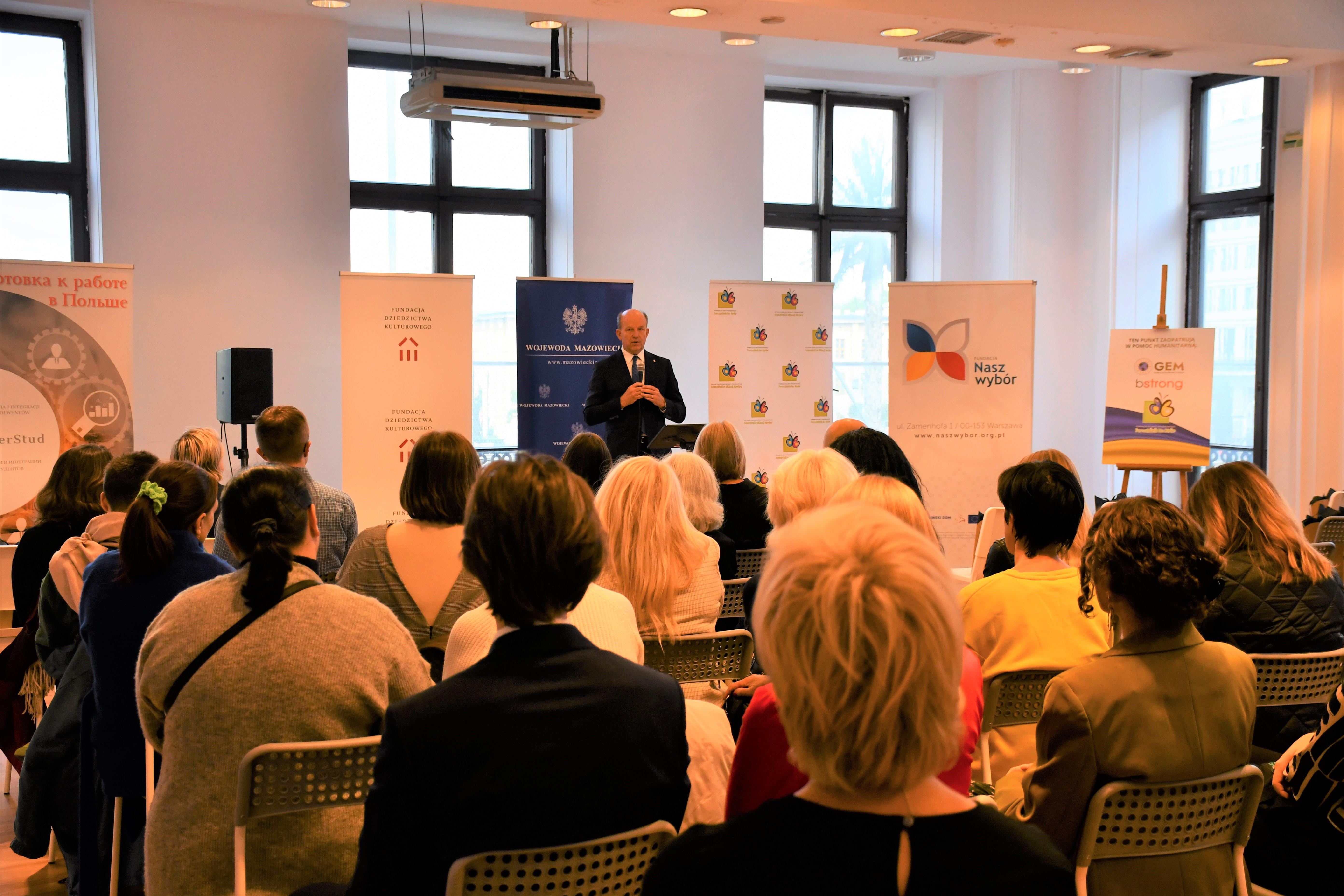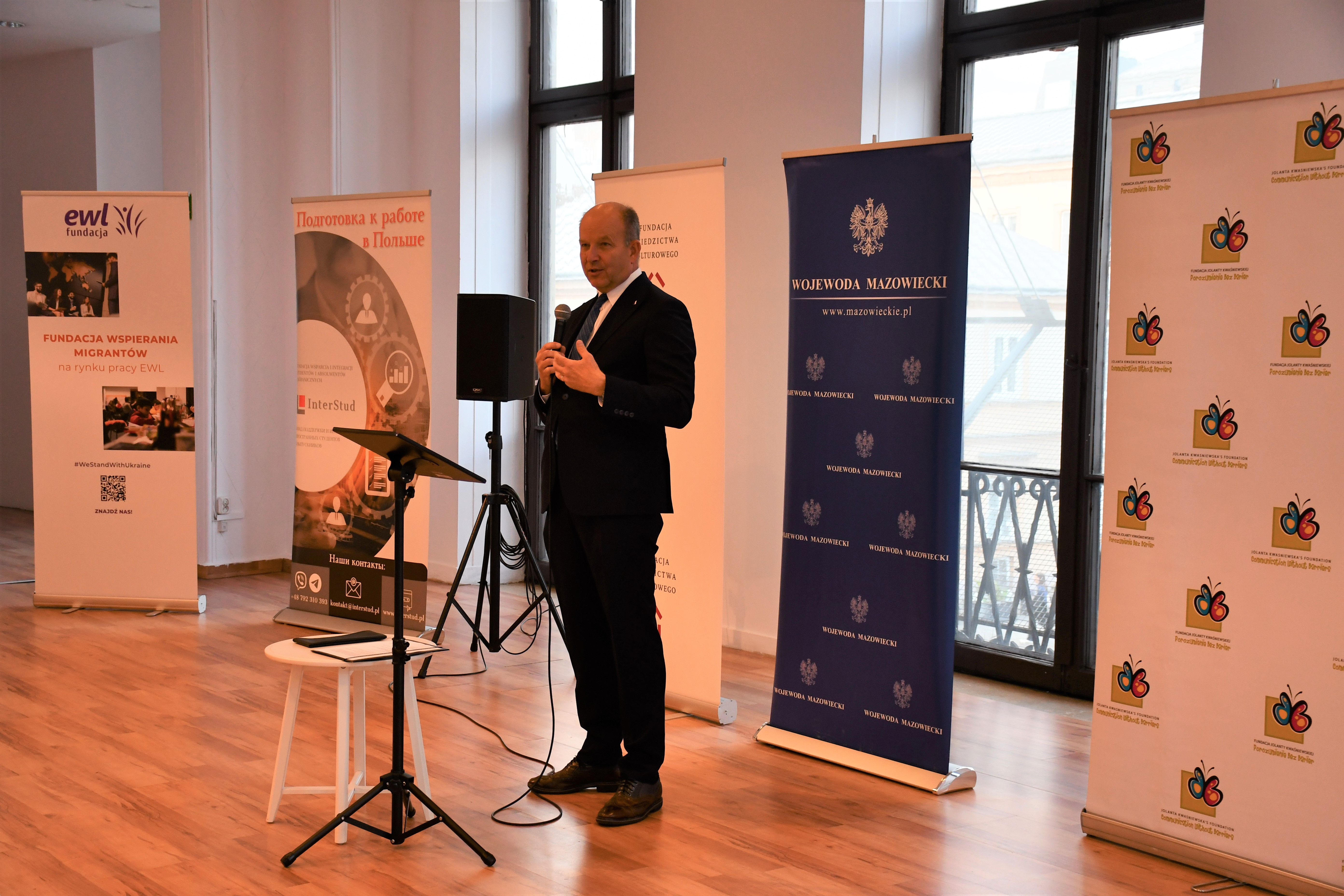- Chciałbym Państwu bardzo serdecznie podziękować. Państwa pomoc, którą Państwo udzielają jest nieoceniona. Uchodźcy z Ukrainy otrzymują wsparcie z zakresie prawa, szukaniu pracy, czy nauki języka polskiego. Wszystkie te działania prowadzą do tego, żeby uchodźcy z Ukrainy mogli normalnie żyć w Polsce. Chcemy rozsądnie pomagać. Nie mam dobrych słów, żeby wyrazić moją wdzięczność. Różni nas bardzo wiele, ale jeśli jest dobro nadrzędne to umiemy współpracować. To ma niezwykłe znaczenie dla Polski. Jeśli udaje się współpracować to nas przemienia. Państwo robią coś dobrego dla Polski, a skutki tego będą odczuwalne. Państwa działania są nadzieją dla Polski, dla jej przyszłości, że potrafimy współpracować i działać razem. Jeszcze raz bardzo serdecznie dziękuję i proszę o więcej – powiedział Wojewoda Mazowiecki Konstanty Radziwiłł.