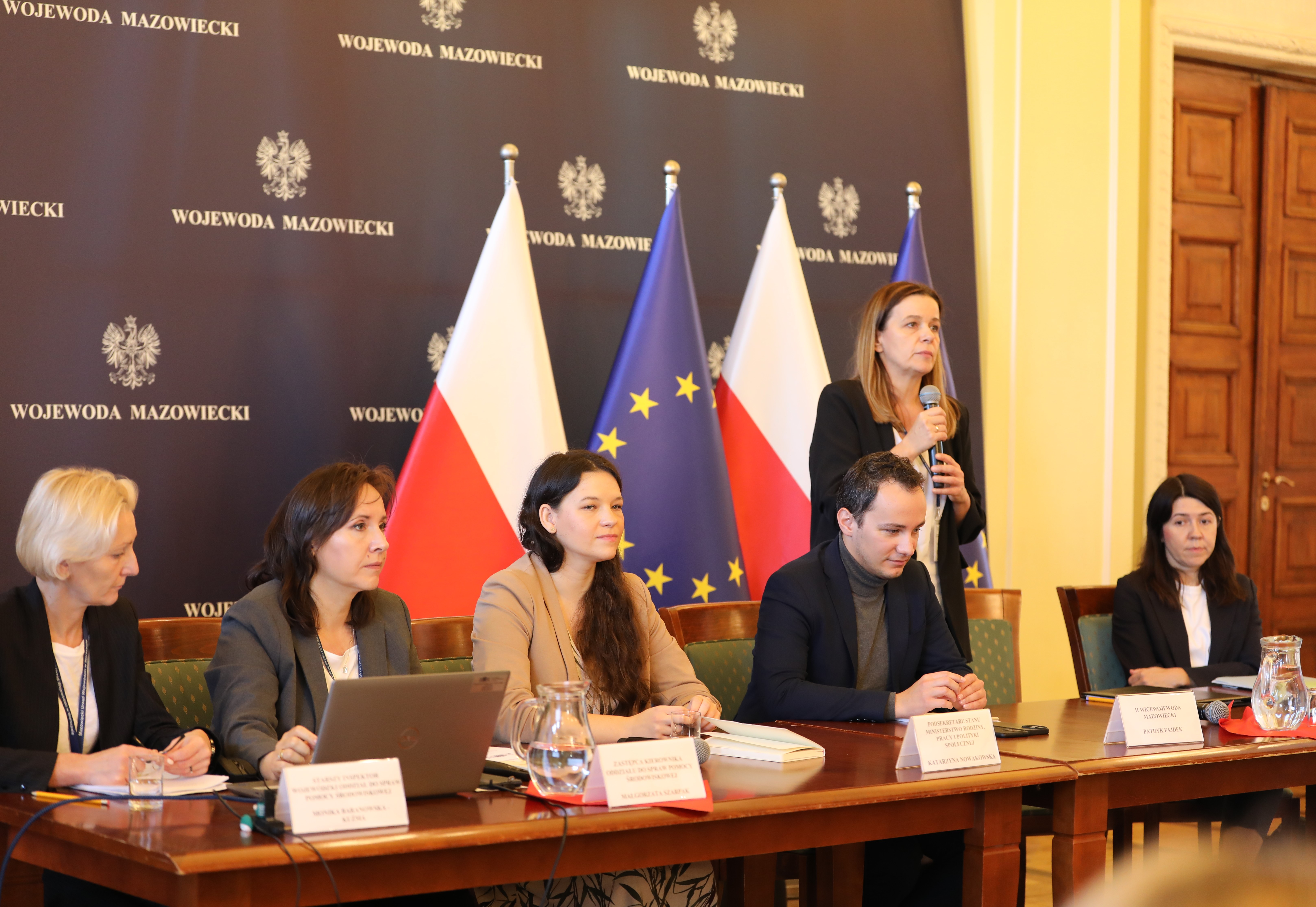 W naradzie udział wzięli również m.in. Naczelnik Wydziału Usług w Pomocy Społecznej w Departamencie Pomocy Społecznej MRPiPS Magdalena Zielińska, Dyrektor Wydziału Rodziny i Polityki Społecznej MUW w Warszawie Katarzyna Kieszek, Zastępca Dyrektora Wydziału Rodziny i Polityki Społecznej MUW w Warszawie Monika Koziarska, Pełnomocnik Wojewody Mazowieckiego ds. Równości Anna Piasecka, Zastępca Kierownika Oddziału ds. Pomocy Środowiskowej w Wydziale Rodziny i Polityki Społecznej MUW w Warszawie Małgorzata Szarpak oraz Starszy inspektor wojewódzki Oddziału ds. Pomocy Środowiskowej w Wydziale Rodziny i Polityki Społecznej MUW w Warszawie Monika Baranowska – Kuźma.