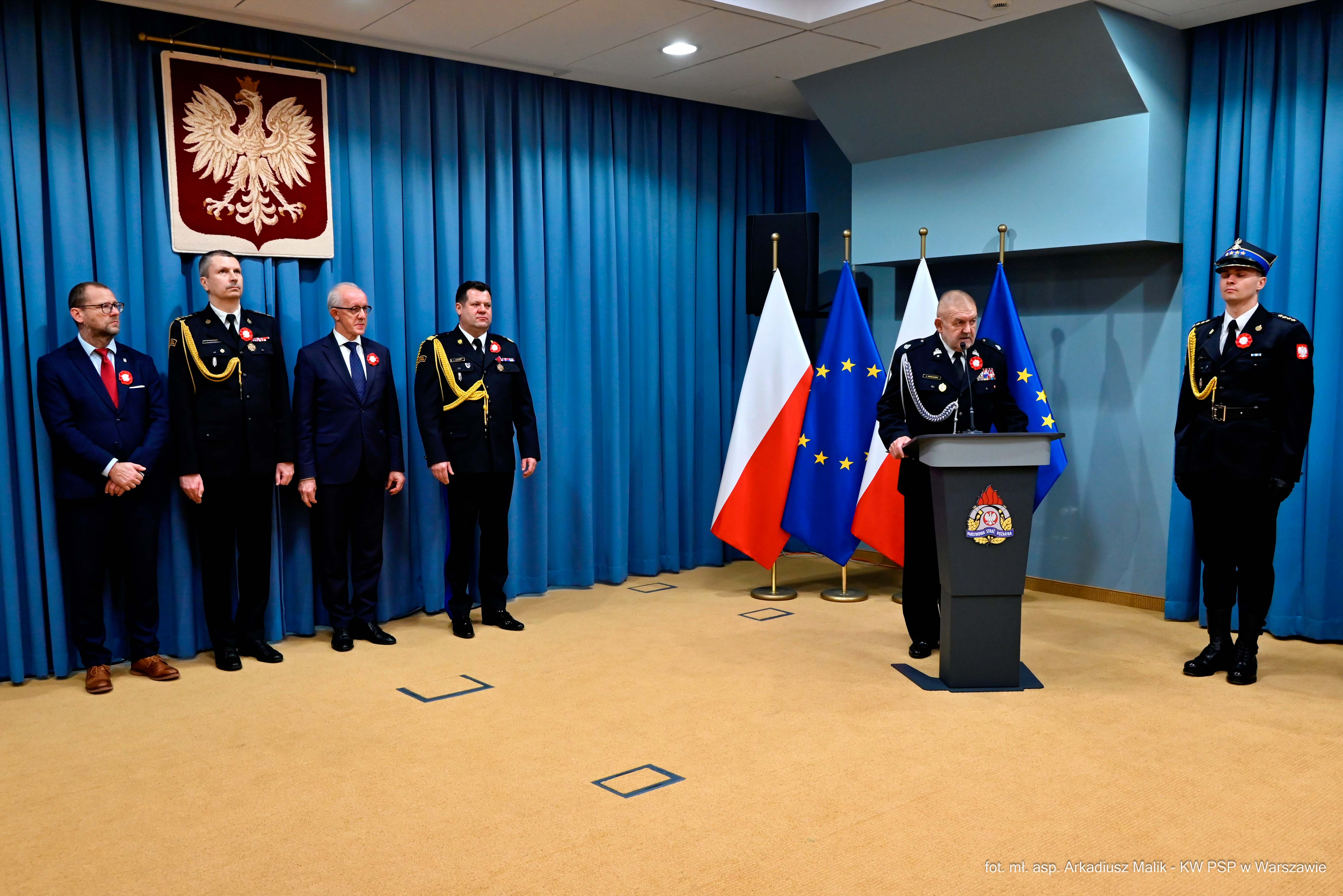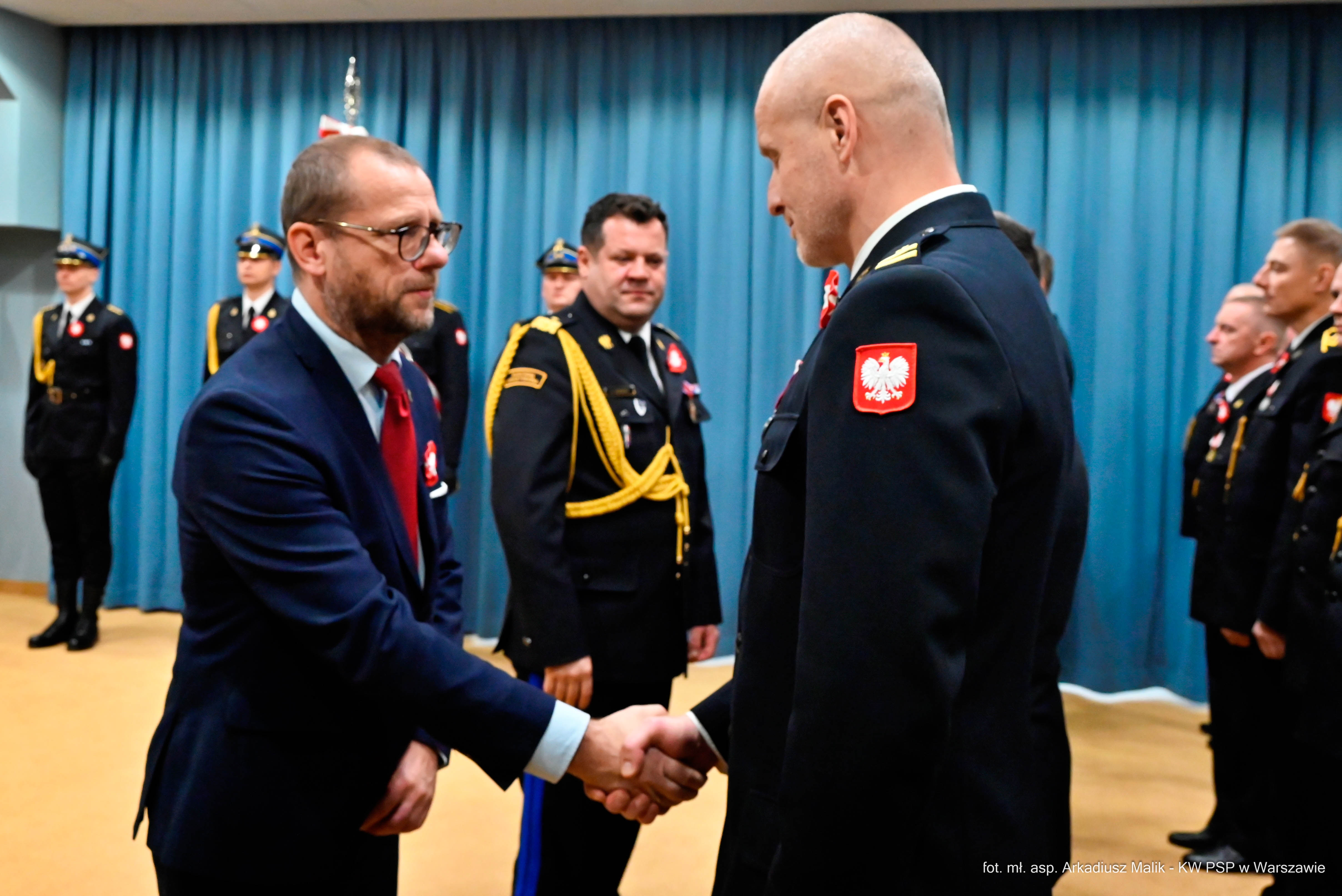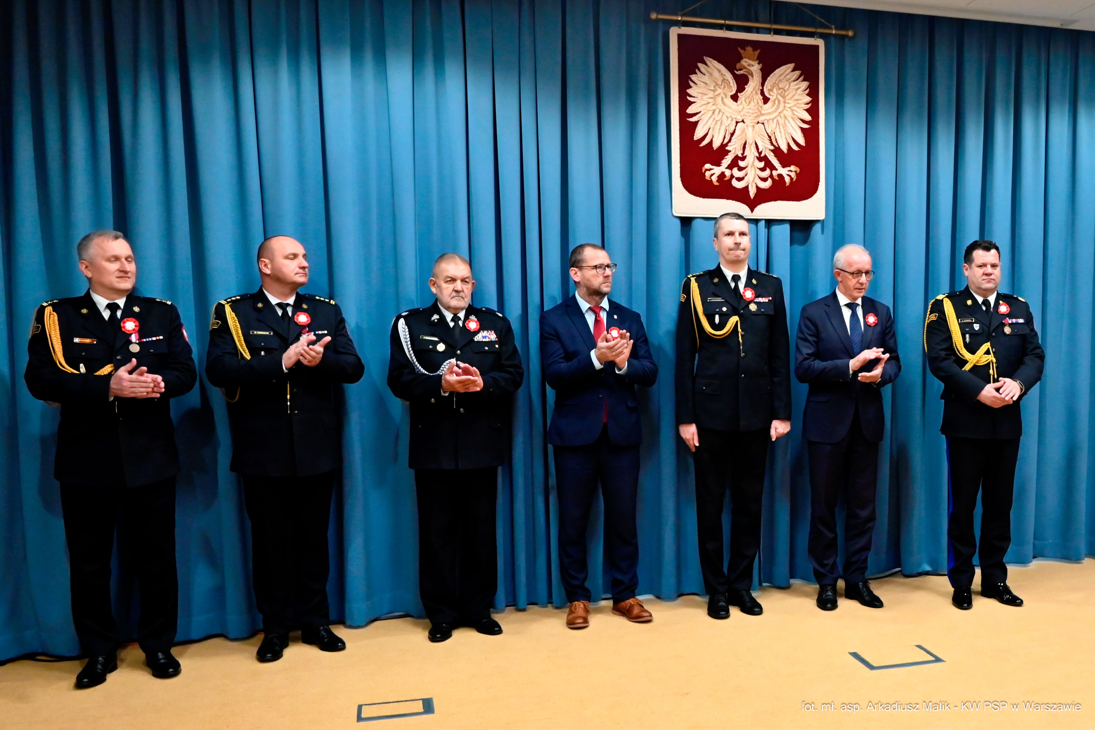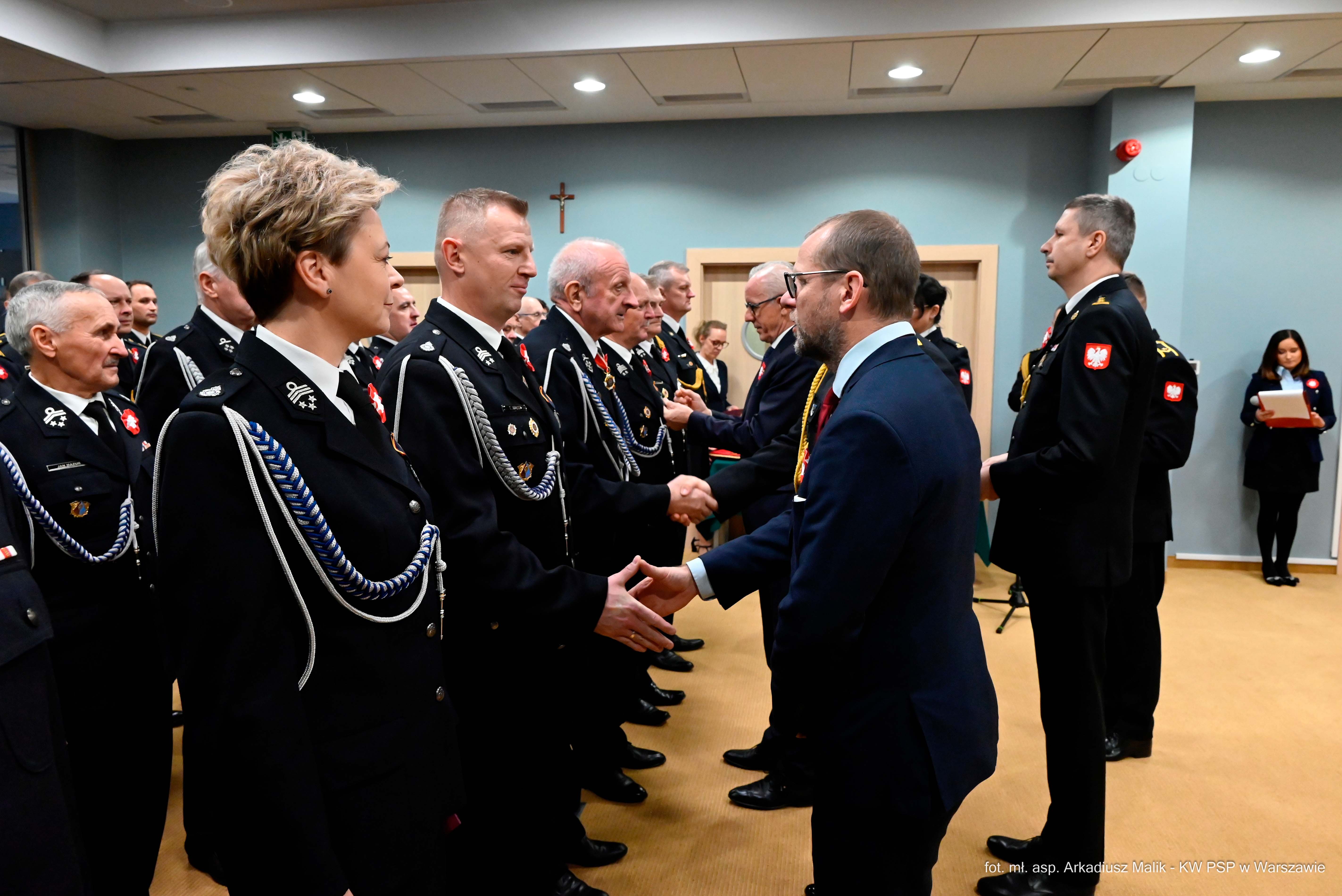 Odznaczenia i akty nadania wyższych stopni zostały wręczone strażakom Państwowej i Ochotniczej Straży Pożarnej oraz pracownikom cywilnym z terenu województwa mazowieckiego.