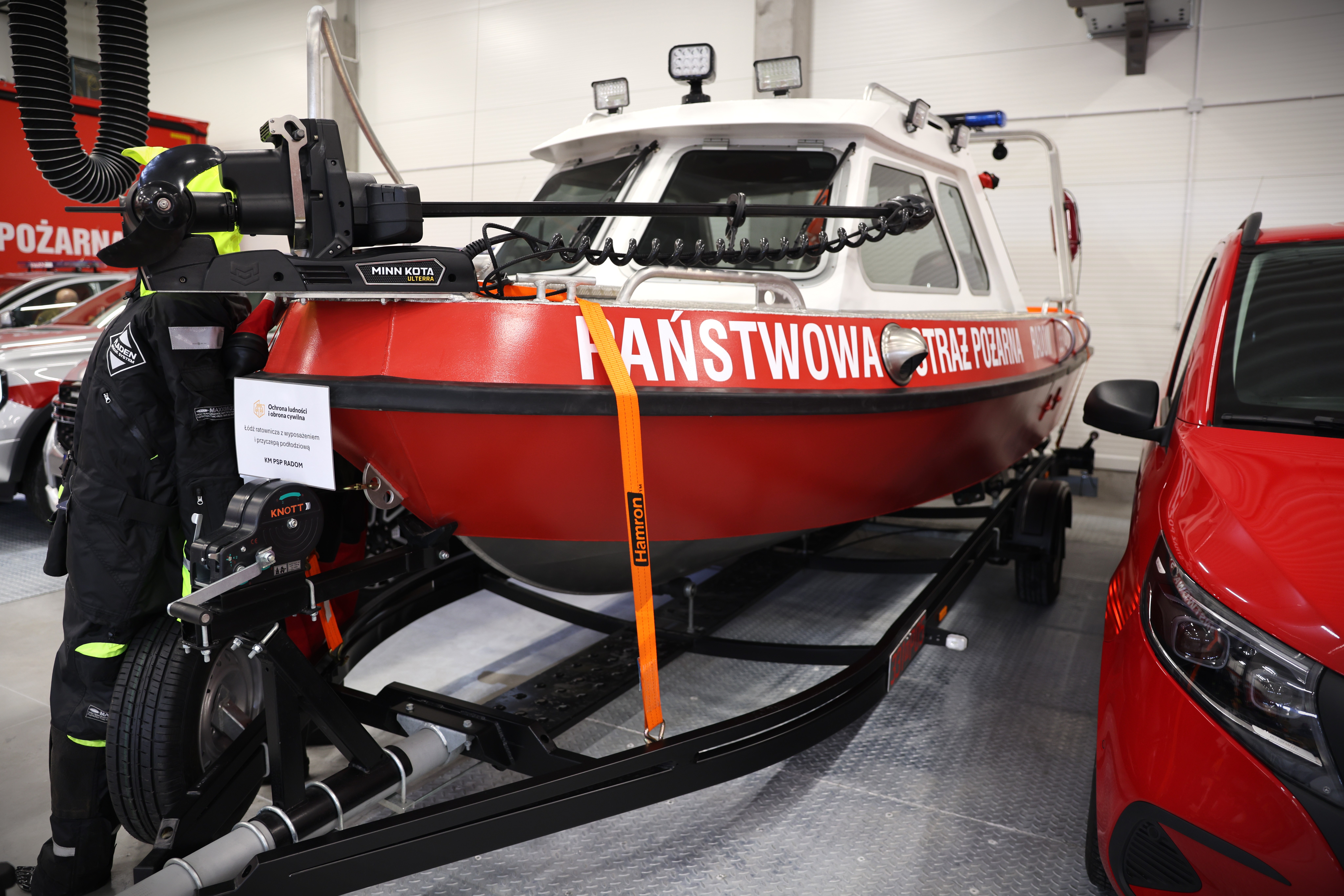 - Łódź ratowniczą z wyposażeniem i przyczepą podłodziową,