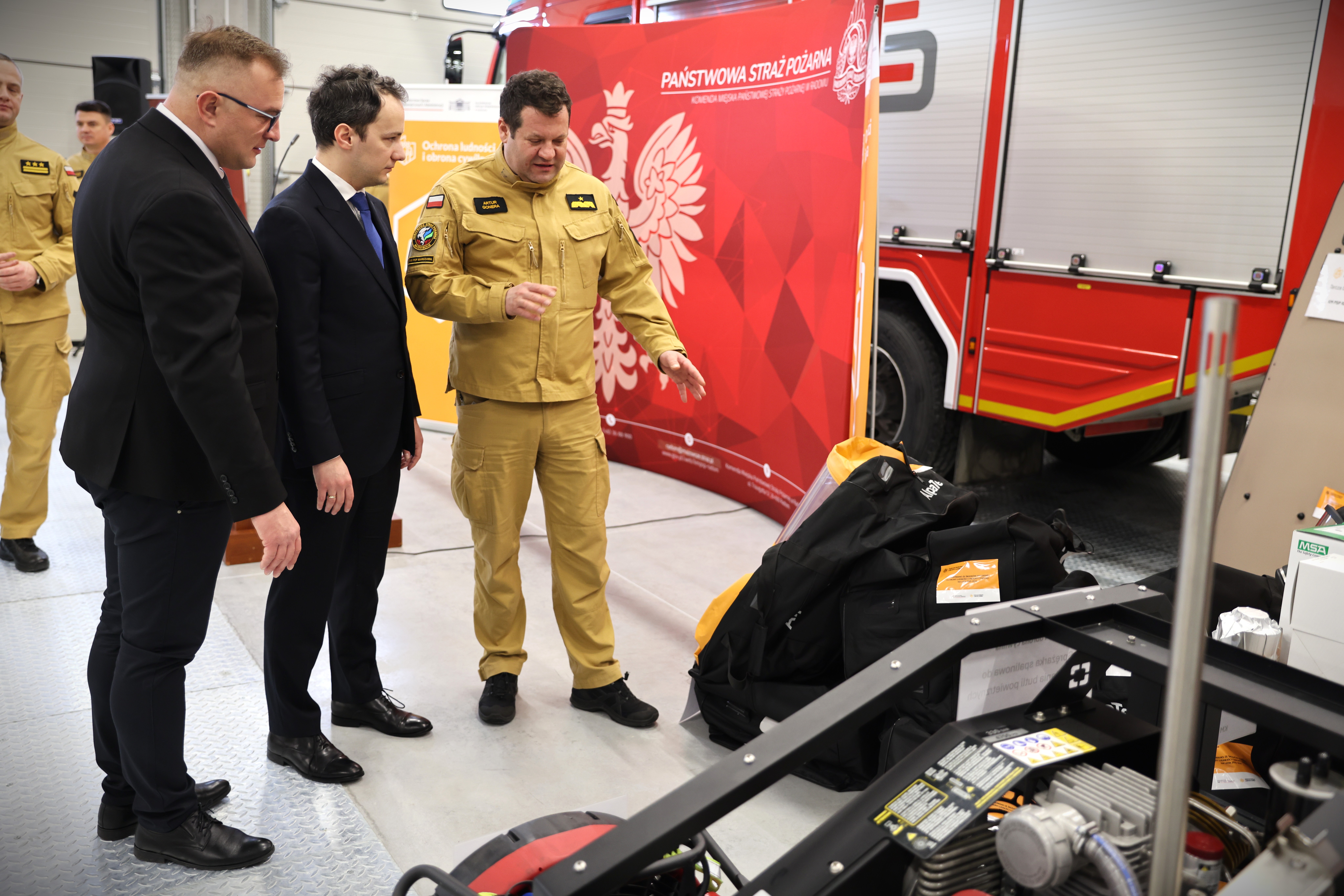 Ponad 74 miliony złotych to historyczne dofinansowanie dla Państwowej Straży Pożarnej. W ramach Programu Ochrony Ludności i Obrony Cywilnej strażacy zainwestowali te pieniądze m.in. w sprzęt, który tu dzisiaj widzimy. To strażacy są istotnym elementem całego systemu obronności naszego państwa, za co serdecznie dziękuję. Już niedługo nowy nabór. Ponad 710 milionów. Pierwszy etap to środki na inwentaryzację, modernizację oraz przygotowanie dokumentów na budowę miejsc doraźnego schronienia. Drugi etap to edukacja i szkolenia mieszkańców. W trzecim etapie, w miarę możliwości, będziemy wspólnie z samorządowcami sprawdzać, czego jeszcze brakuje i doposażać magazyny w niezbędny sprzęt
