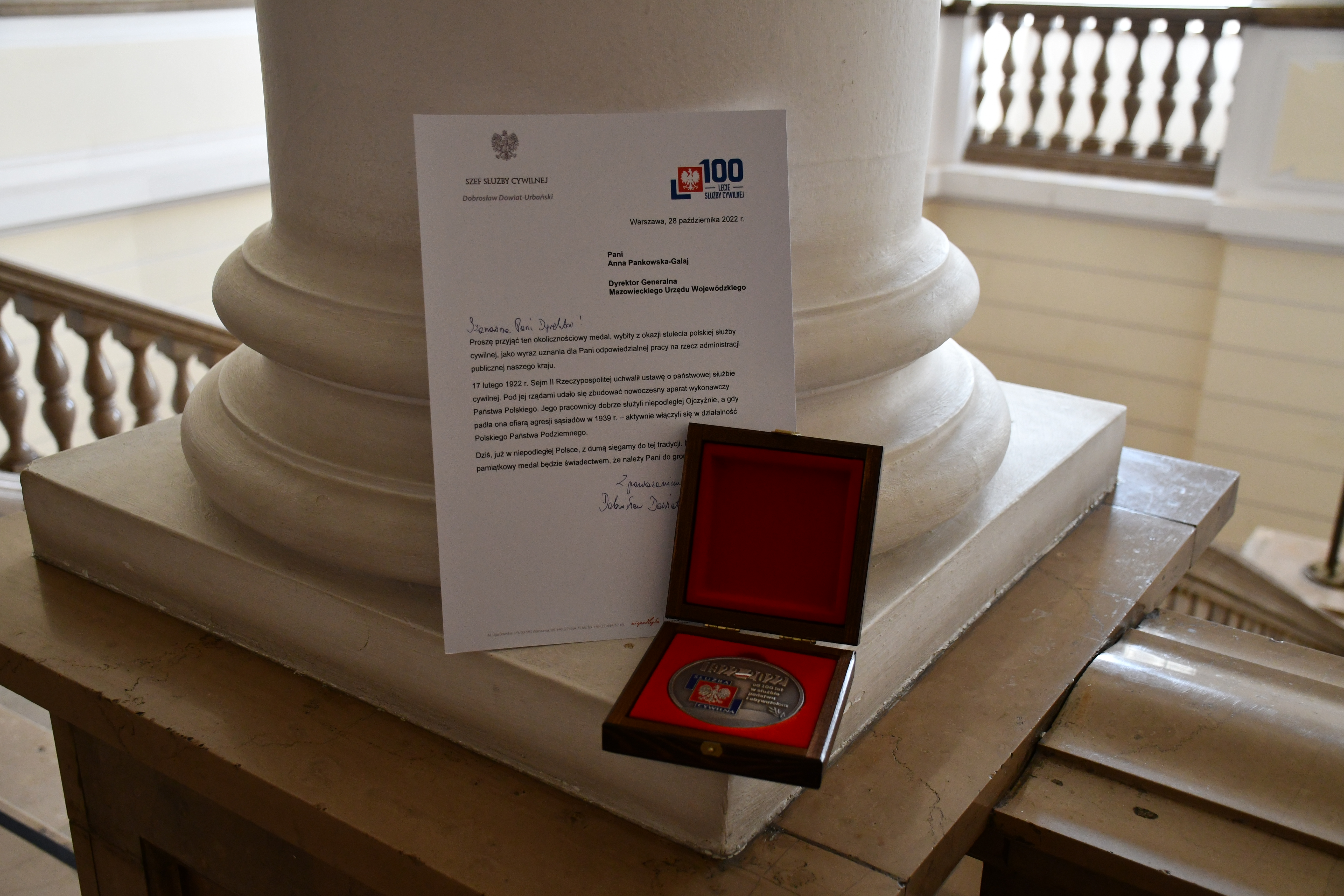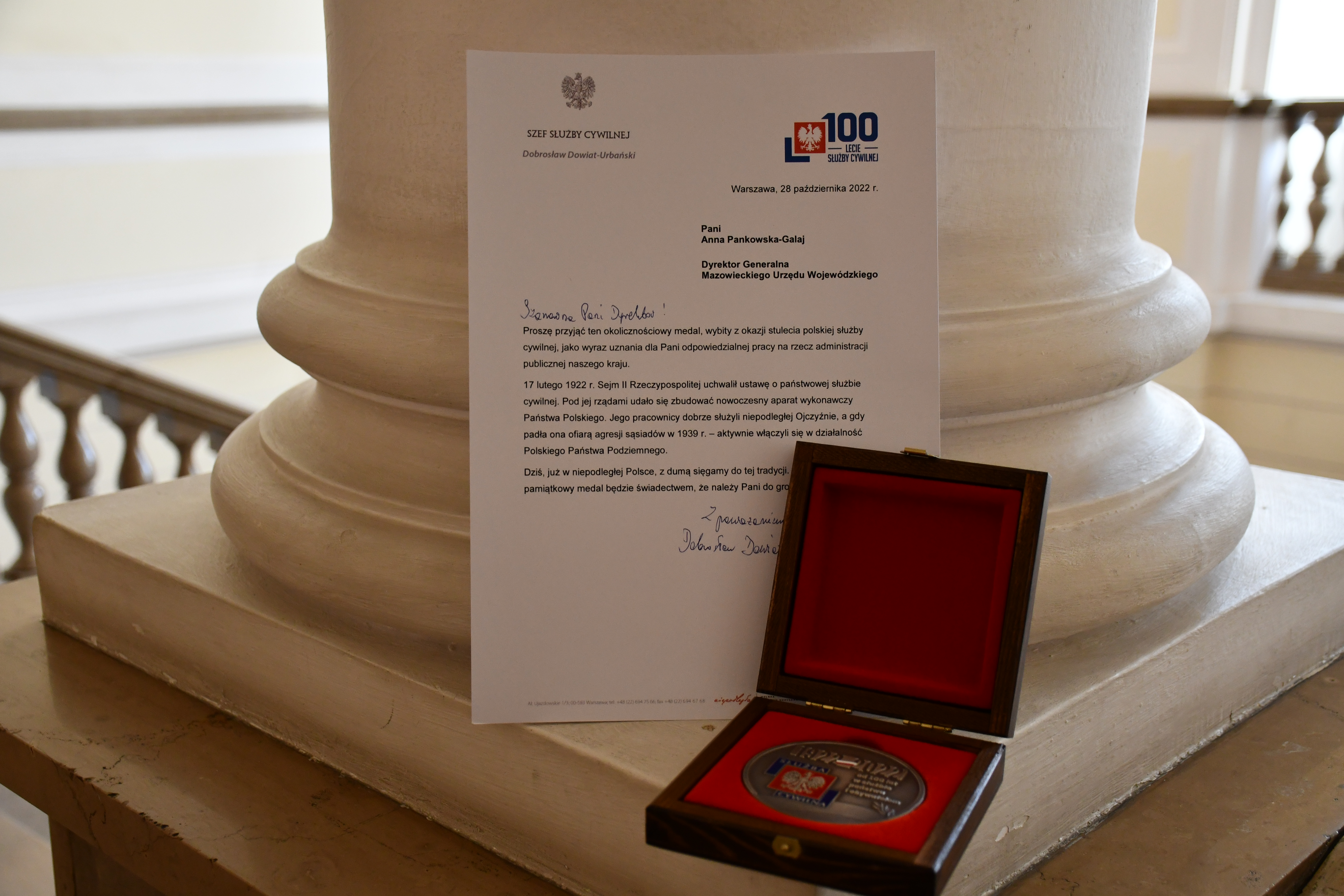Z okazji stulecia polskiej służby cywilnej Dobrosław Dowiat-Urbański Szef służby cywilnej wręczył Dyrektorowi Generalnemu MUW Annie Pankowskiej-Gałaj, okolicznościowy medal. W związku z otrzymanym wyróżnieniem Dyrektor Anna Pankowska-Gałaj podziękowała pracownikom Mazowieckiego Urzędu Wojewódzkiego w Warszawie.