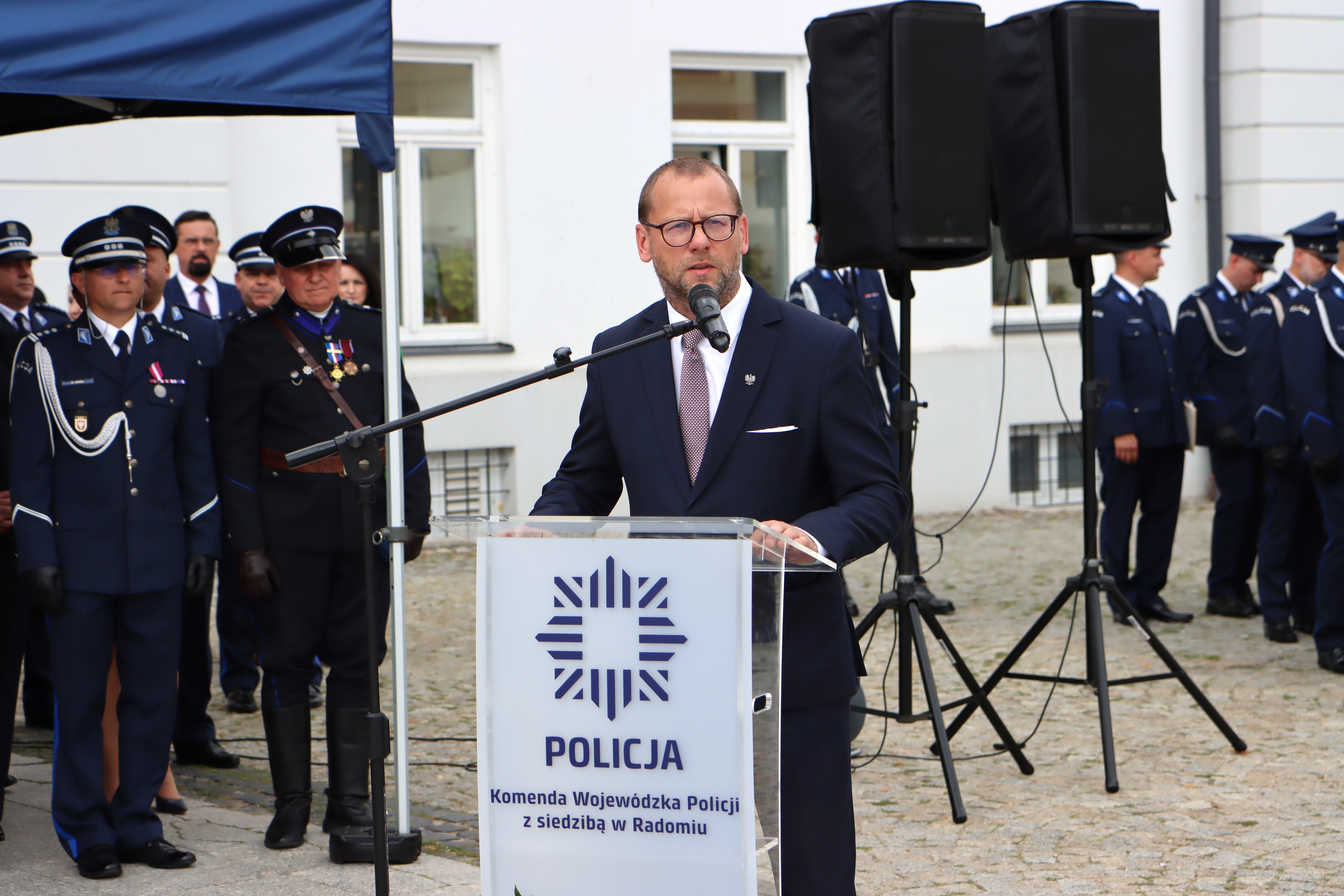 Część oficjalną rozpoczął uroczysty apel. Po wprowadzeniu sztandaru odśpiewano hymn RP i uczczono minutą ciszy funkcjonariuszy, którzy stracili życie na służbie.