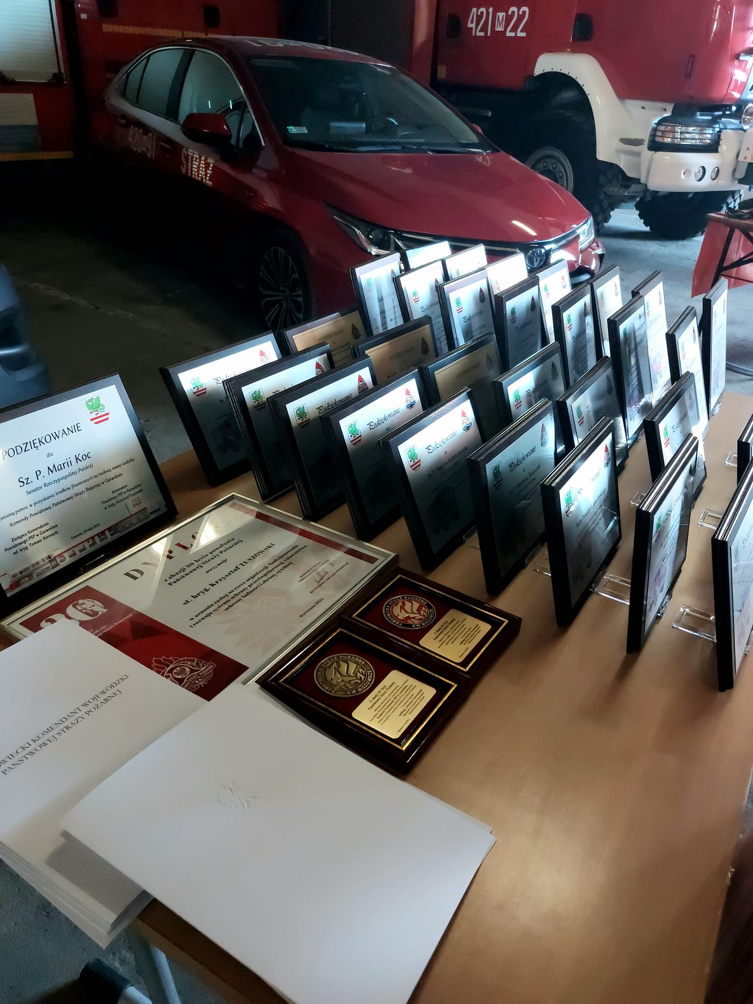 Z uwagi na jubileusz trzydziestolecia powołania Państwowej Straży Pożarnej, jako zawodowej, umundurowanej i wyposażonej w specjalistyczny sprzęt formacji, przeznaczonej do walki z pożarami, klęskami żywiołowymi i innymi miejscowymi zagrożeniami na ręce Komendanta Powiatowego PSP w Garwolinie oraz Starosty Powiatu Garwolińskiego przekazane zostały medale okolicznościowe przyznane przez Mazowieckiego Komendanta Wojewódzkiego nadbryg. Jarosława Nowosielskiego.