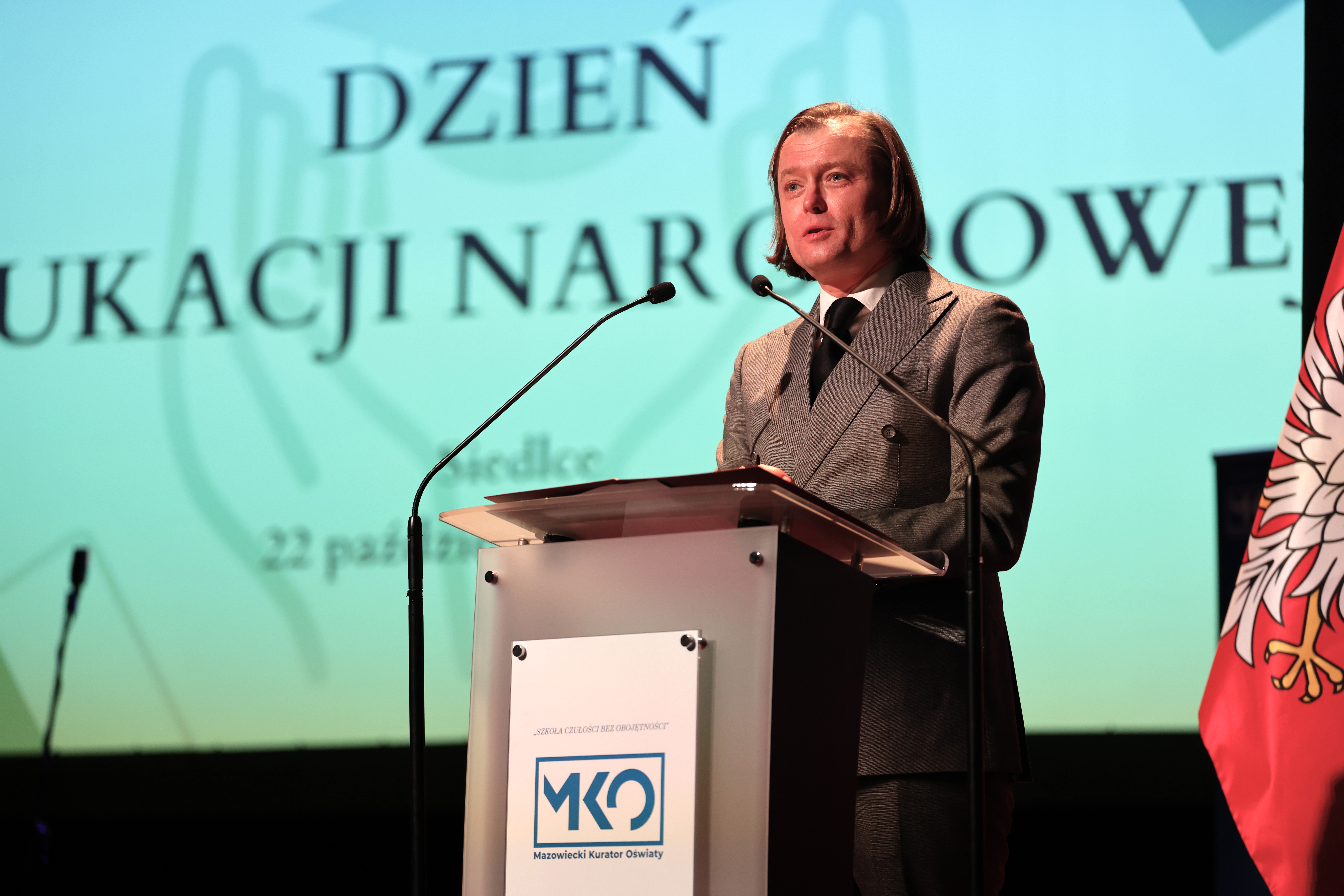 - Będąc tu z Państwem, czuję się jakbym wrócił trochę do moich lat szkolnych. Chcę Państwu podziękować za to jaką pracę codziennie wykonujecie, jako nauczyciele, wychowawcy przy wsparciu Kuratorium Oświaty i organów prowadzących. To Wy jesteście na pierwszej linii pracy z dziećmi i młodzieżą, odpowiedzialni za przekazywanie wartości w tych trudnych czasach, kiedy kryzys wartości się pogłębia. Przed nami wszystkimi stoi wiele wyzwań: kryzys edukacji po pandemii, kondycja psychiczna dzieci i młodzieży, wpływ nowych technologii i zagrożenia związane z używkami. Chciałbym zapewnić, że zarówno ja, jak i cała administracja rządowa współpracujemy nad nieustannym rozwojem edukacji, tak by odpowiadała na potrzeby dzieci, młodzieży oraz pracowników oświaty – powiedział wojewoda mazowiecki Mariusz Frankowski.