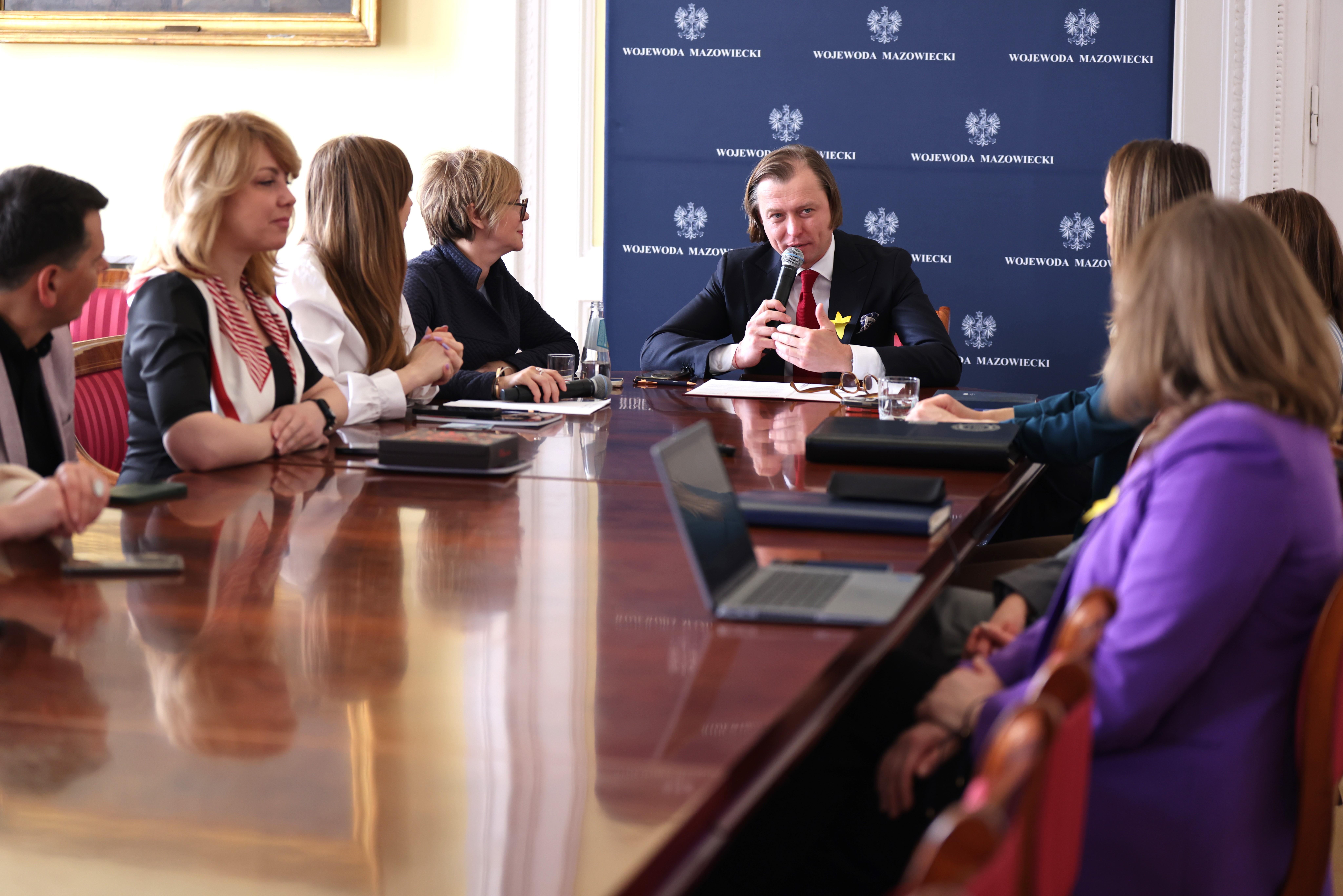 Aktualne potrzeby, potencjał do współpracy gospodarczej, a także ogromna rola kobiet w odbudowie Ukrainy były tematami rozmowy Wojewody Mazowieckiego Mariusza Frankowskiego z przedstawicielami Rady Obwodu Kijowskiego, Polsko-Ukraińskiej Izby Gospodarczej, Towarzystwa Przyjaciół Ukrainy, a także m.in. Klubu Bizneswoman. Spotkanie odbyło się 19 kwietnia w siedzibie Mazowieckiego Urzędu Wojewódzkiego w Warszawie.