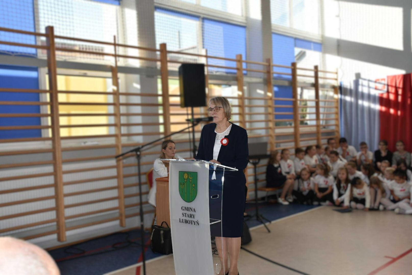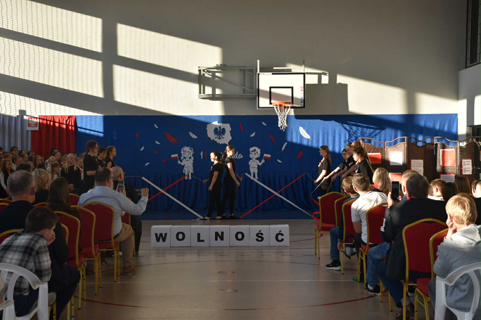 Dyrektor szkoły Bożena Zaręba przypomniała znaczenie Święta Niepodległości oraz wagę krzewienia patriotyzmu w młodym pokoleniu. Pamięć o bohaterach narodowych uczczono minutą ciszy. Uczniowie szkoły przygotowali część artystyczną, która podkreśliła trudną drogę Polaków do niepodległości.