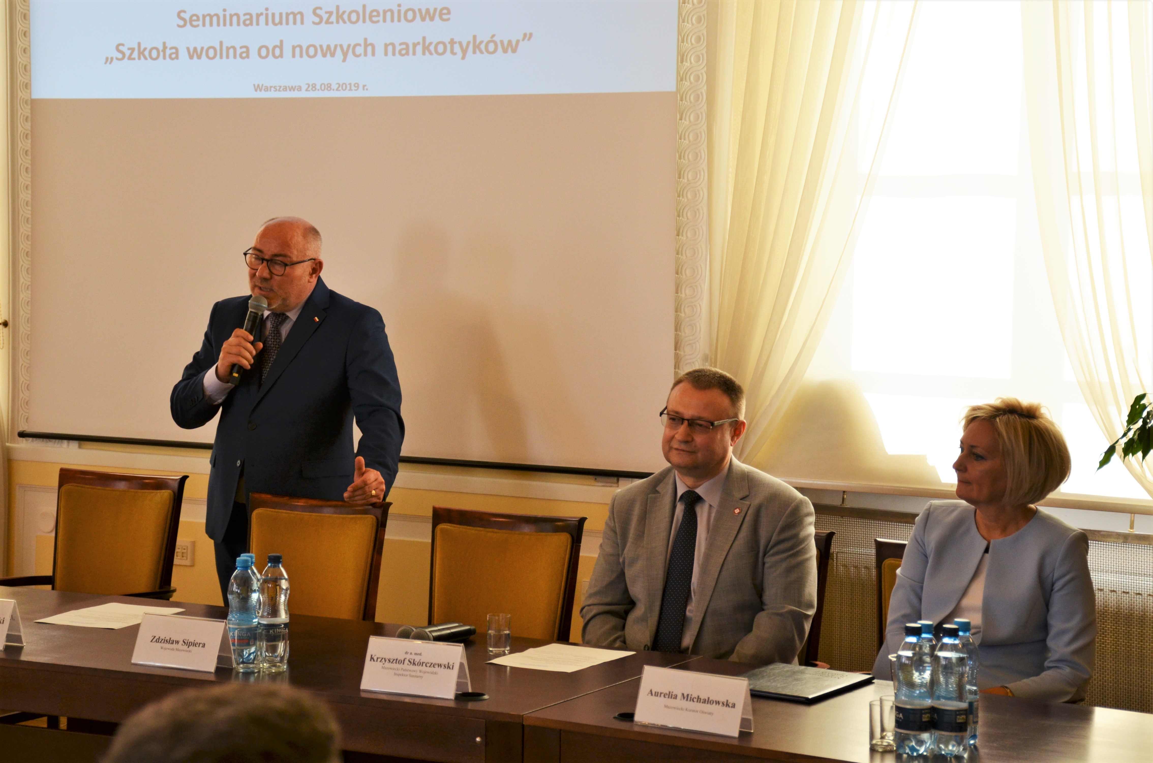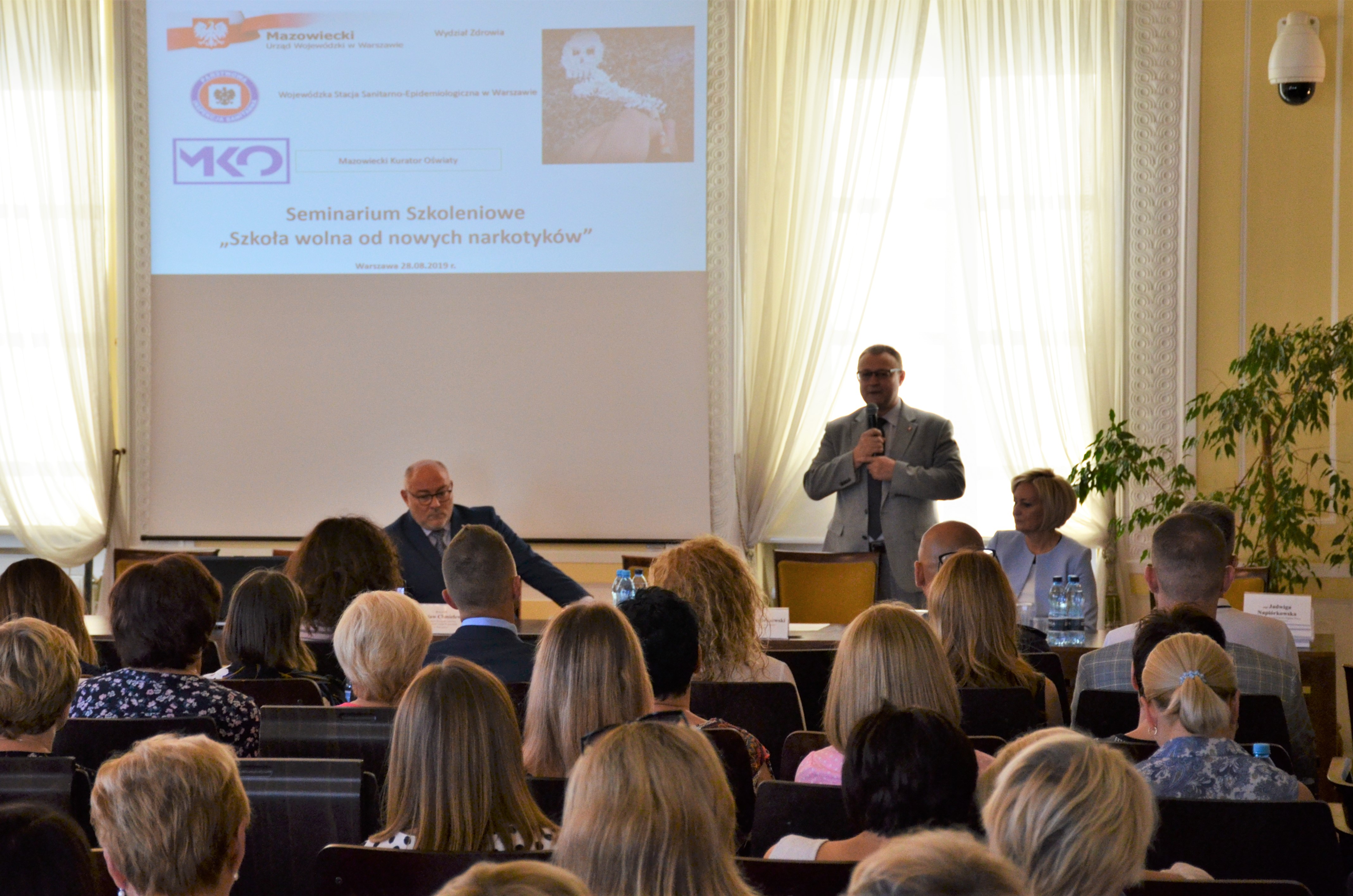 28 sierpnia 2019 r. w godzinach 10.00 - 14.30 w urzędzie wojewódzkim odbyło się seminarium szkoleniowe zorganizowane przez Wydział Zdrowia MUW wspólnie z Wojewódzką Stacja Sanitarno-Epidemiologiczną w Warszawie. Wydarzenie pt.: "Szkoła wolna od nowych narkotyków" adresowane było do pracowników państwowej inspekcji sanitarnej i odbyło się w ramach kampanii pt.: "Narkotyki i dopalacze zabijają", organizowanej w ramach "Programu ograniczenia przestępczości i aspołecznych zachowań Razem bezpieczniej im. Władysława Stasiaka na lata 2018-2020".