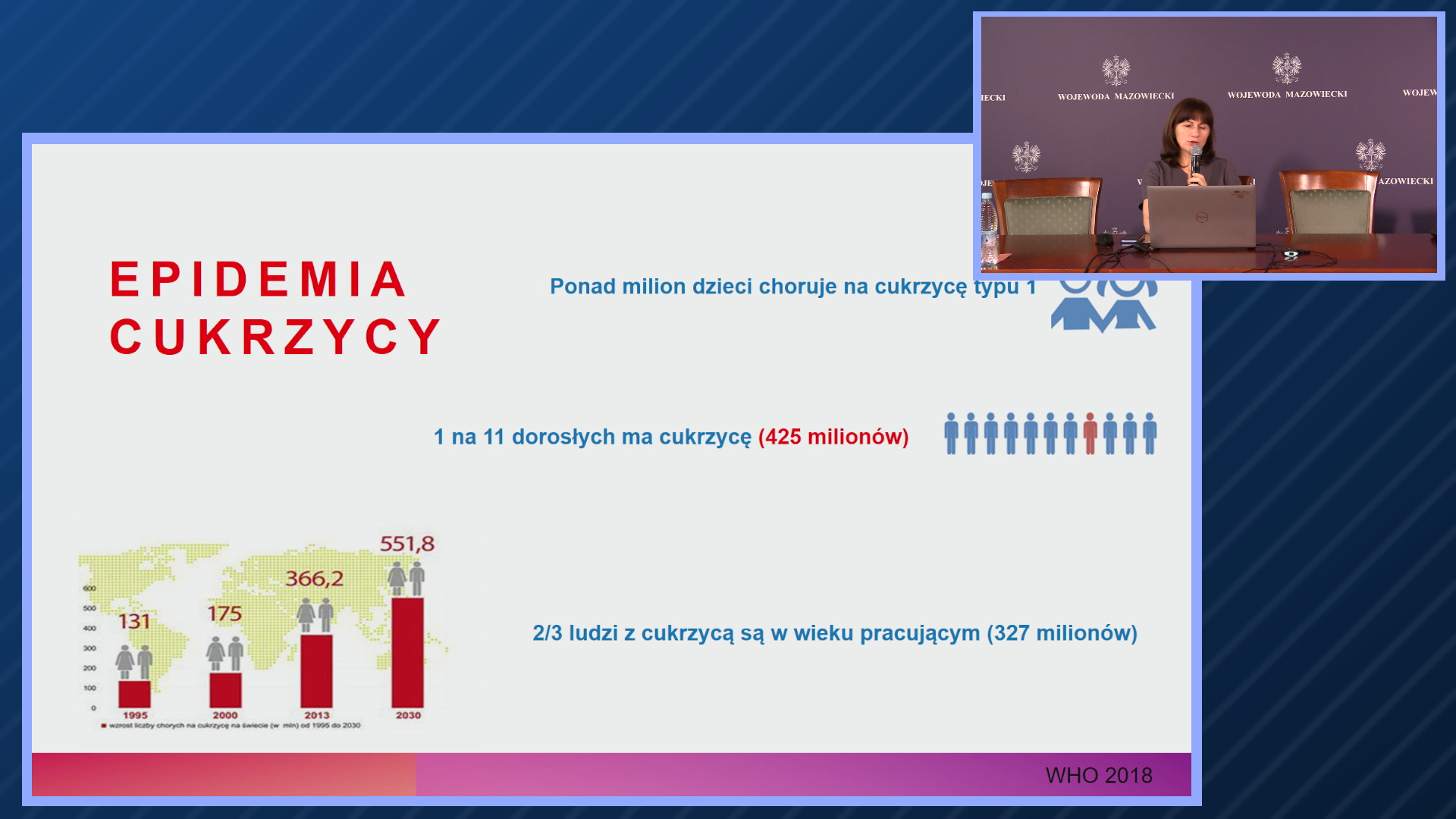 - Na terenie naszego województwa mamy blisko dwa tysiące dzieci z cukrzycą I typu. Wszystko wskazuje na to, że liczba zachorowań nie będzie maleć. Pośrednio może to być związane z chorobami infekcyjnymi, które sprzyjają powstawaniu cukrzycy I stopnia, w tym grypa czy Covid-19. Przed Państwem, którzy kontaktujecie się z rodzicami chorych dzieci, zadań jest mnóstwo. Po pierwsze – kwestia wiedzy na temat profilaktyki, istoty choroby, jej mechanizmów, powikłań, leczenia i postępowania dietetycznego. Istnieje również szereg aspektów psychologicznych, które towarzyszą chorobie przewlekłej, które wpływają na funkcjonowanie dziecka, na to jak widzą go jego koledzy, jak ono się czuje. Ta wiedza może niejednemu dziecku uratować życie, a w dłuższej perspektywie przyczynić się do zmniejszenia ryzyka powikłań. Im więcej będzie osób, które w sposób bezpośredni będą uczestniczyć w opiece nad chorym dzieckiem, tym szanse tych dzieci na normalne funkcjonowanie będą większe. Bardzo dziękuję Państwu za gotowość do uczenia się wielu rzeczy, które będą temu sprzyjać. Dziękuje wszystkim, którzy przyczynili się do tego, żeby to szkolenie się odbyło. Cieszę się, że jako Mazowiecki Urząd Wojewódzki mamy w tym swój udział – powiedział Konstanty Radziwiłł, Wojewoda Mazowiecki.