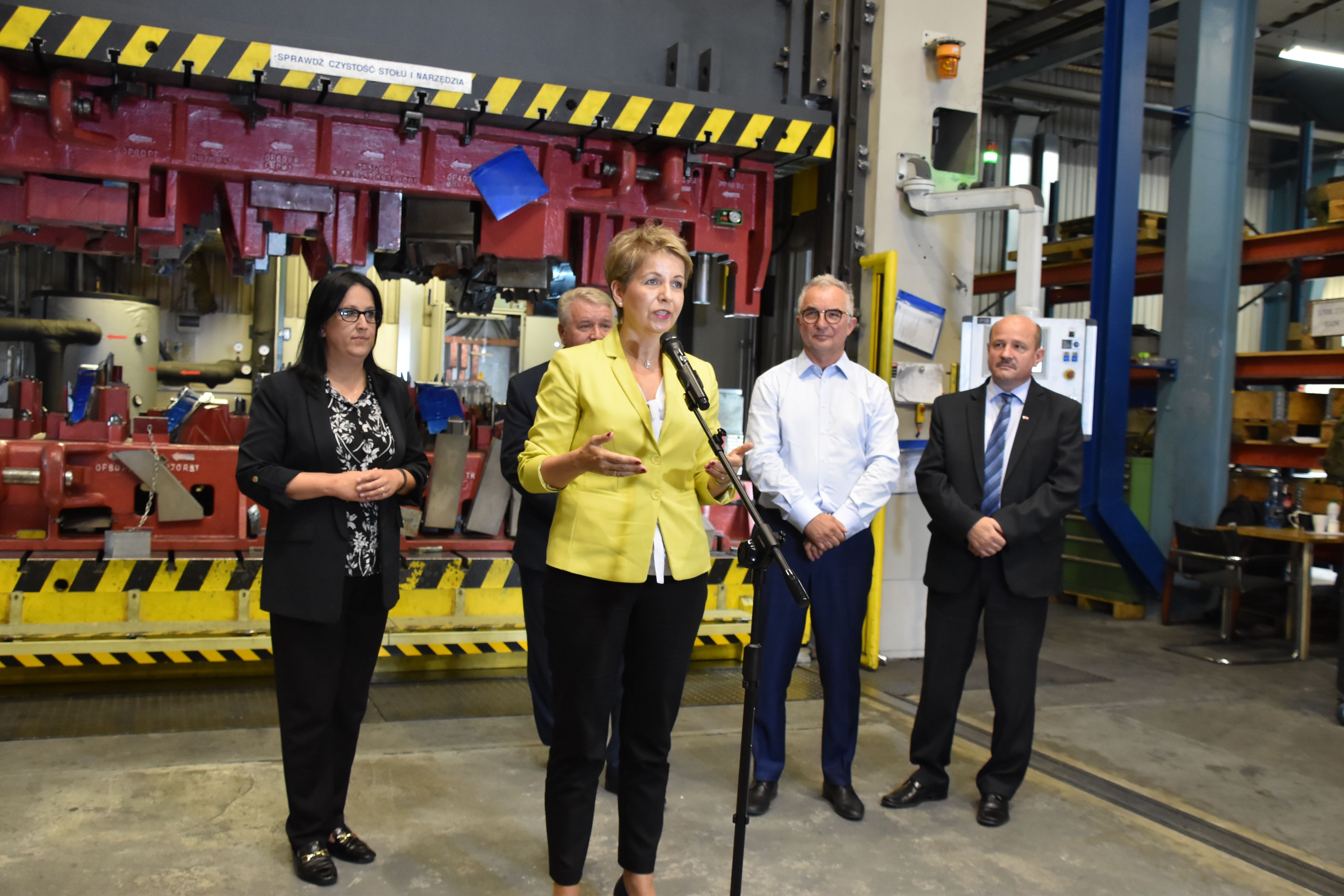 Wiceminister Rodziny, Pracy i Polityki Społecznej Alina Nowak oraz Wicewojewoda Mazowiecki Sylwester Dąbrowski wzięli udział w briefingu prasowym poświęconym wsparciu przedsiębiorstw i przedsiębiorców w ramach Tarczy Antykryzysowej. Spotkanie odbyło się 20 lipca w firmie CAD/CAM Solution w Łomiankach, która skorzystała z rządowego wsparcia.