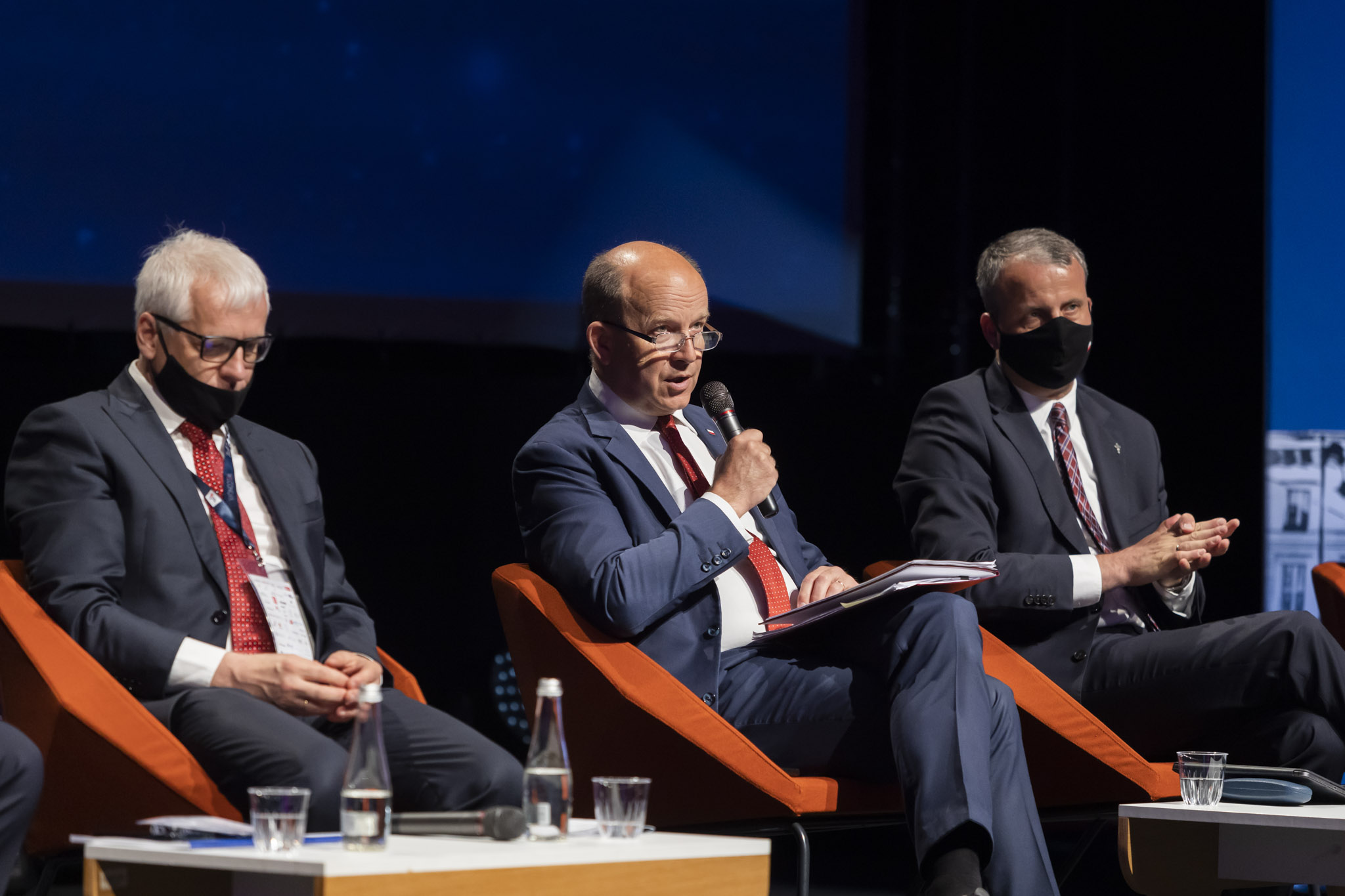 Podczas panelu dyskusyjnego, na przykładzie Mazowsza, Wojewoda Mazowiecki przedstawił szereg działań związanych z zarządzaniem kryzysowym oraz z zabezpieczeniem potrzeb zdrowotnych i społecznych mieszkańców Mazowsza, którymi koordynował od początku pandemii Covid-19 w województwie mazowieckim. Do zadań Wojewody należało m.in. wydawanie decyzji polecających poszczególnym podmiotom leczniczym zapewnienie konkretnej liczby łóżek przeznaczonych dla pacjentów z podejrzeniem zakażenia lub potwierdzonym zakażeniem SARS-CoV-2, w tym łóżek intensywnej terapii, w zależności od rozwoju sytuacji epidemiologicznej, wzrostu lub spadku zakażeń i potrzeby hospitalizacji pacjentów. W województwie mazowieckim jest 26 612 łóżek w szpitalach; w szczycie trzeciej fali wyznaczonych było ok. 6 tys. z nich dla pacjentów z koronawirusem (ponad 550 respiratorowych). Do 20 czerwca br. Wojewoda wydał 496 decyzji, które obejmowały również tworzenie szpitali tymczasowych; wspieranie finansowe i rzeczowe podległych jednostek; rekomendacje w zakresie organizacji pracy m.in. izb przyjęć i szpitalnych oddziałów ratunkowych; zapewnienie w zakresie infrastruktury tlenowej wsparcia dla szpitali, w tych placówkach, które posiadają np. małe zbiorniki na tlen oraz organizacje szpitali tymczasowych na Mazowszu.