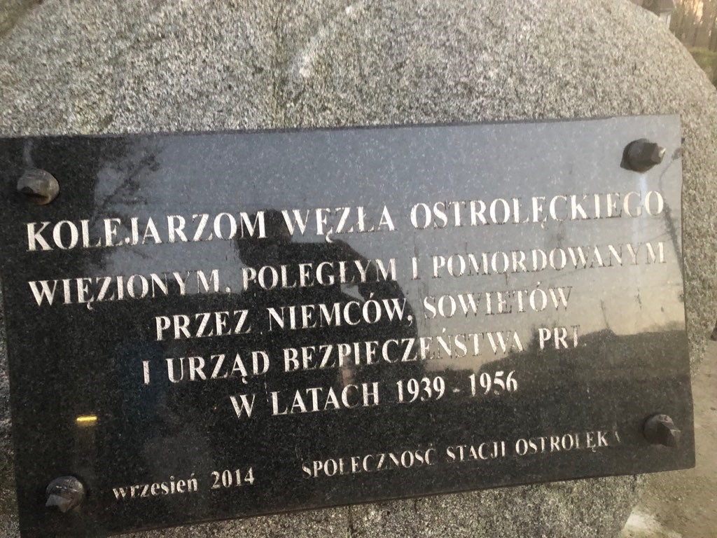 Obelisk na pl. Dworcowym poświęcony jest pamięci kolejarzy węzła ostrołęckiego - Więzionym, Poległym i Pomordowanym przez Niemców, Sowietów i Urząd Bezpieczeństwa PRL w latach 1939 – 1956.