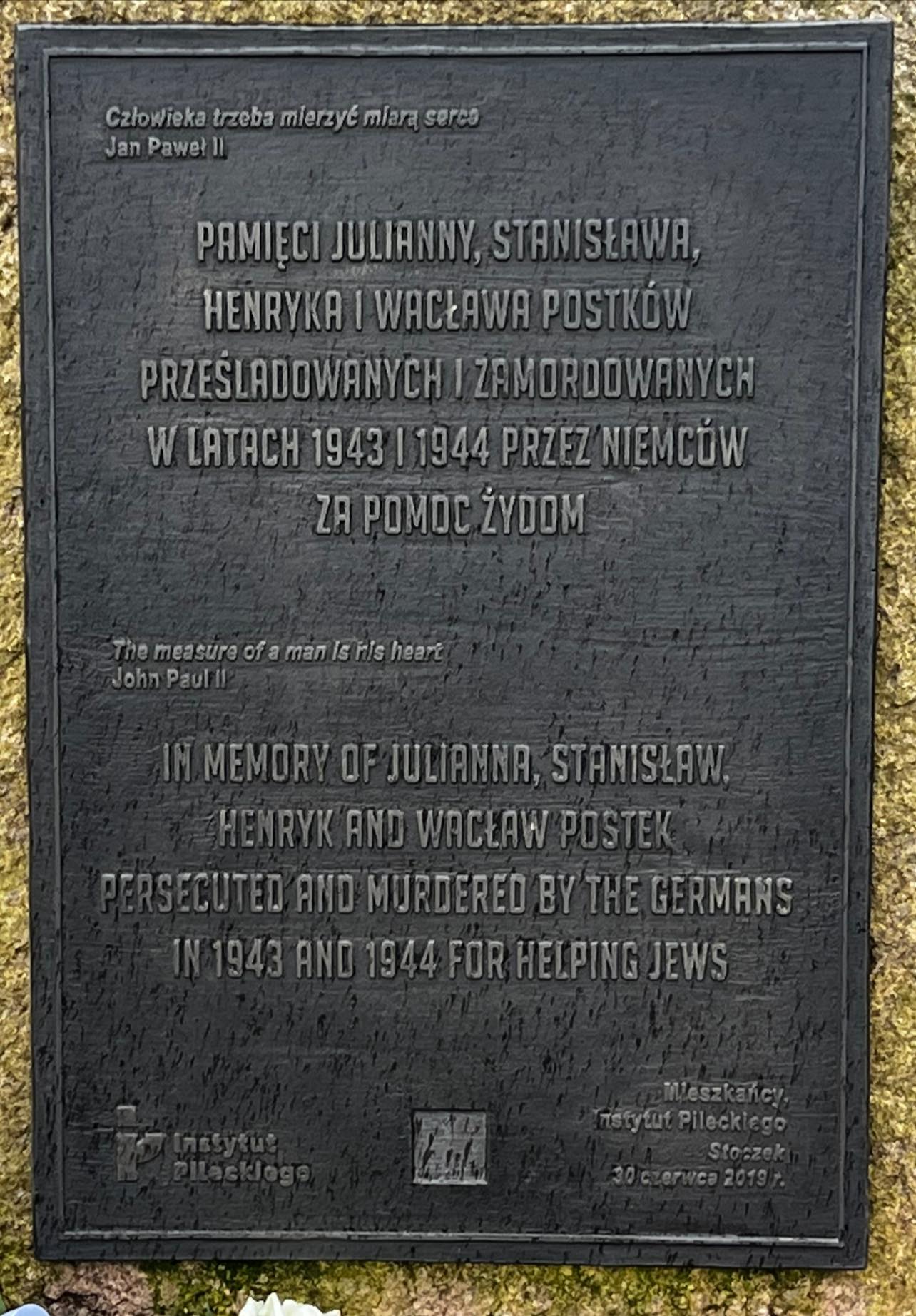 Kierownik Delegatury Mazowieckiego Urzędu Wojewódzkiego Anna Kaszuba odwiedziła Stoczek, gdzie, w imieniu Wojewody Mazowieckiego Konstantego Radziwiłła upamiętniła ofiary okresu okupacji niemieckiej. Wśród nich również rodzinę Postków, Juliannę oraz jej męża Stanisława i troje ich synów, Henryka, Wacława i Franciszka, pojmanych, aresztowanych i ostatecznie zaginionych.