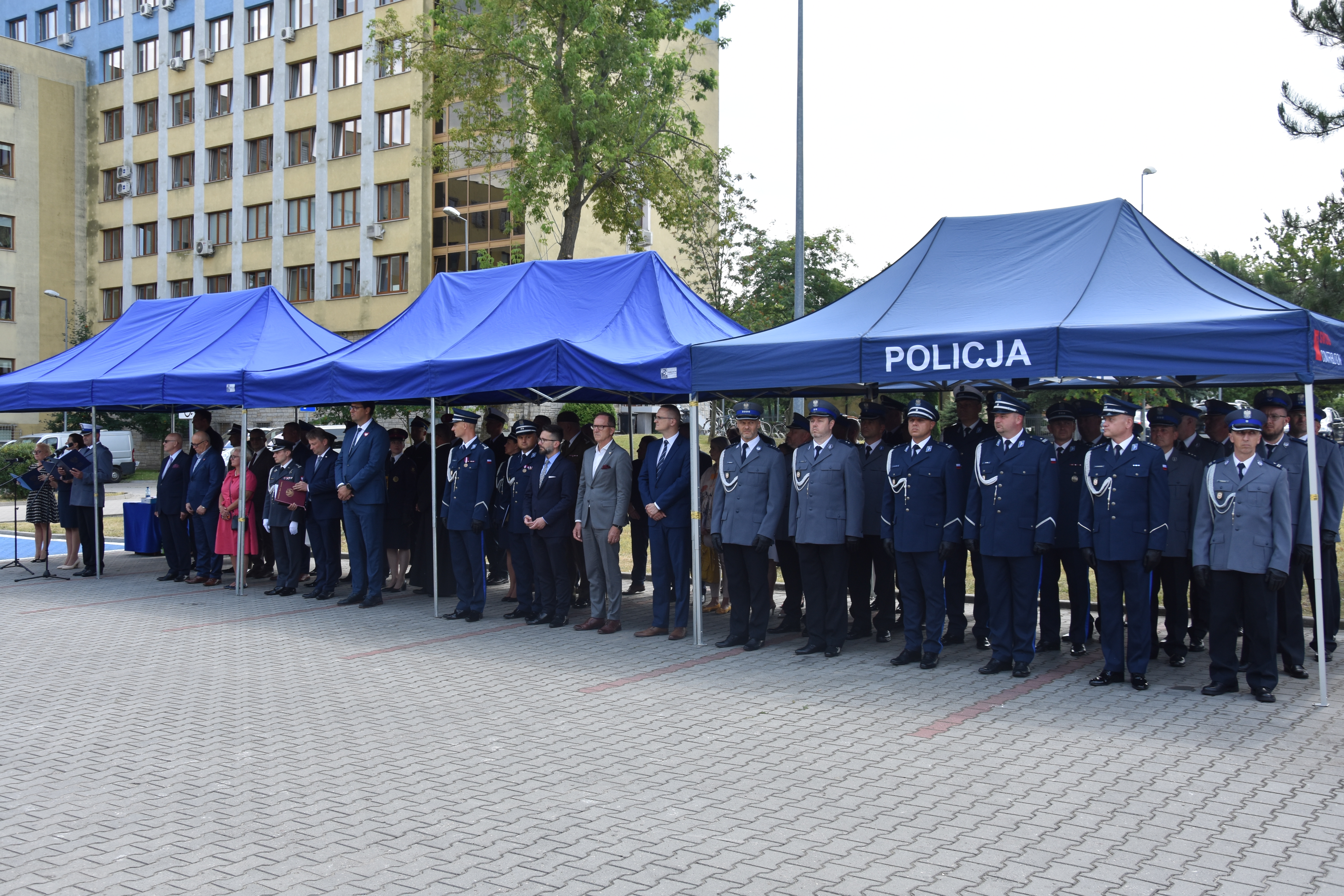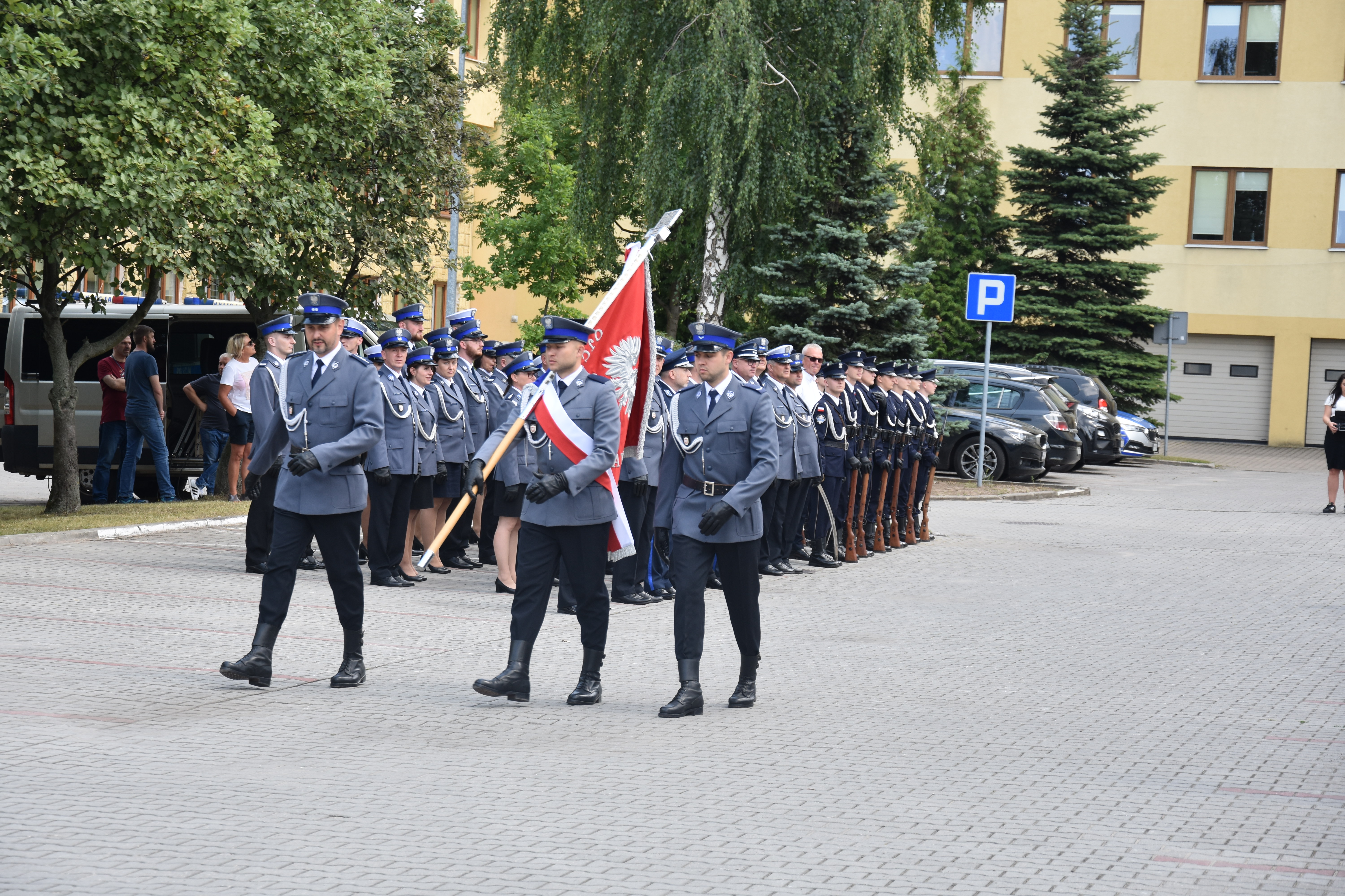 Następnie na placu przed Komendą Miejskiej Policji w Radomiu odbył się uroczysty apel. W czasie odgrywania, przez orkiestrę Wojsk Obrony Terytorialnej w Radomiu, hymnu Rzeczypospolitej Polskiej, poczet flagowy podniósł flagę państwową na maszt.