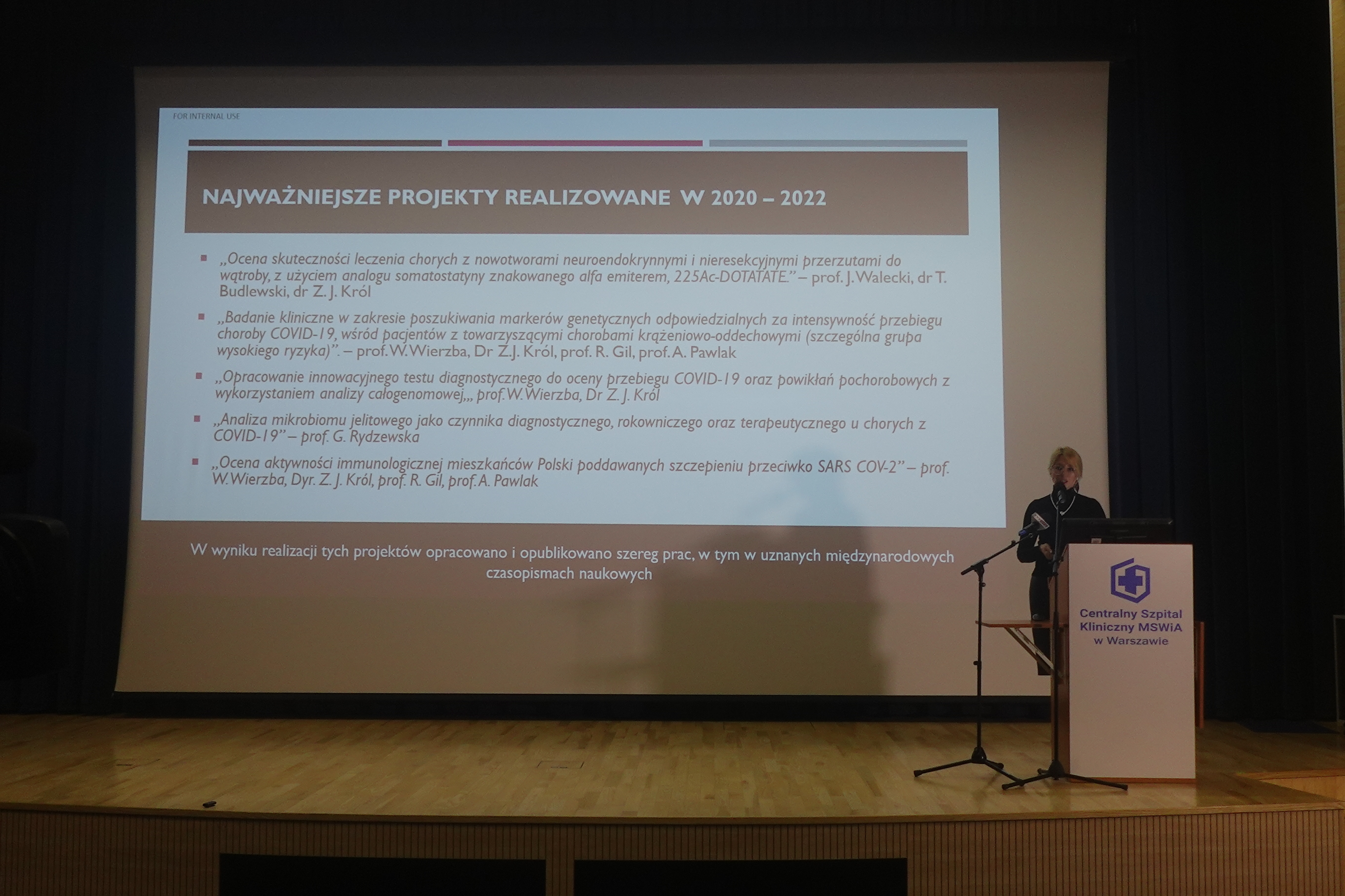 Uroczystości, które odbyły się w Auli Szpitala, rozpoczęły się od przywitania zaproszonych gości. Następnie przemówienia wygłosili: prof. dr hab. n. med. Waldemar Wierzba – Dyrektor Centralnego Szpitala Klinicznego, dr hab. n. med. Radosław Sierpiński – Prezes Agencji Badań Medycznych, dr hab. n. med. Agnieszka Pawlak, prof. PAN – Kierownik CWBK CSK MSWiA, prof. n. tech. Michał Kleiber oraz dr n. med. Zbigniew Król – Zastępca Dyrektora CSK MSWiA ds. klinicznych i naukowych.