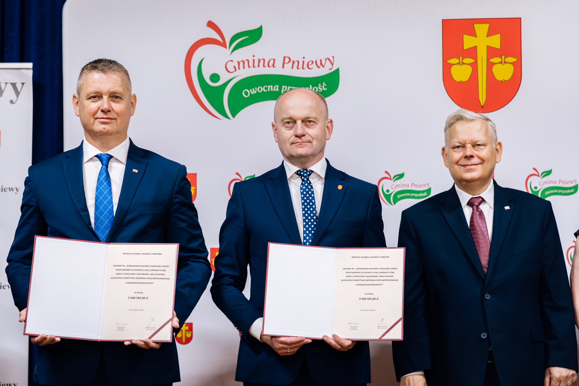 Wicewojewoda Artur Standowicz podpisał umowę o udzielenie dotacji celowej z budżetu państwa na rozbudowę Publicznej Szkoły Podstawowej w Jeziorze. Wydarzenie odbyło się 19 września br. w Gminie Pniewy. W spotkaniu uczestniczyli również m.in. Poseł na Sejm RP Marek Suski oraz Wójt Gminy Pniewy Ireneusz Szymczak.