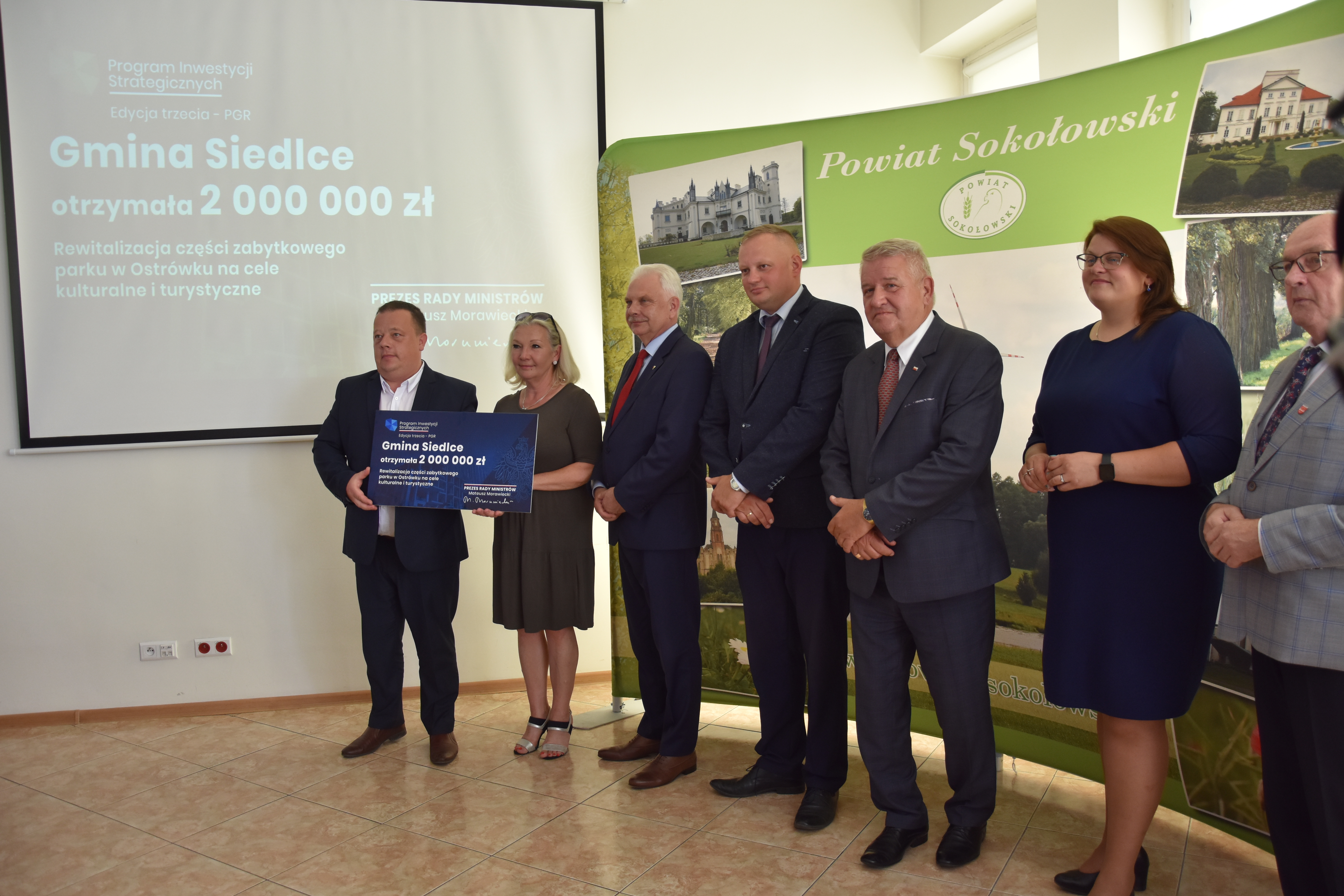 25 lipca br. w Sokołowie Podlaskim odbyły się uroczystości dotyczące ogłoszenia wyników w ramach Rządowego Funduszu Polski Ład - Program Inwestycji Strategicznych, edycja III – PGR. Na zaproszenie Starosty sokołowskiego Elżbiety Sadowskiej w wydarzeniu udział wziął Sylwester Dąbrowski, Wicewojewoda Mazowiecki.