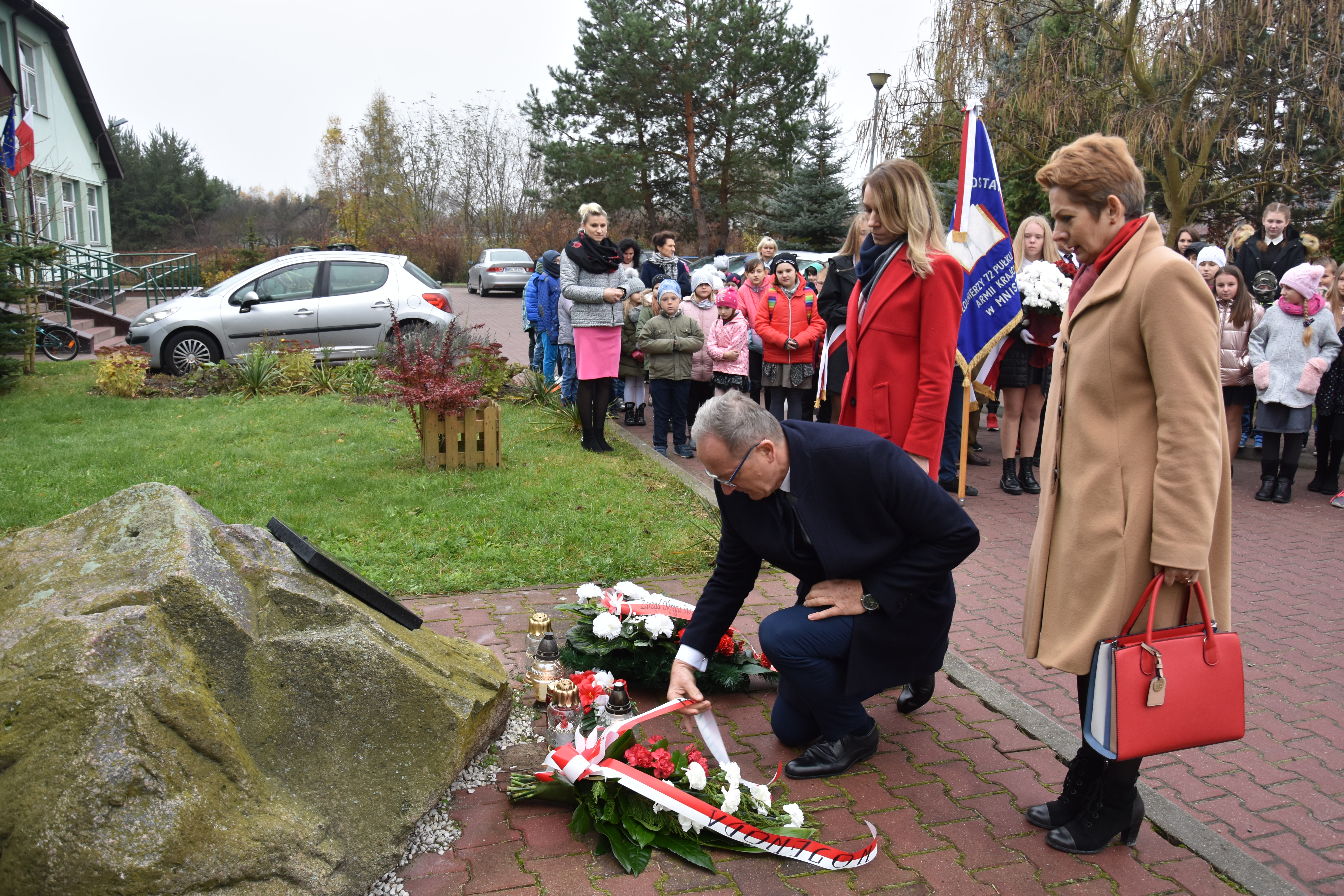 Krzysztof Murawski, Kierownik Delegatury MUW w Radomiu złożył wiązankę kwiatów w miejscu pamięci poświęconym żołnierzom Armii Krajowej. W okolicznościowym wystąpieniu przekazał życzenia od Wojewody Mazowieckiego z okazji dnia patronów i Narodowego Święta Niepodległości. Uczniów zachęcał do kultywowania tradycji i znajomości historii Polski, a nauczycieli do wychowywania młodzieży w duchu patriotycznym.