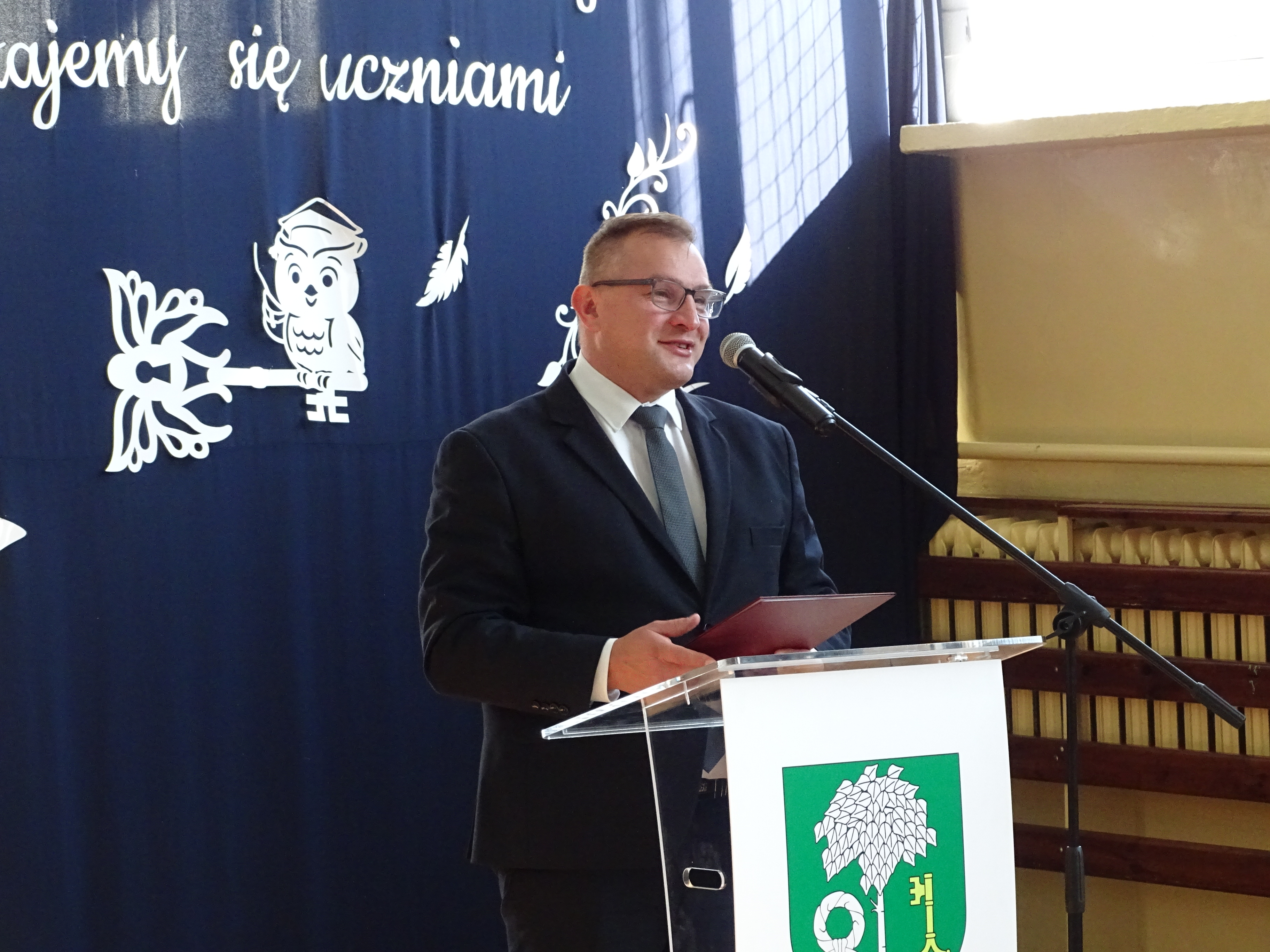 Drodzy Pierwszoklasiści, dzisiaj stajecie się pełnoprawnymi członkami społeczności Publicznej Szkoły Podstawowej imienia Tadeusza Kościuszki w Głowaczowie. Z całego serca Wam gratuluję [...] Życzę Wam, abyście uczyli się z przyjemnością, a każdy dzień spędzony w szkole był dla Was powodem do uśmiechu. Szanowni Państwo Nauczyciele, Pracownicy Szkoły, Rodzice, zadanie edukacji i wychowania najmłodszego pokolenia to wielka odpowiedzialność, zwłaszcza w obliczu wielu zagrożeń, które przynosi współczesny świat. Państwa ogromne poświęcenie w realizacji tego posłannictwa przyjmuję z najwyższym uznaniem […] Państwa znakomite kwalifikacje, wysoka kultura zawodowa i zaangażowanie są gwarancją, że ten wieloletni proces będzie przebiegał w sposób harmonijny. Wszystkim Państwu życzę dumy i satysfakcji z sukcesów wychowanków w poszerzaniu horyzontów i zdobywaniu kolejnych kompetencji.