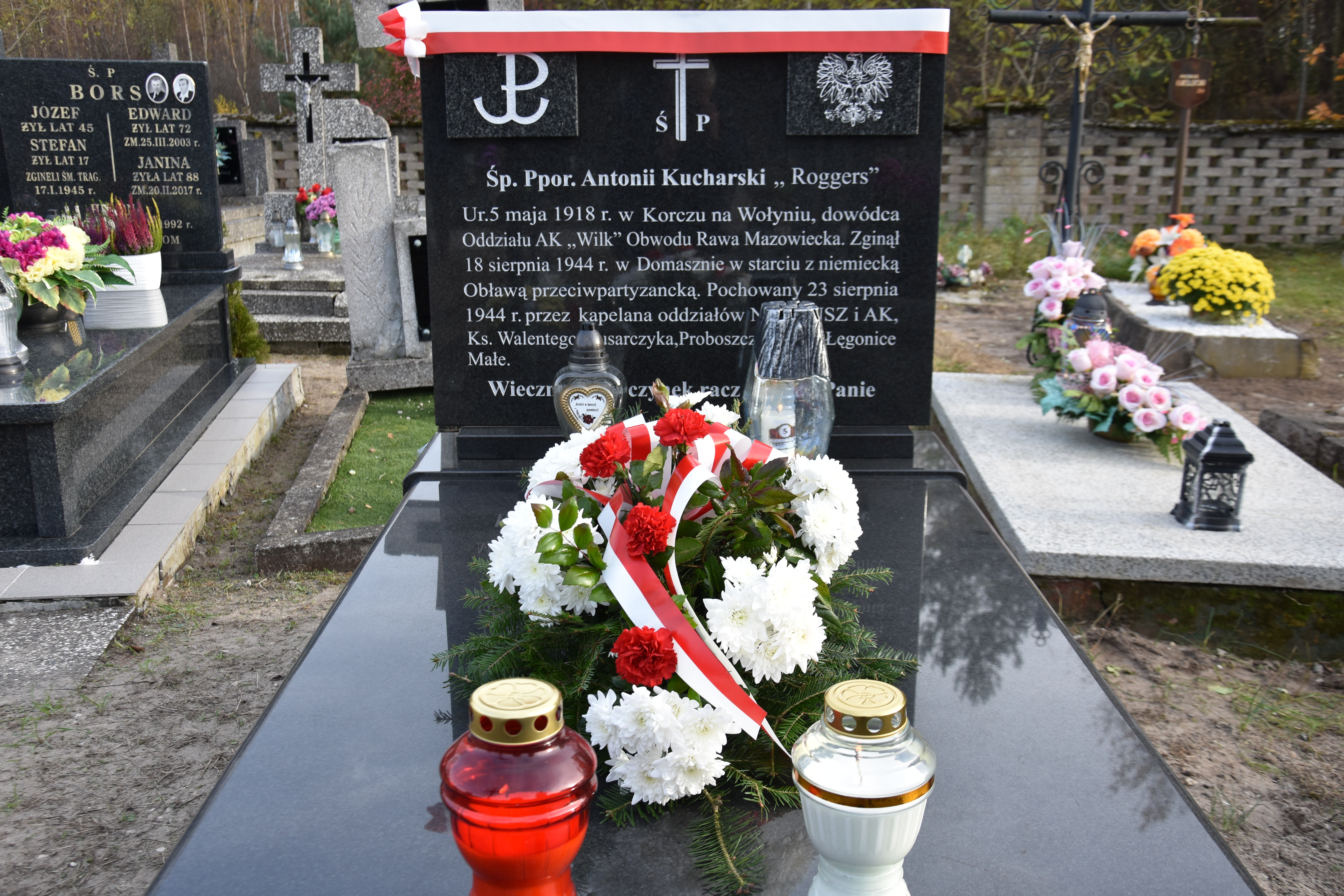 Oddając hołd bohaterom naszej wolności na cmentarzu w Łęgonicach Małych w Gminie Odrzywół złożono wiązankę kwiatów i zapalono znicze na grobie dowódcy Obwodu Rawa Mazowiecka, ppor. Antoniego Kucharskiego ps. Roggers.
